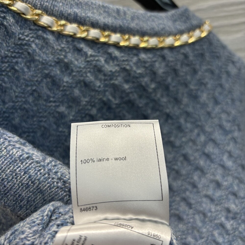 100% 울 양털소재이구요 니트 짜임, 체인 , CC 버튼들이 잘 어울러져서