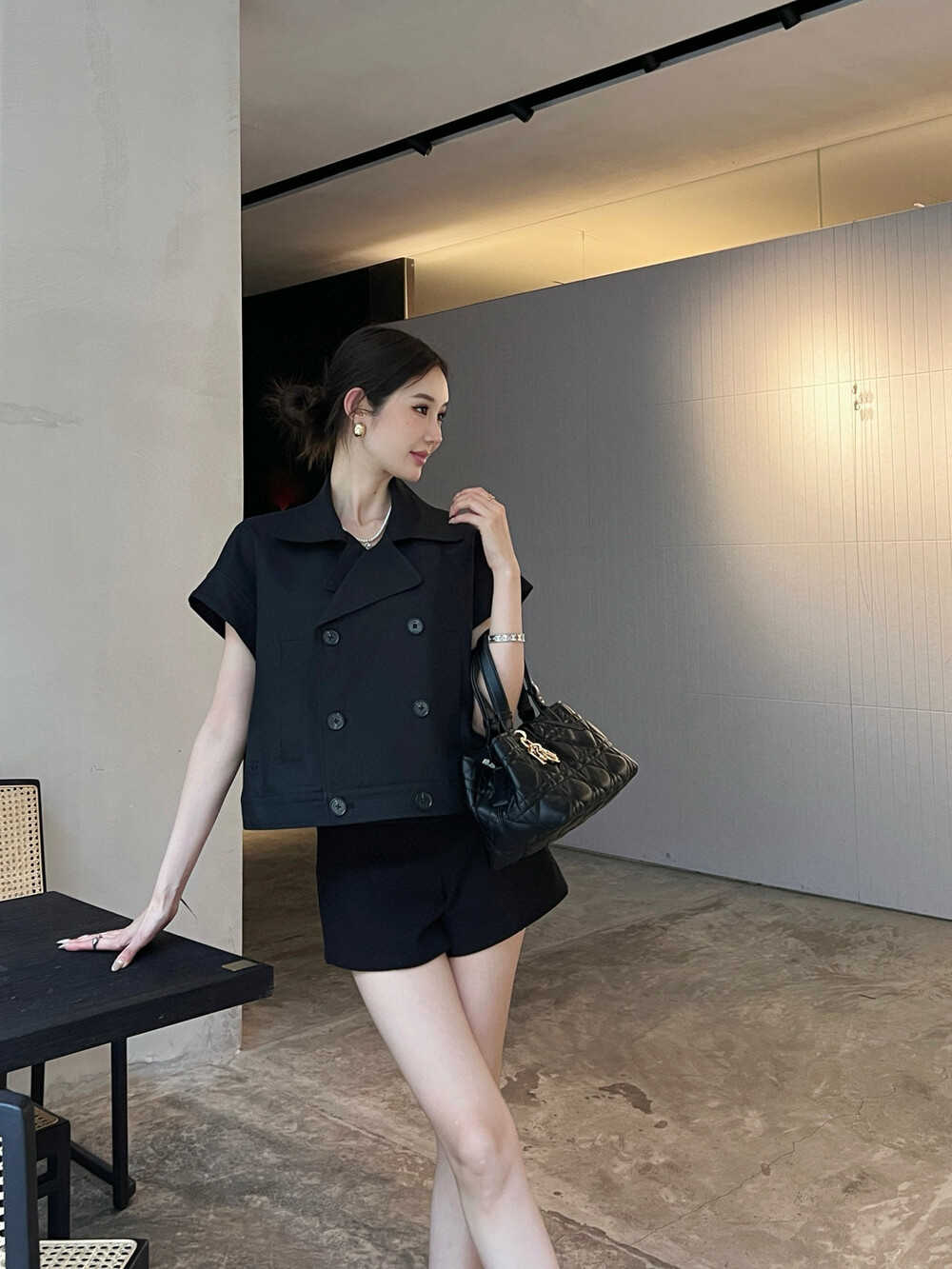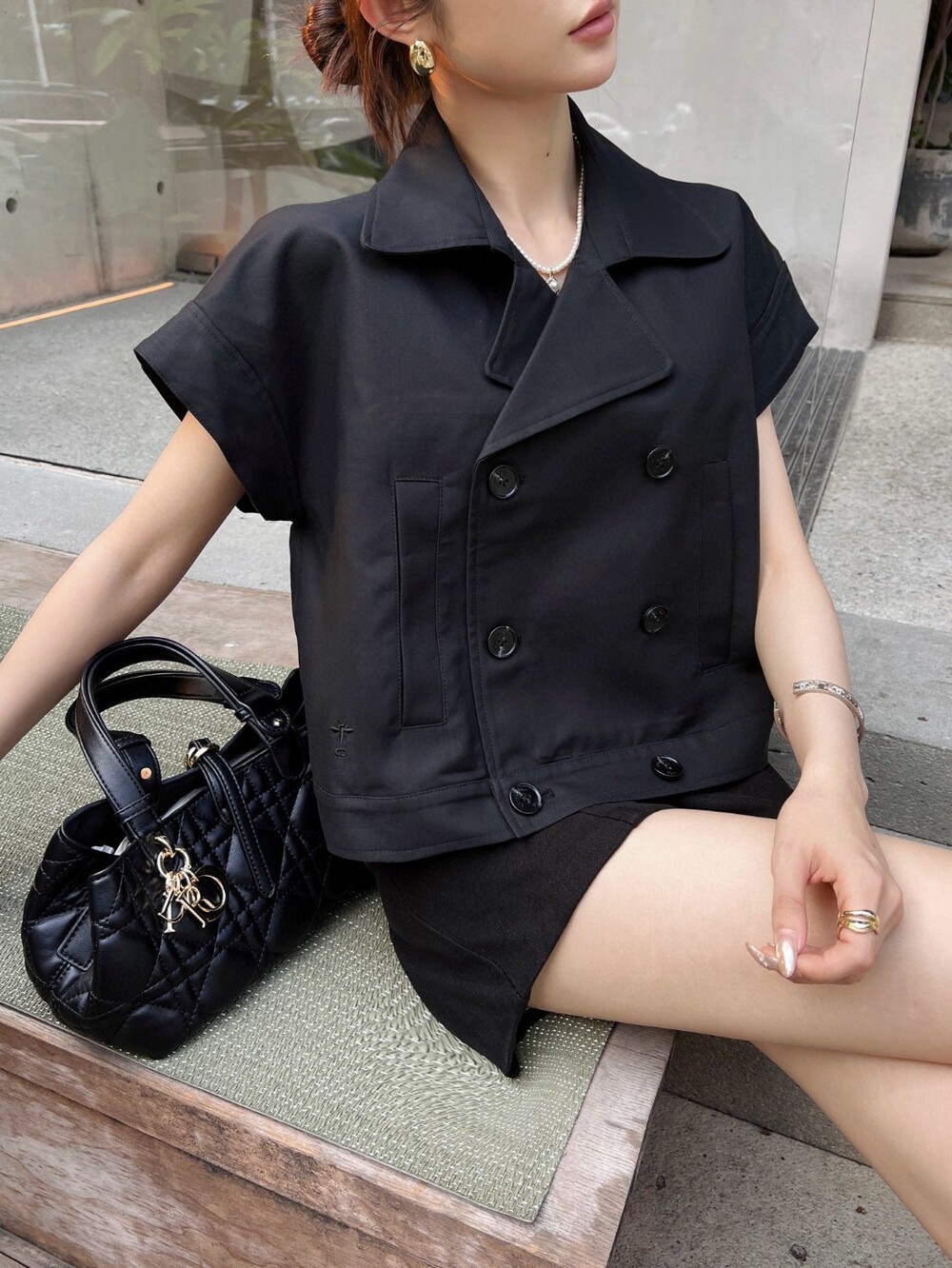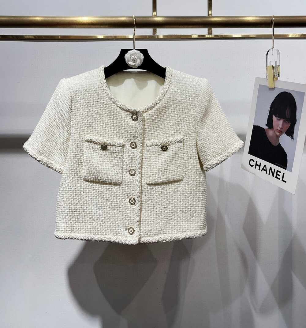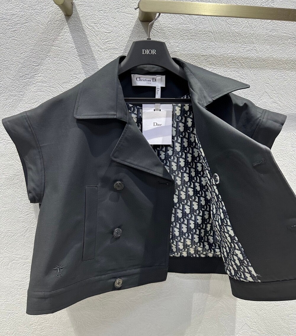 K. CD 버튼 반소매 크롭 자켓