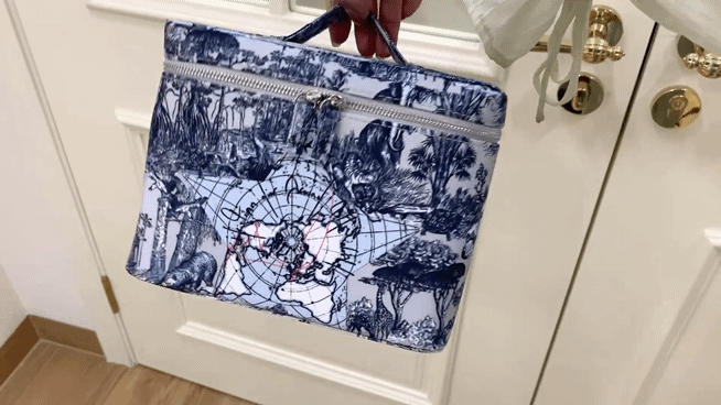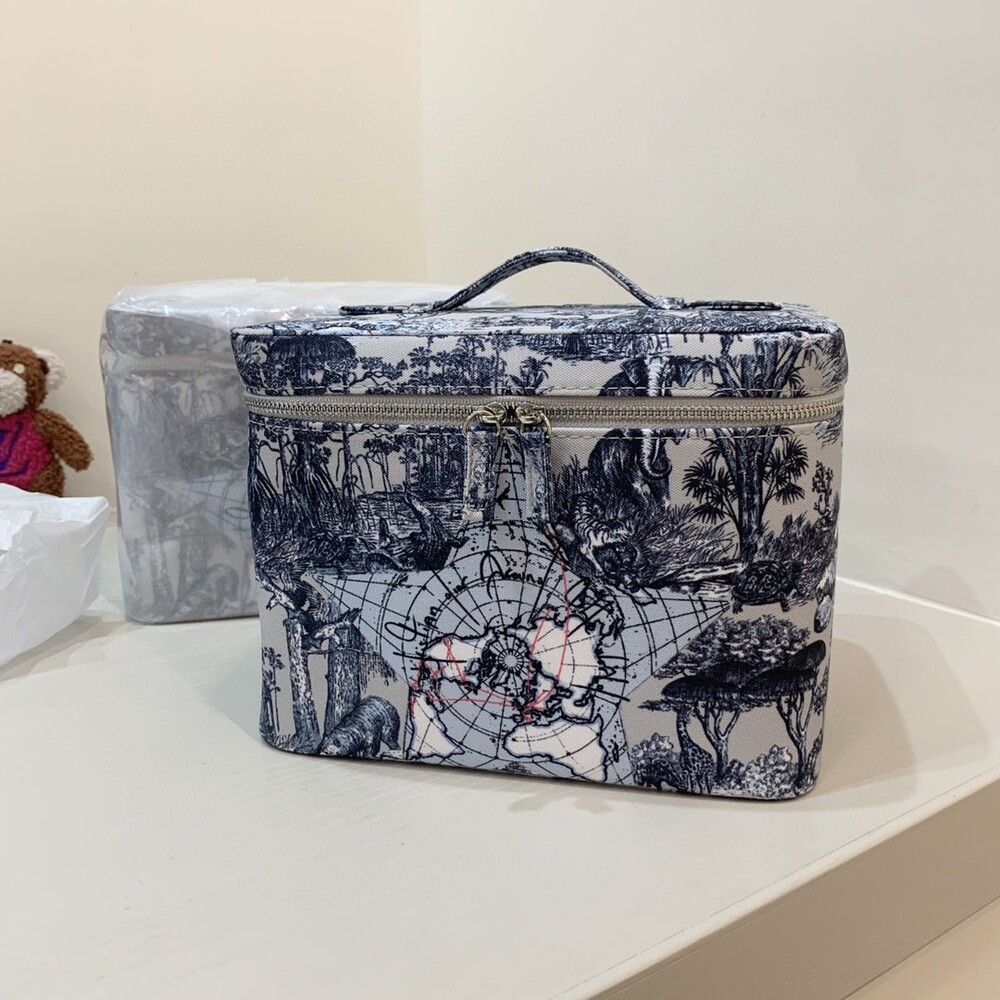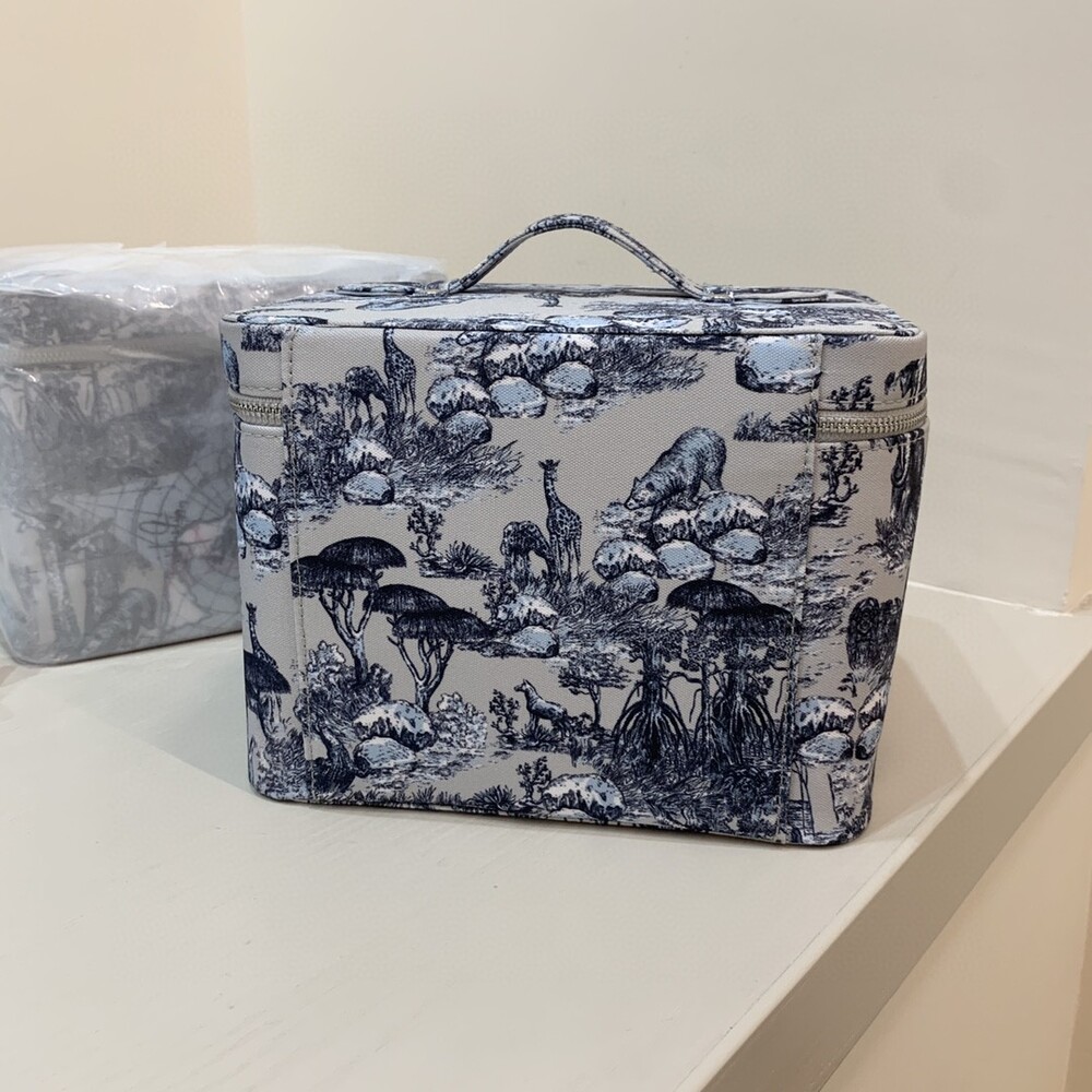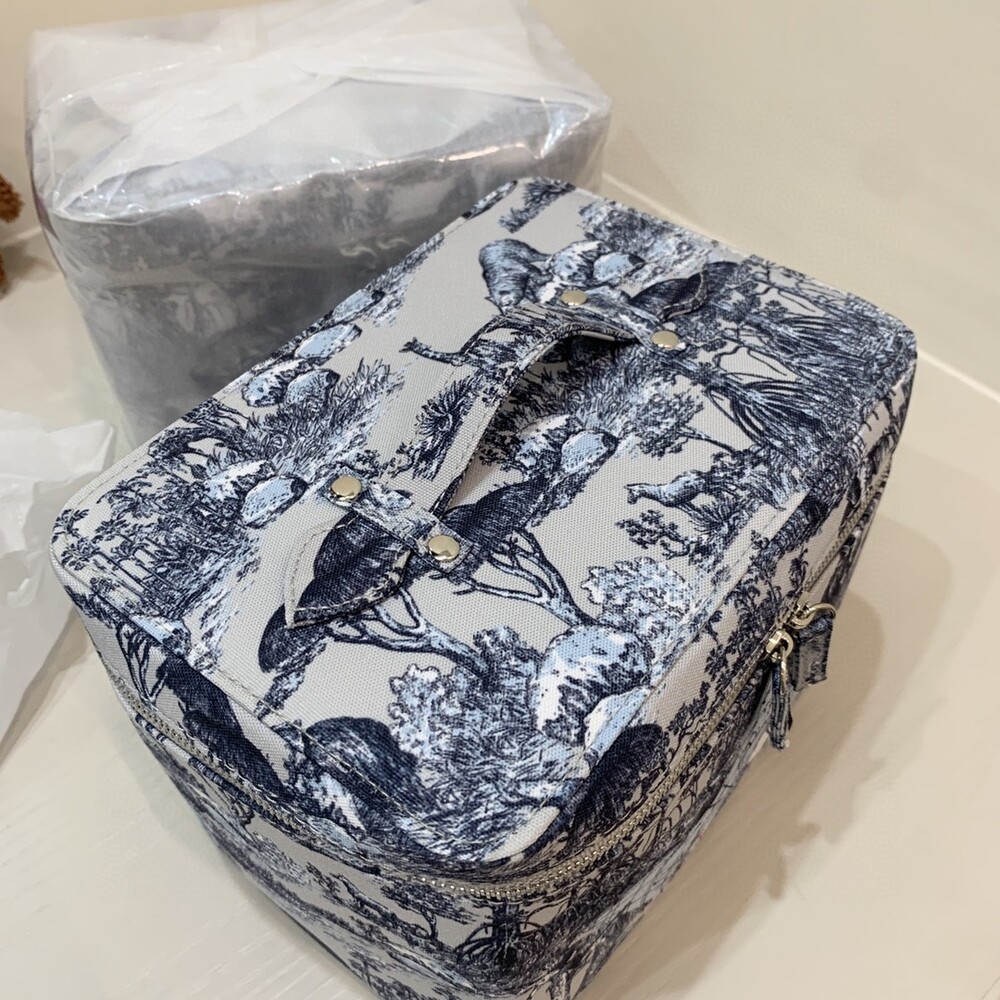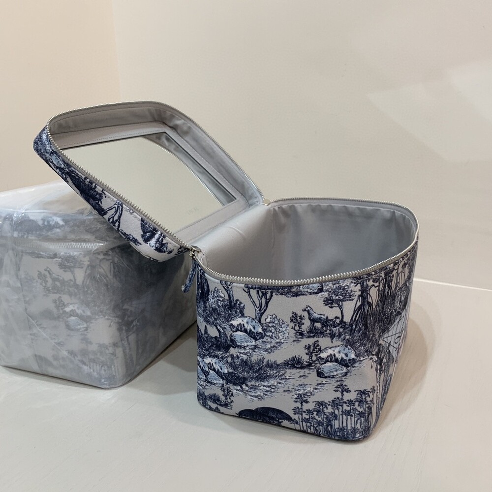 Dior Limited World Roaming Series / Gift-Hand PouchIt can be used as a bag, and it can be used as a travel toilet bag normally / Mirror built-in capacity is amazing The storage is so strong that there are a bunch of formal skincare bottles and cans Skincare, hair care, makeup, and accessories that you bring when you go on a business tripThe pouch must be lightweight, and the dirt-prone canvas material only needs to be rough.
