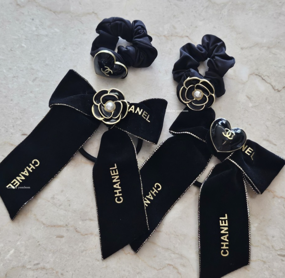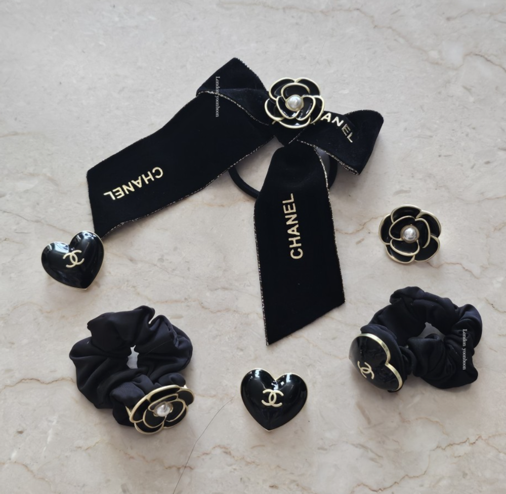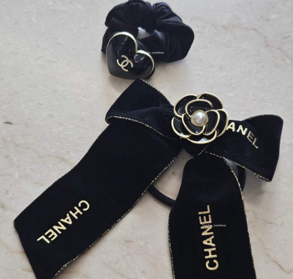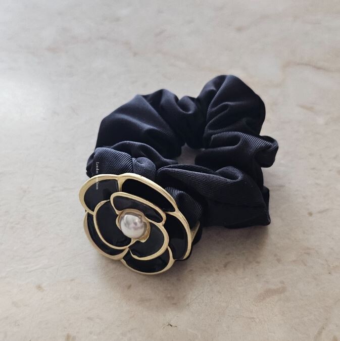 홀리데이 까멜리아 참 브로치 리본 머리끈 곱창헤어밴드