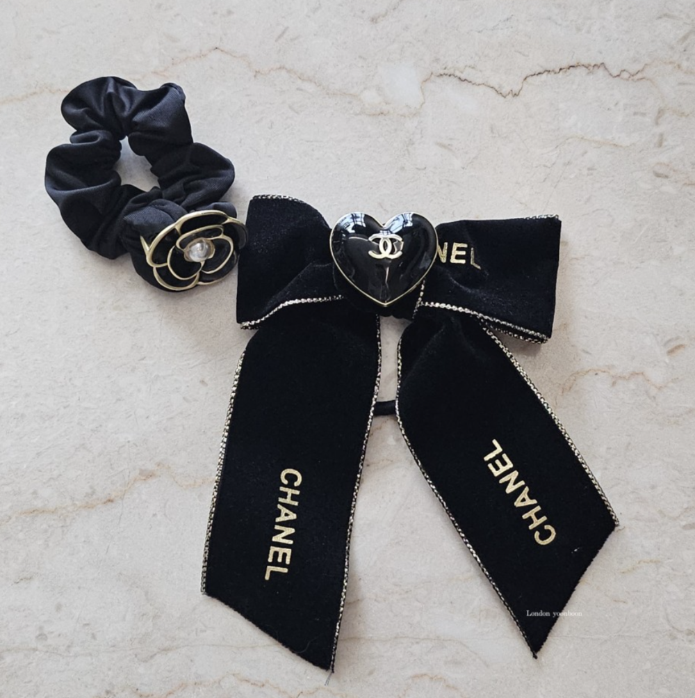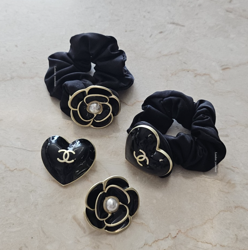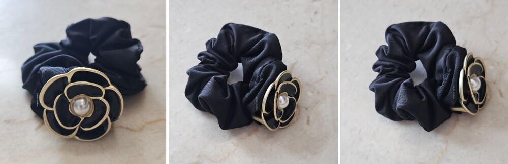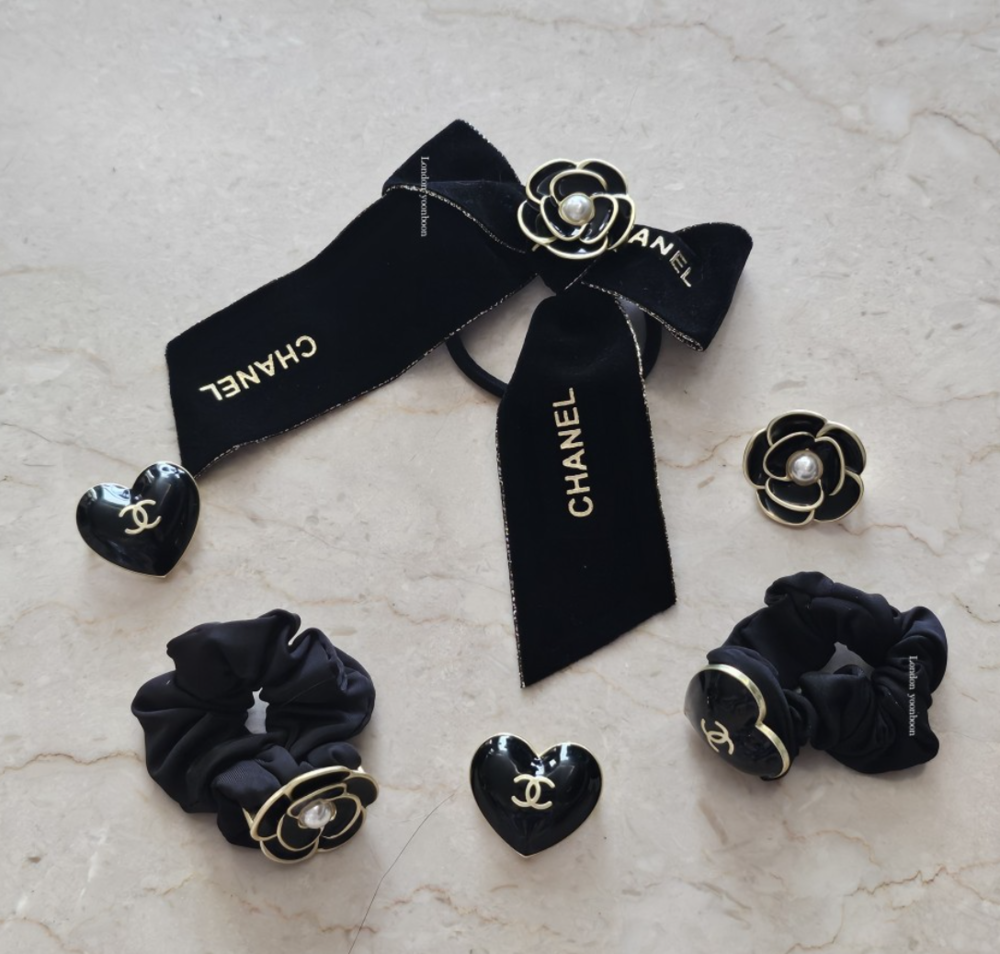 홀리데이 까멜리아 참 브로치 리본 머리끈 곱창헤어밴드