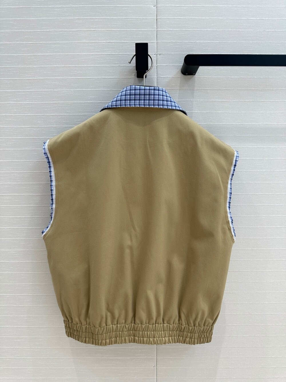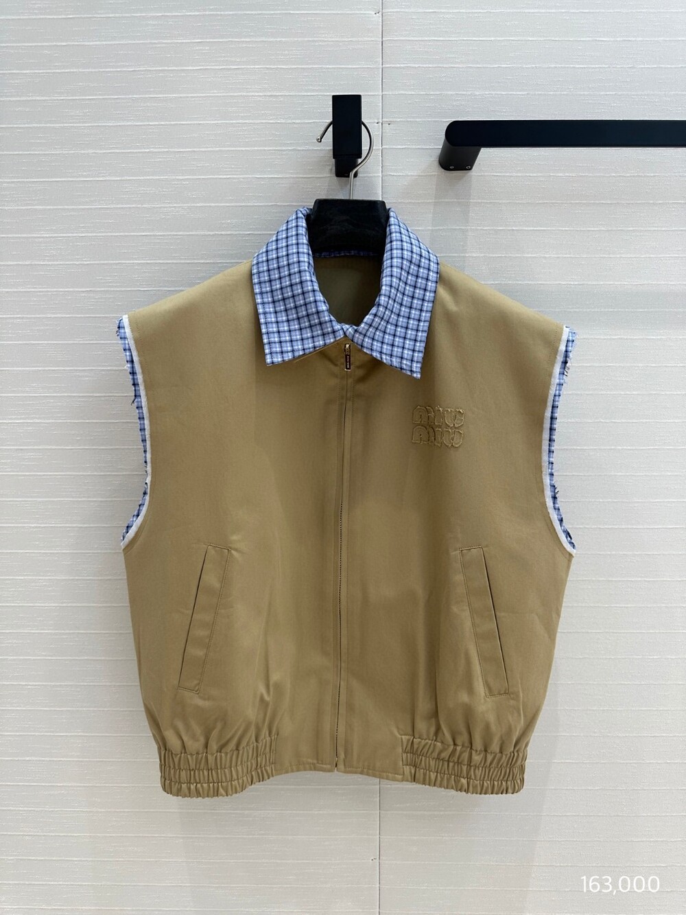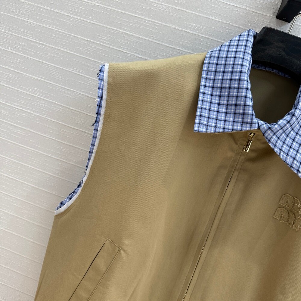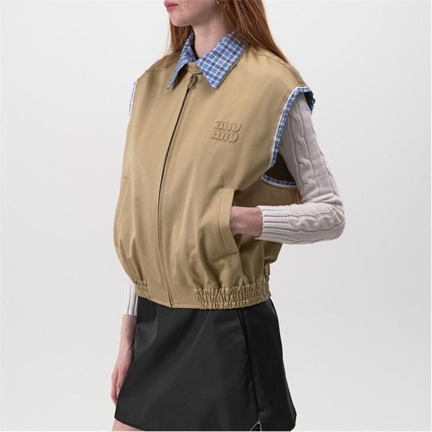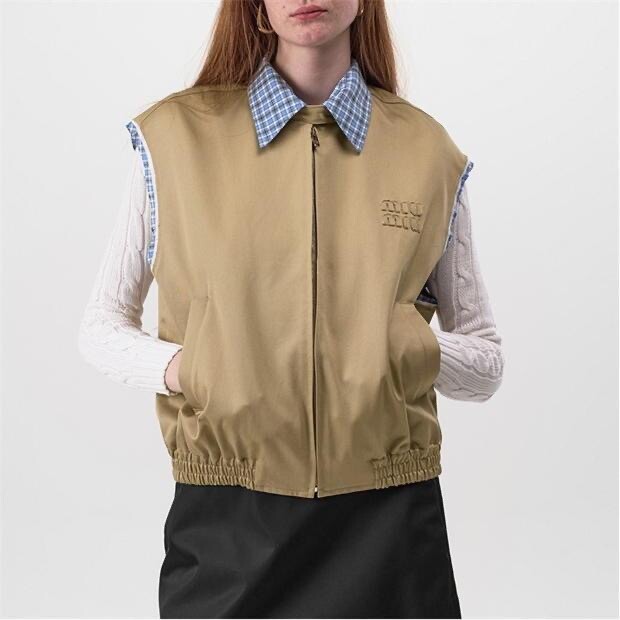 A. 뮤뮤 체크 배색 베이지 집업 베스트