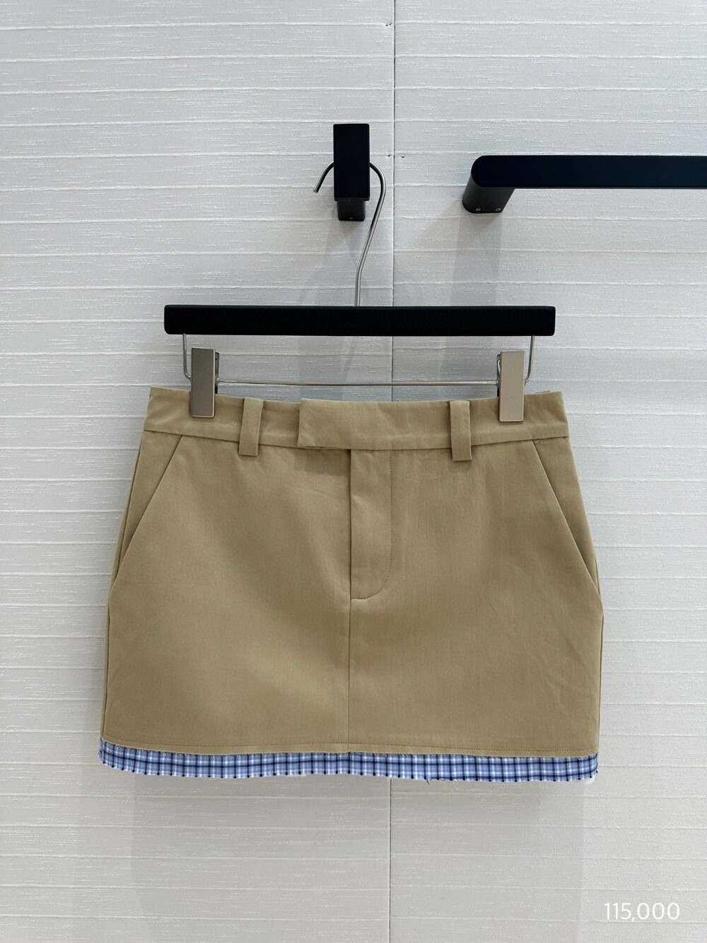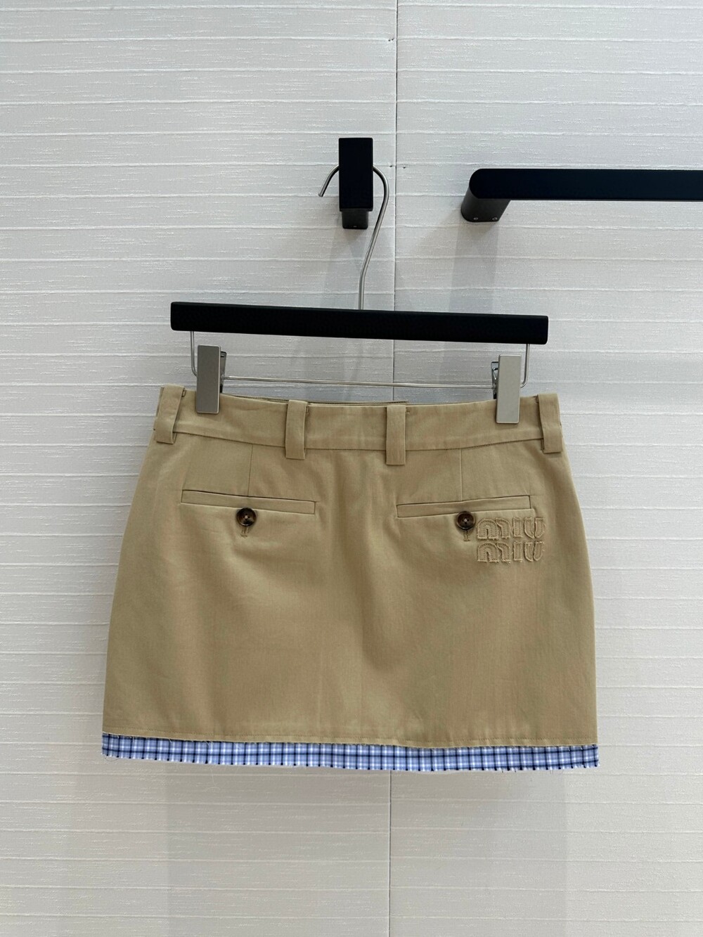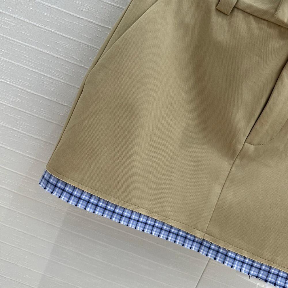 B. 뮤뮤 체크 배색 베이지 스커트