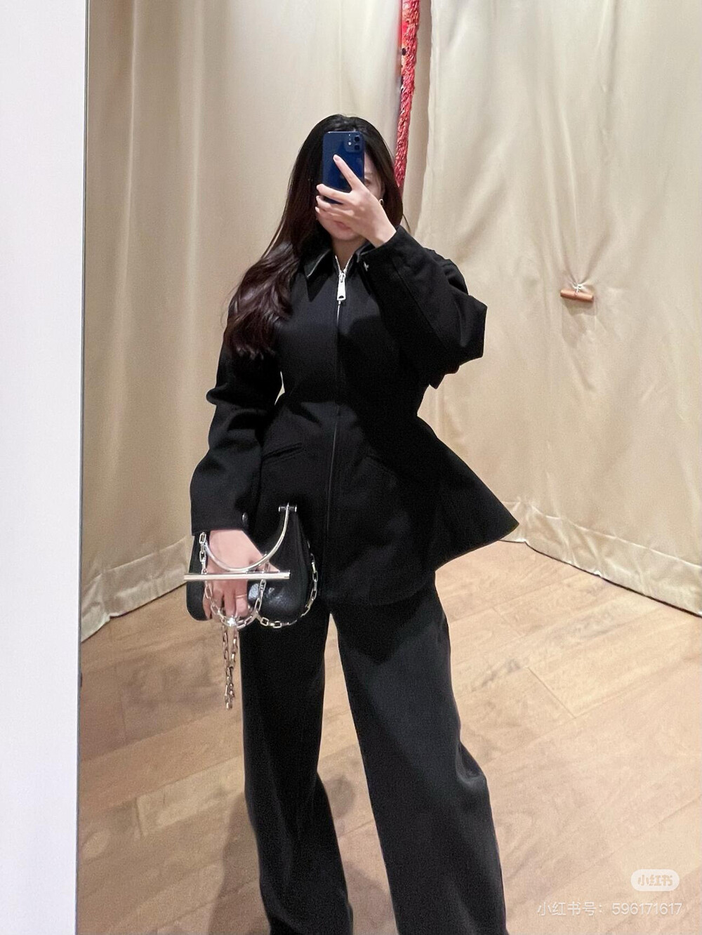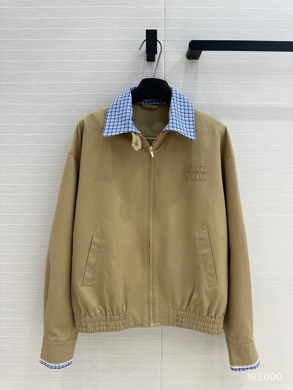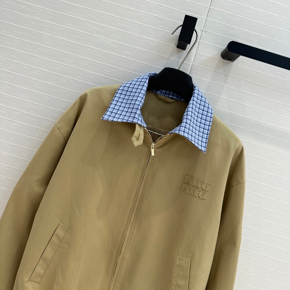 C. 뮤뮤 체크 카라 배색 블루종 점퍼