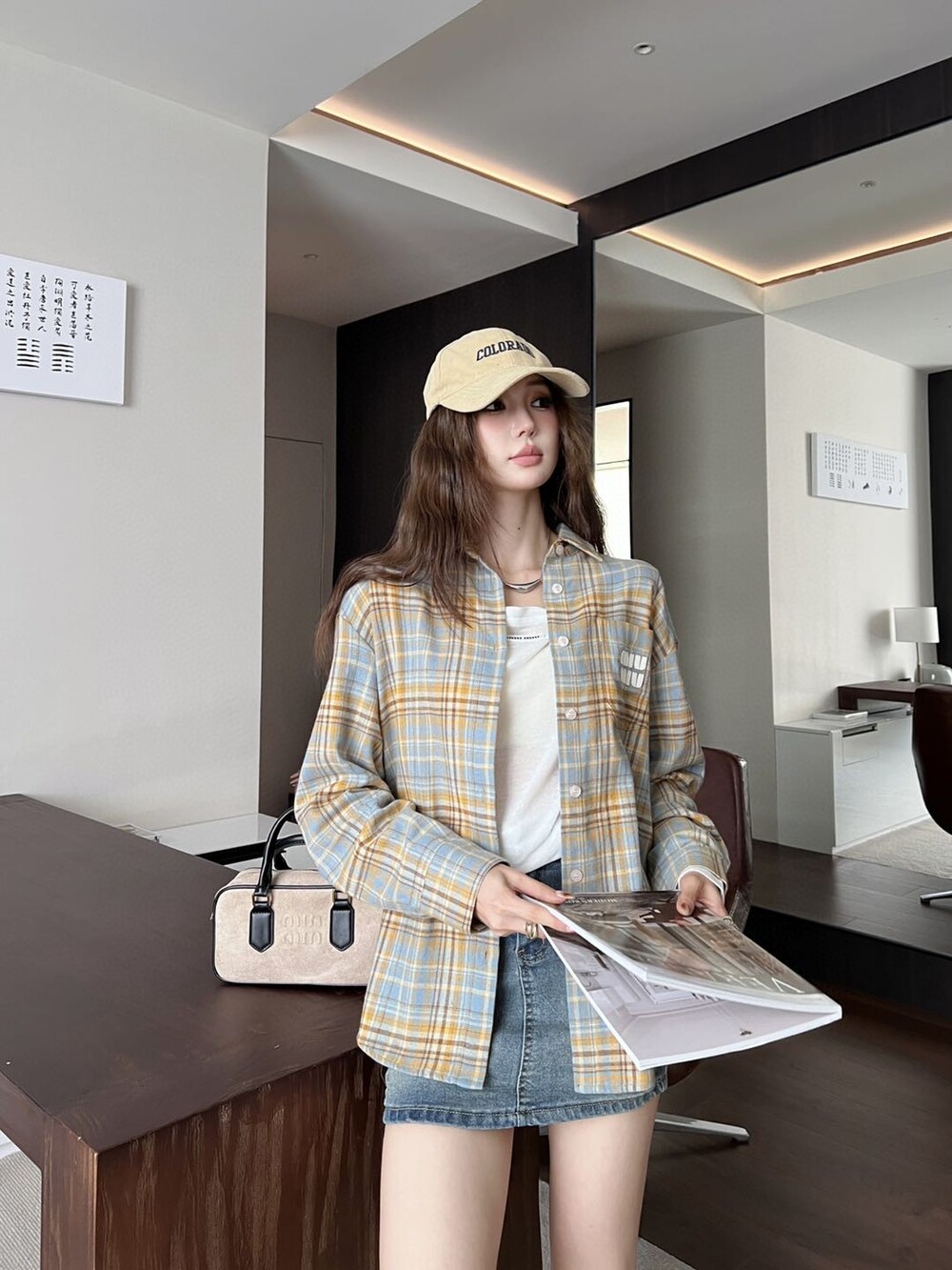 D. 뮤뮤 체크 패턴 셔츠