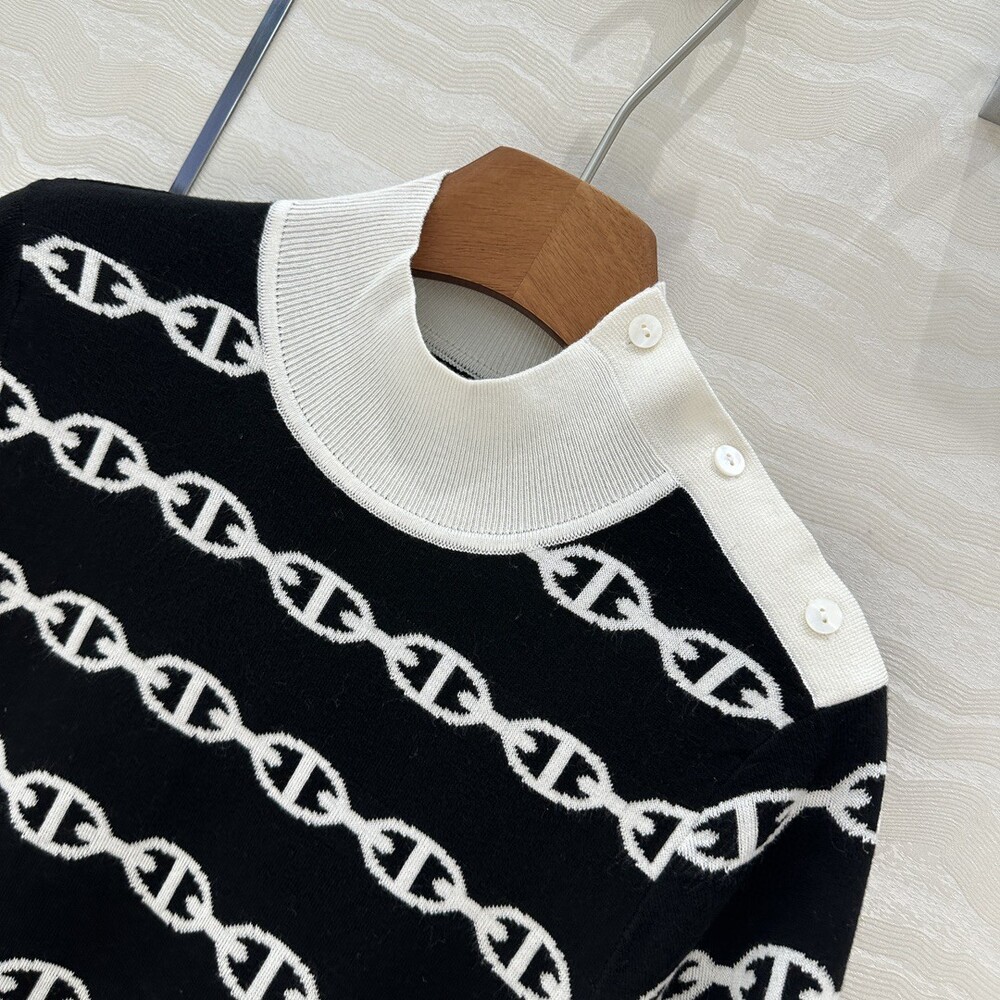 E. HERM 체인 패턴 반폴라 니트