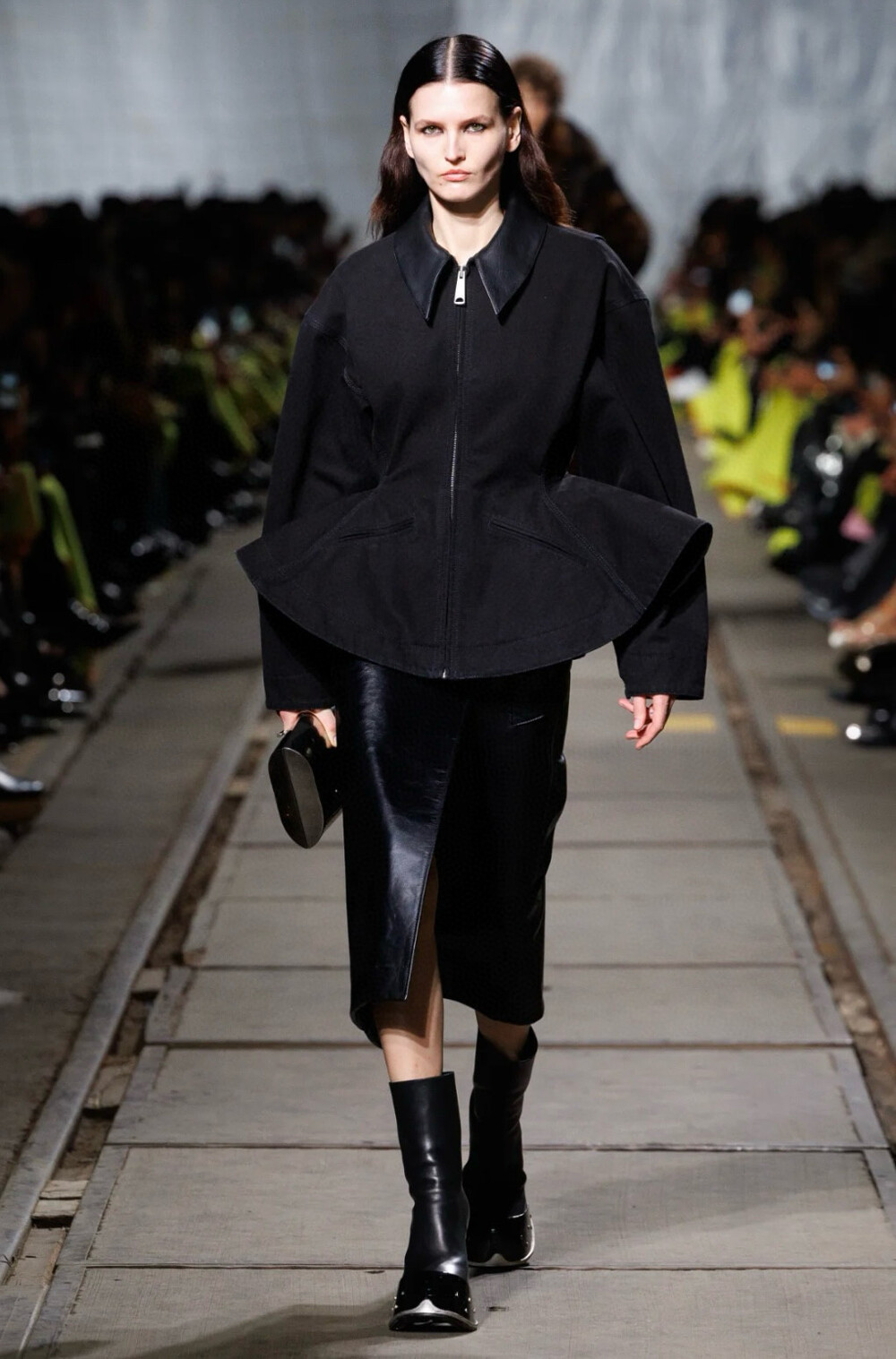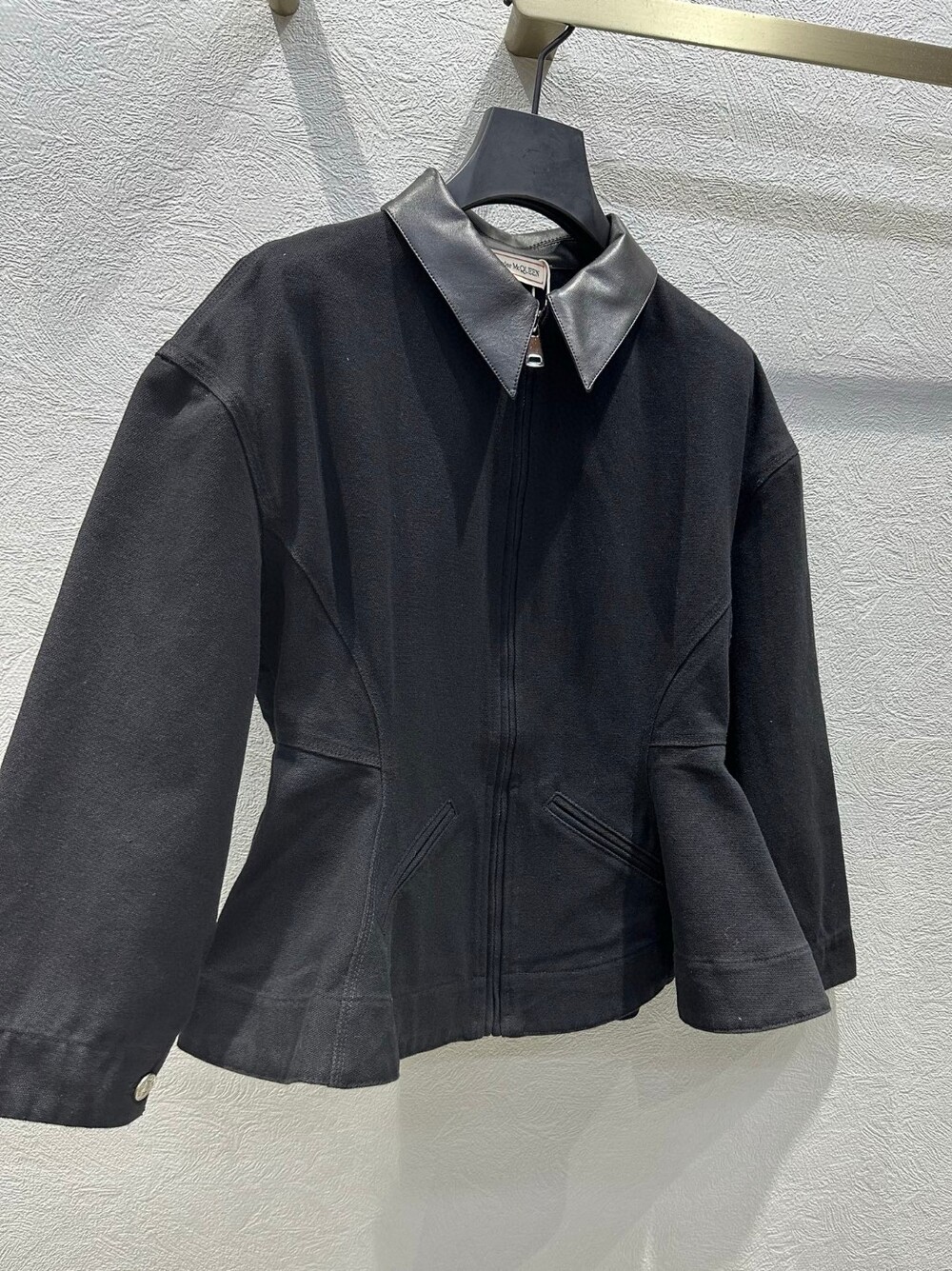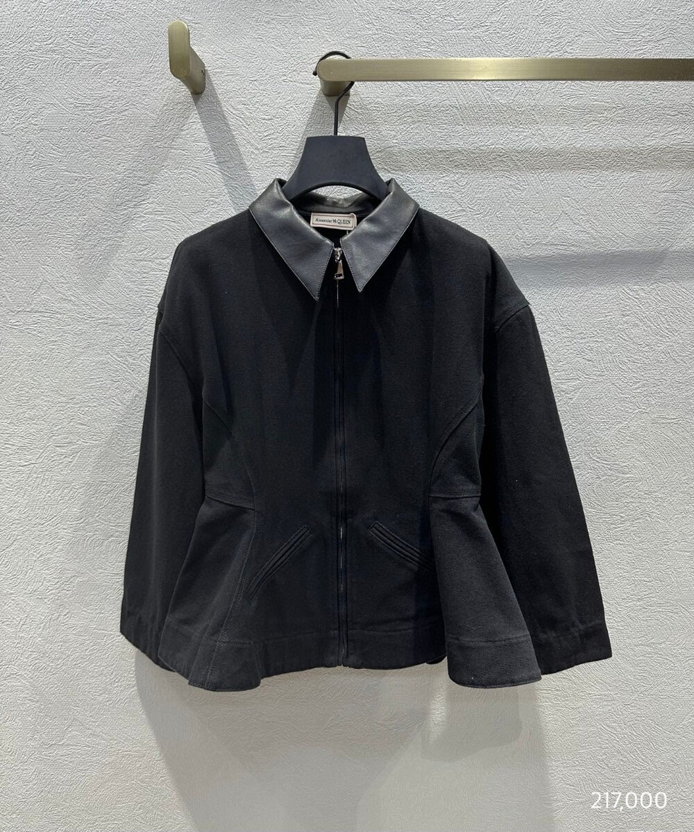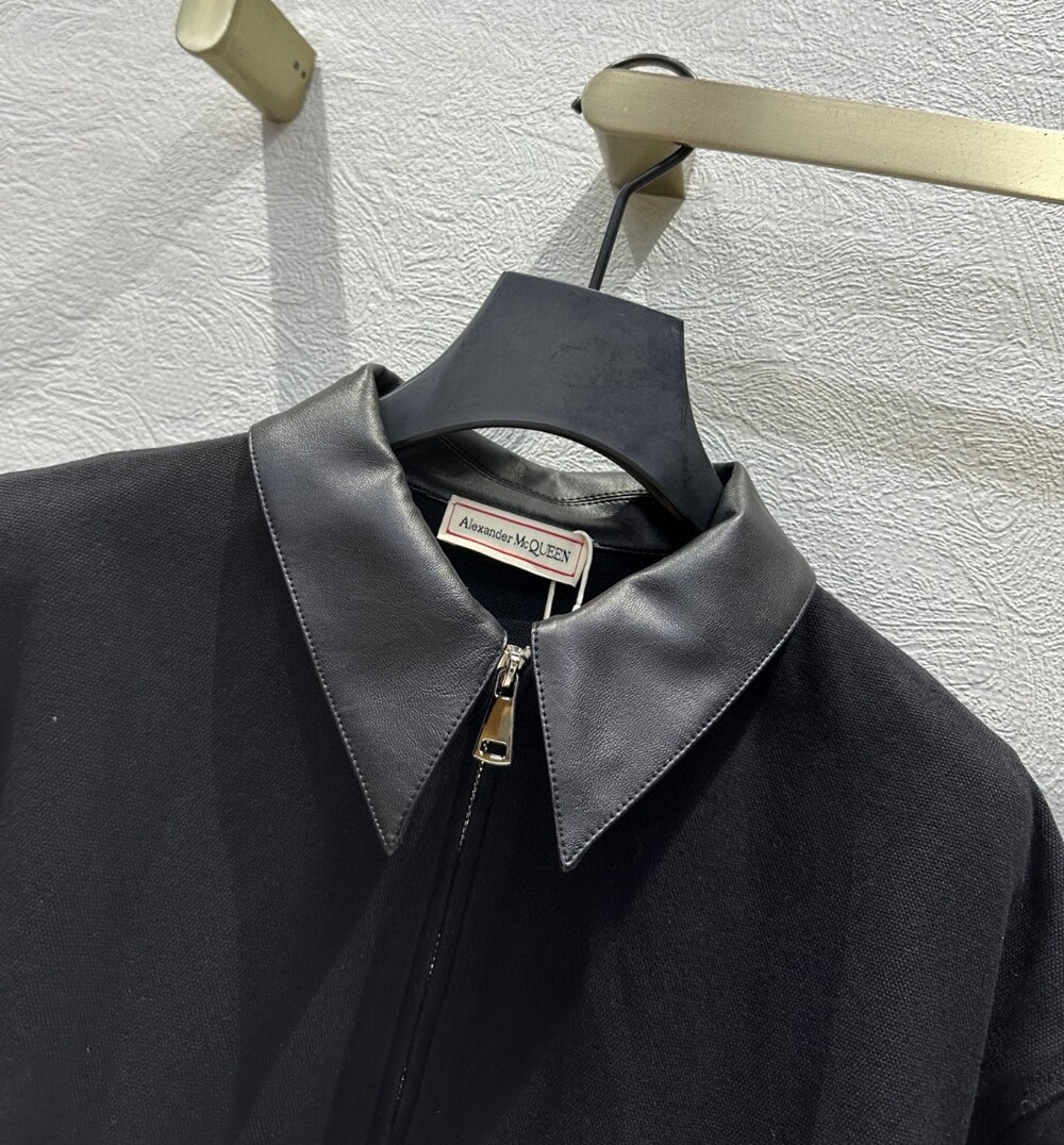 F. 맥퀸 블랙 레더 카라 집업 자켓