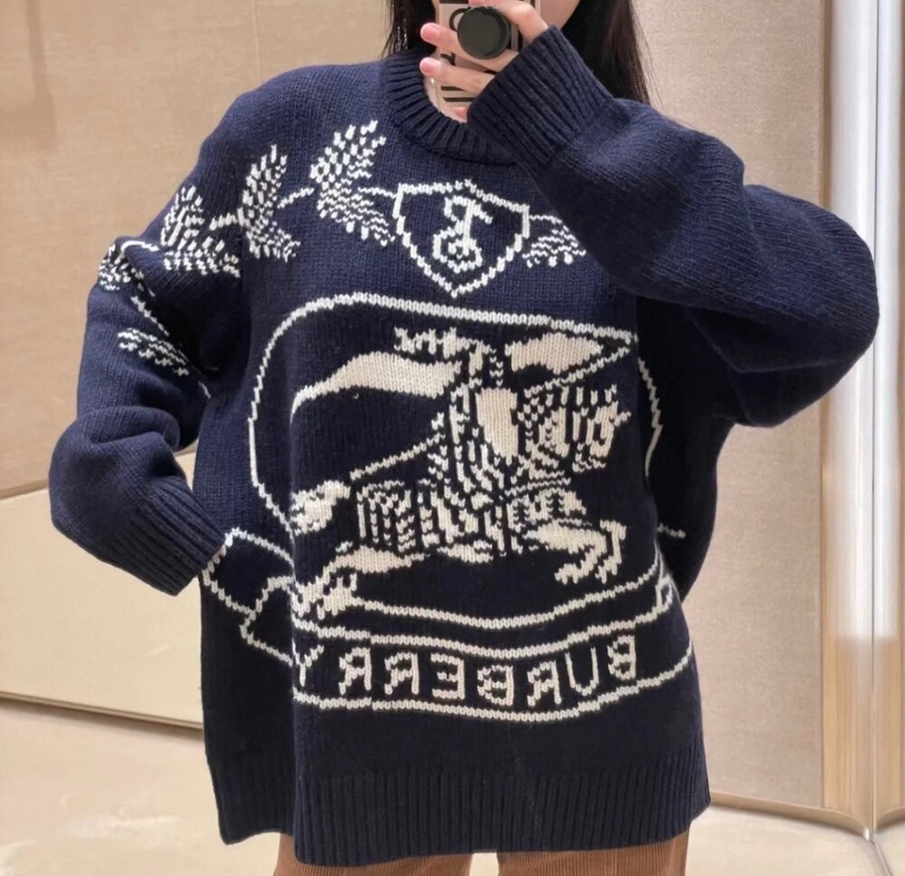 H. BR 로고 자수 오버핏 니트 네이비