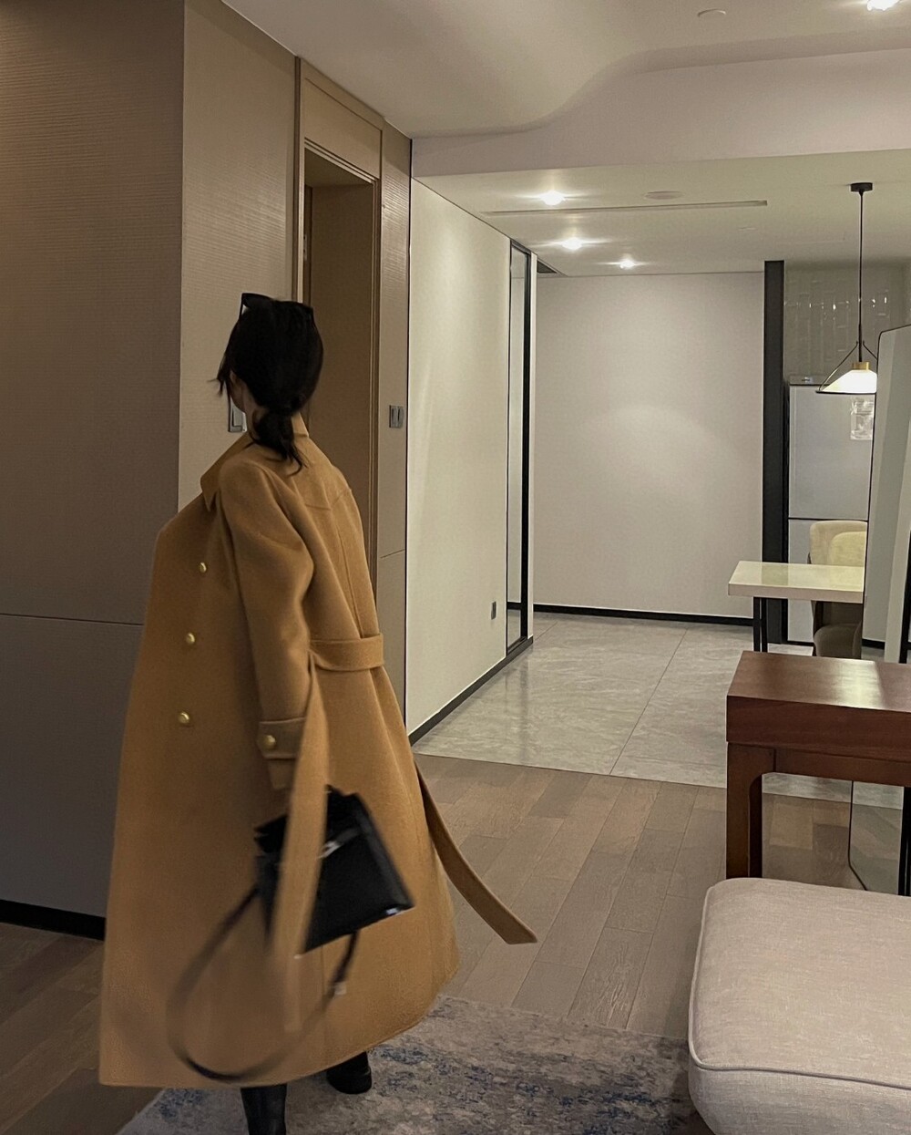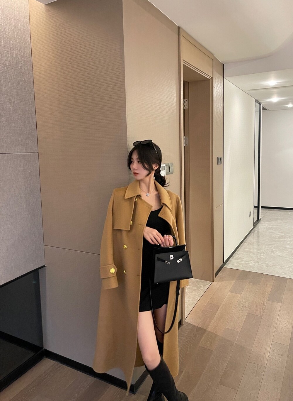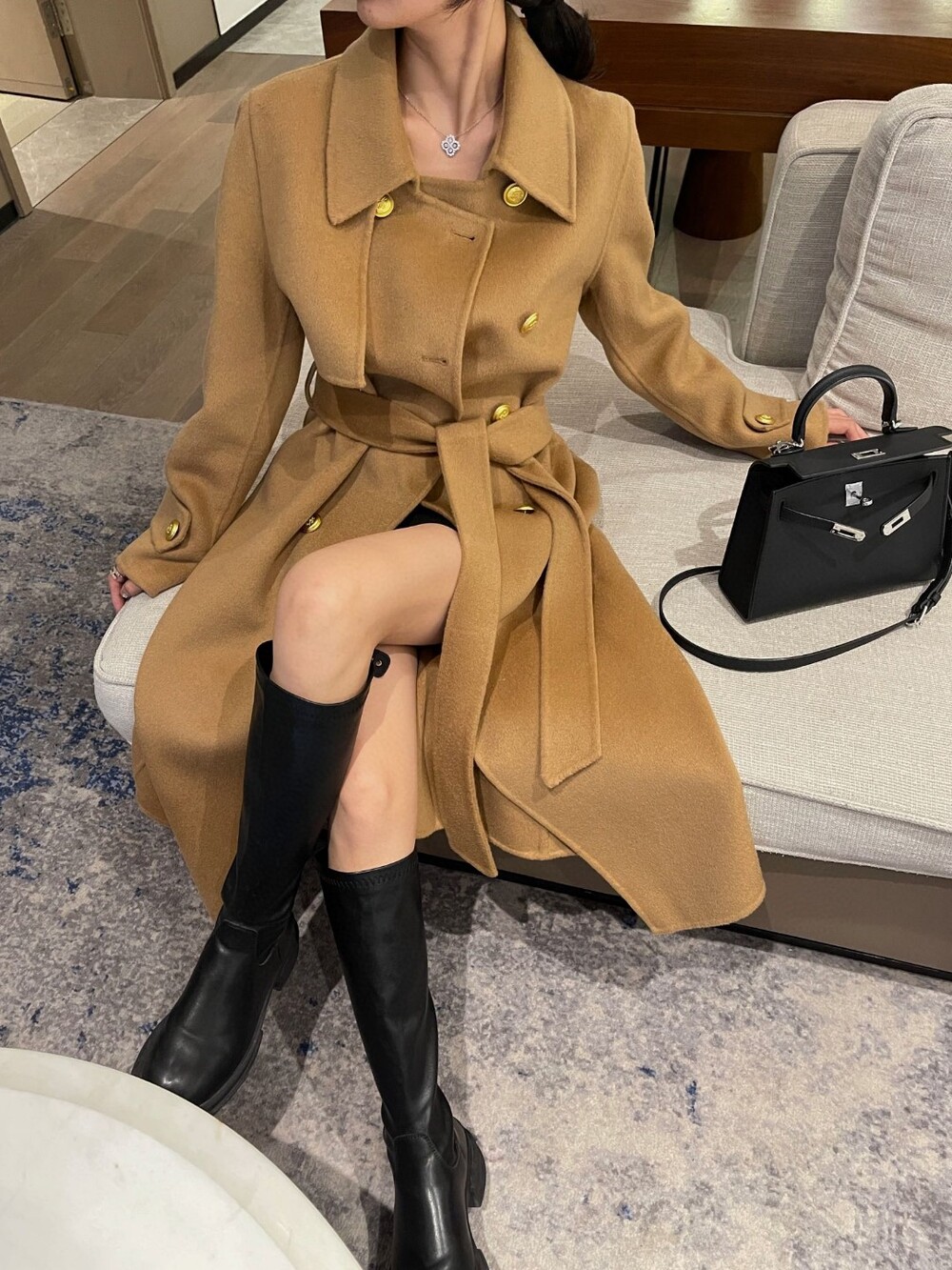 L. HER 골드 버튼 롱 코트