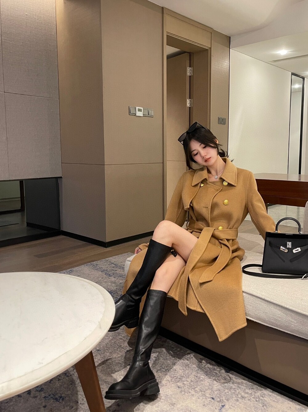 K. BUR 배색 더블 브레스트 코트