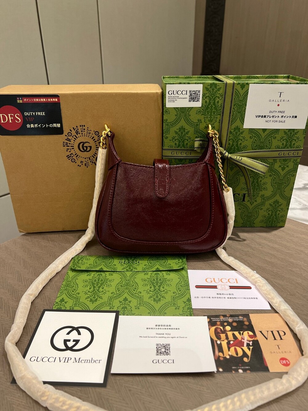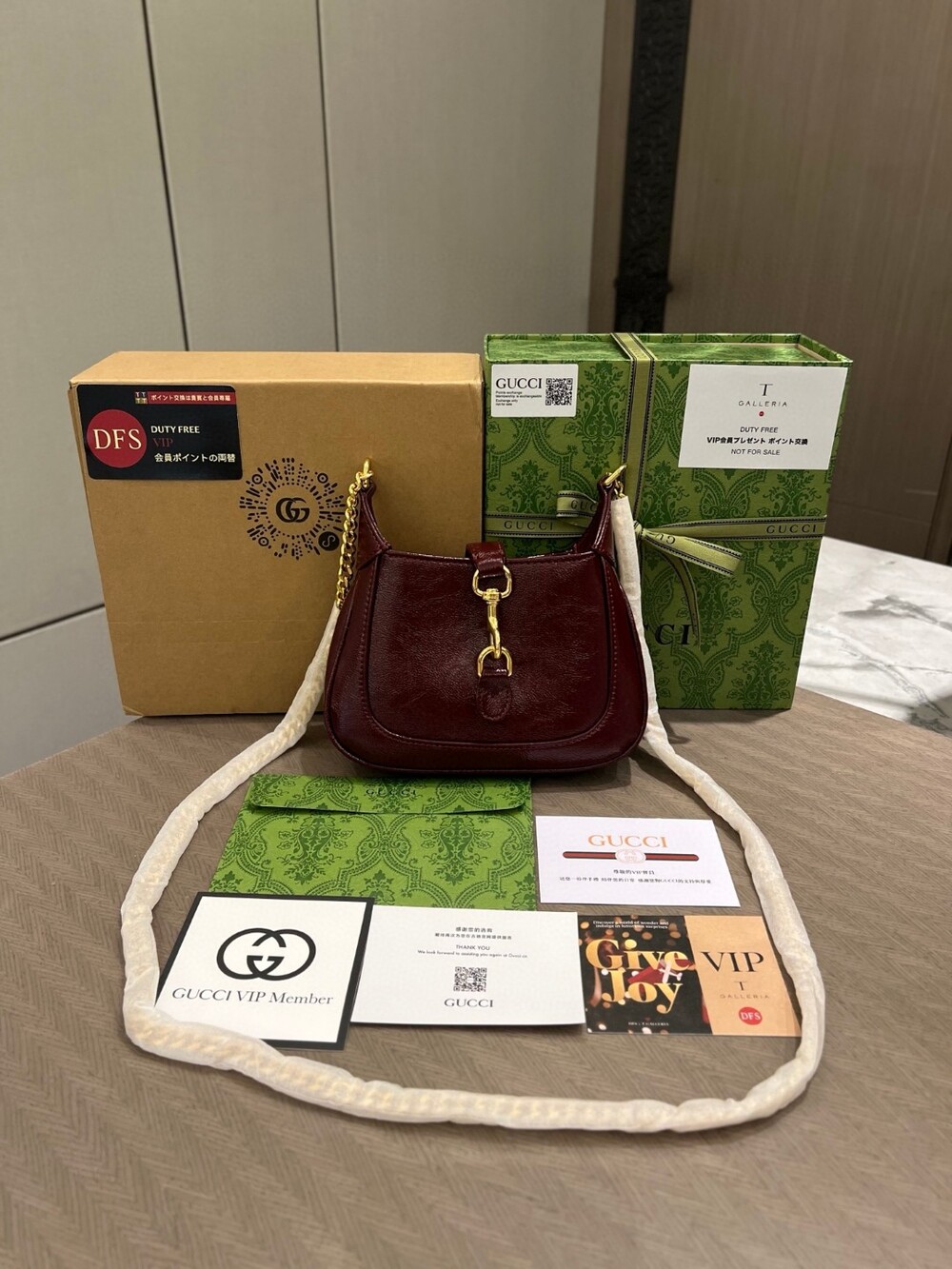 Gucci 1961 Jackie Saddle Bag – Dark RedComes with full VIP packaging and exclusive "beauty" inner label. Latest 24SS model Every detail and accessory is carefully crafted