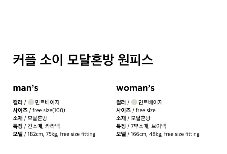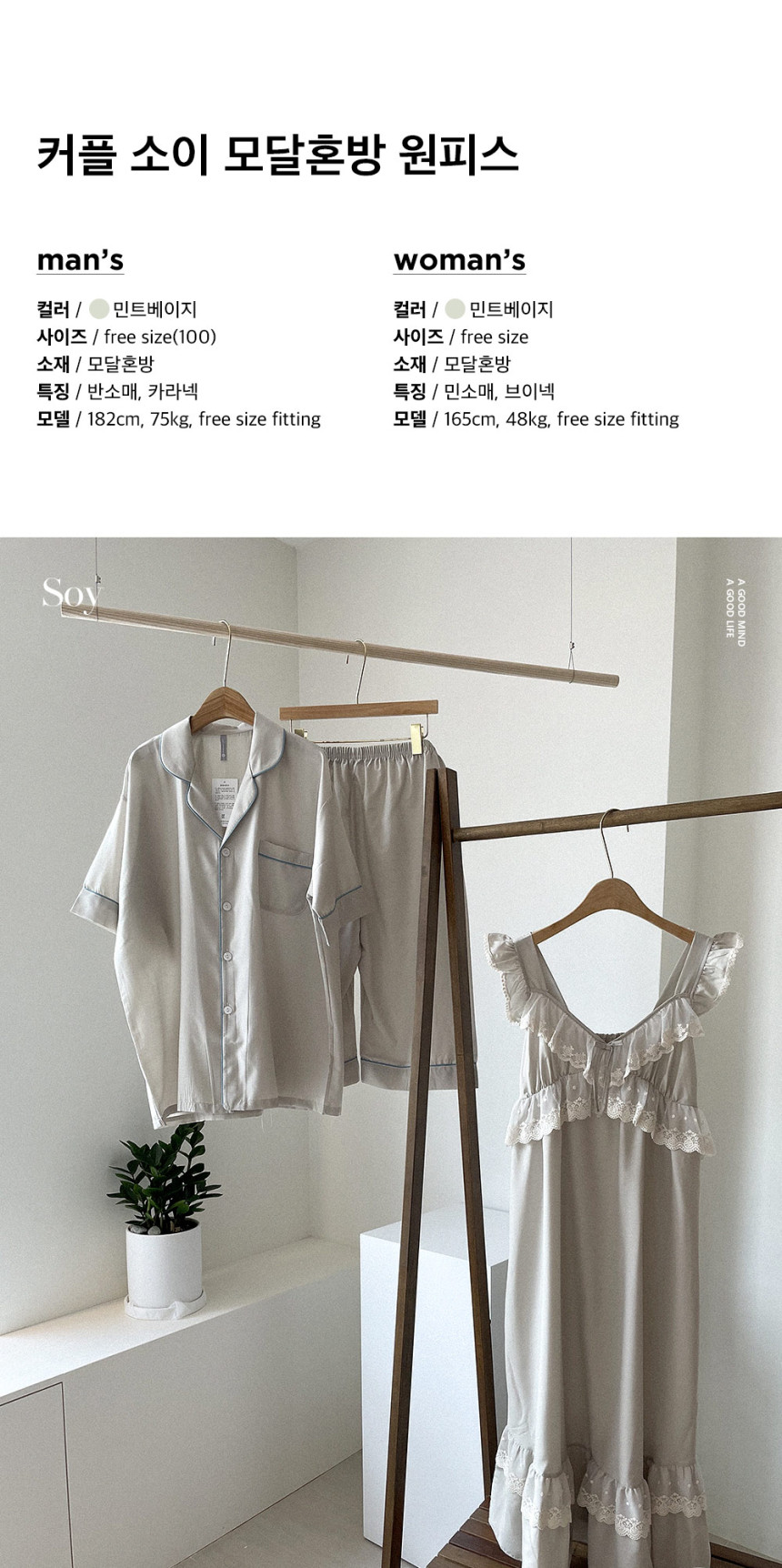 여성 남성 커플 소이 원피스 투피스 민소매 긴소매 수면 잠옷