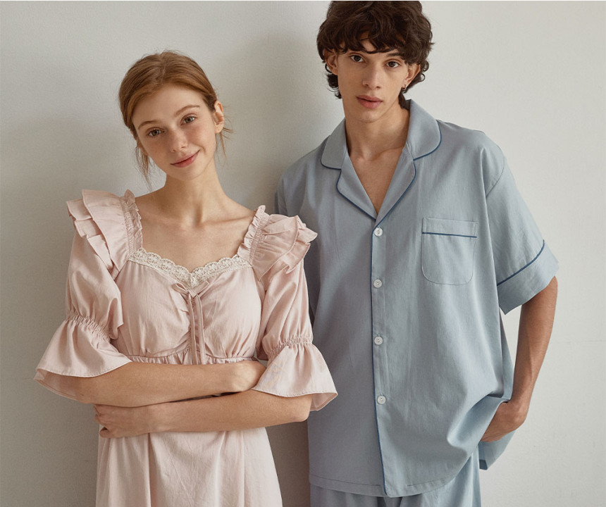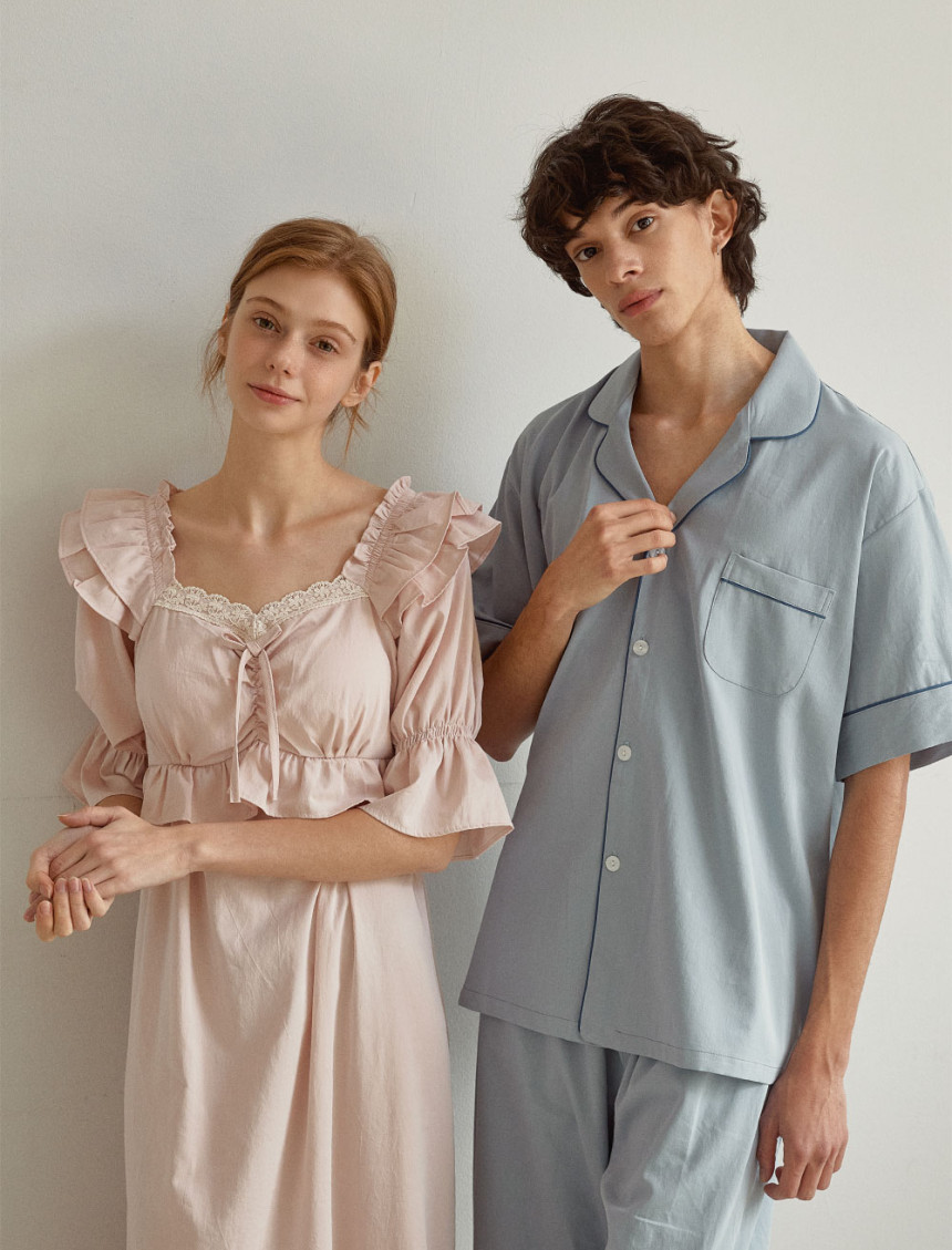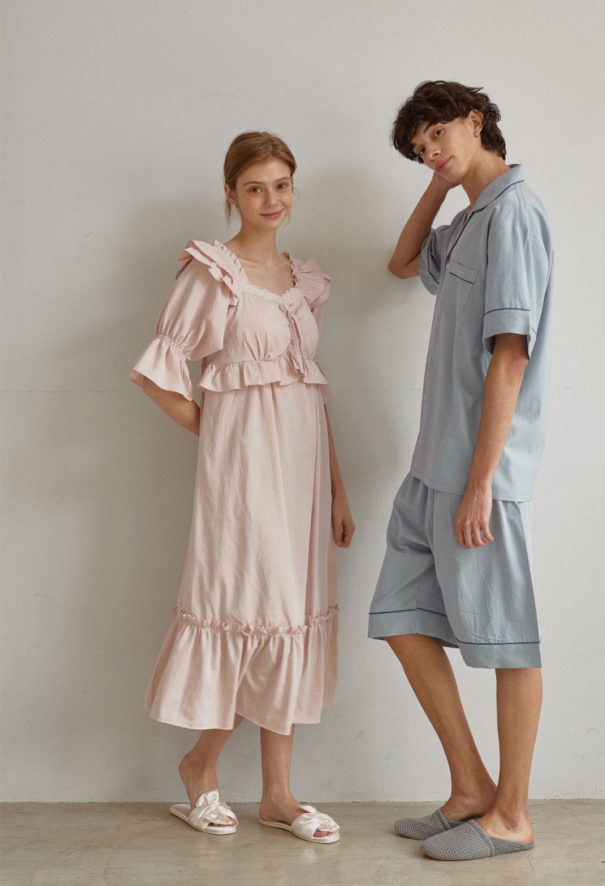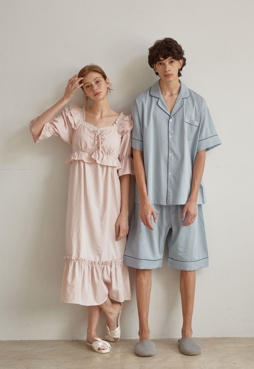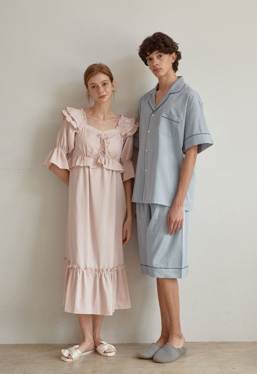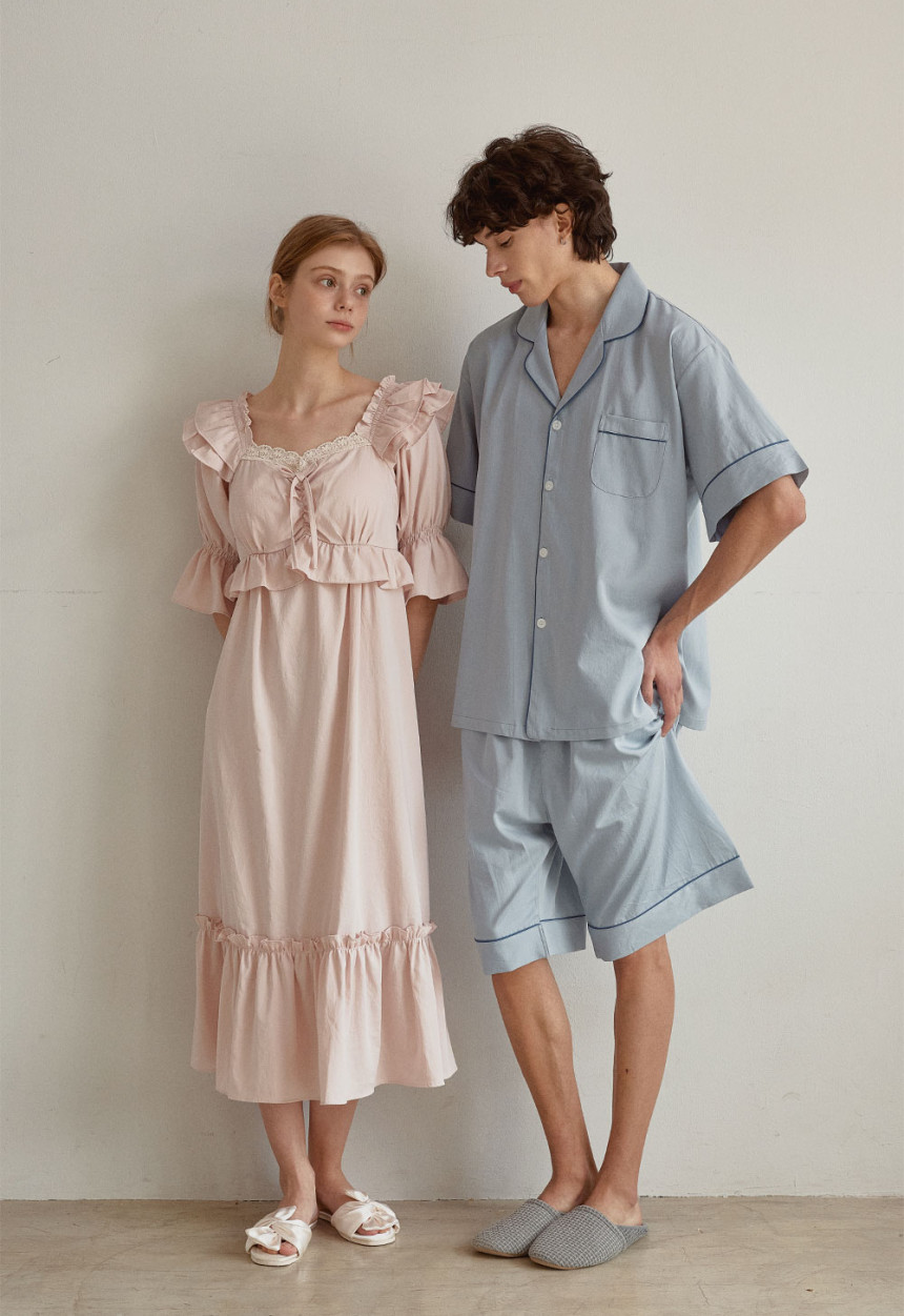 여성 남성 커플 워싱코튼 원피스 투피스 수면 잠옷