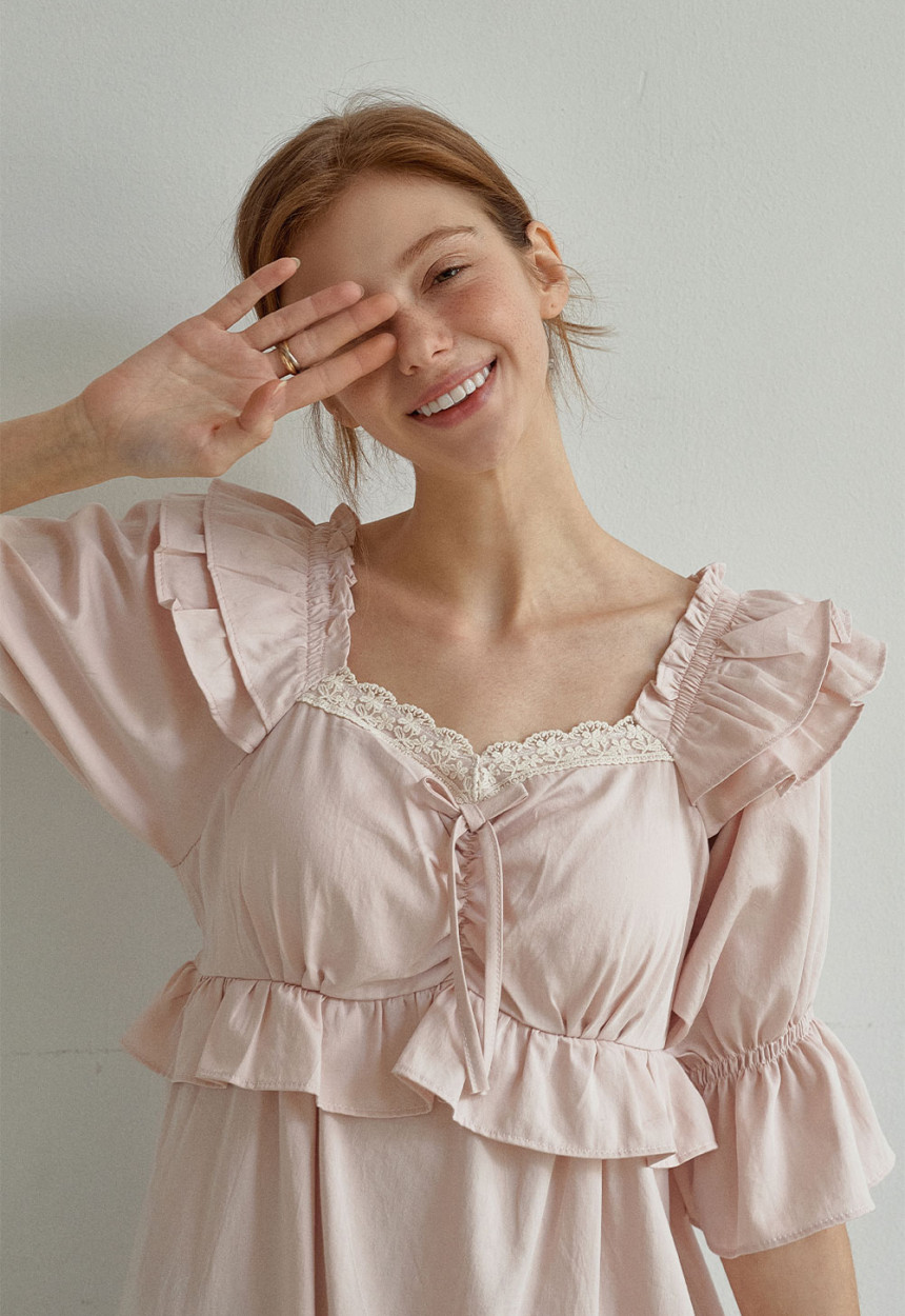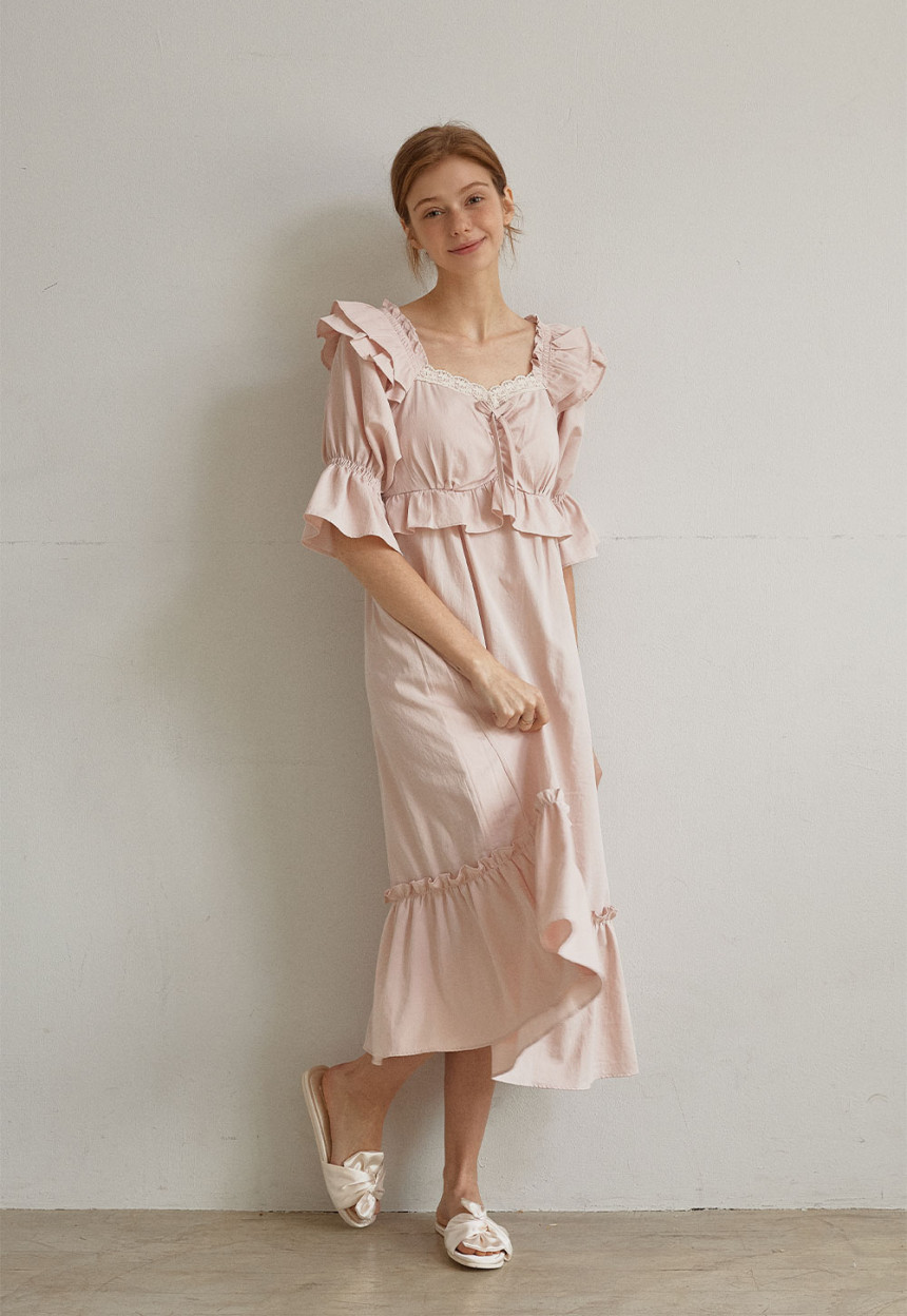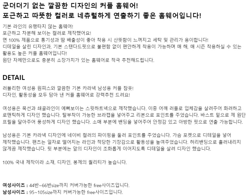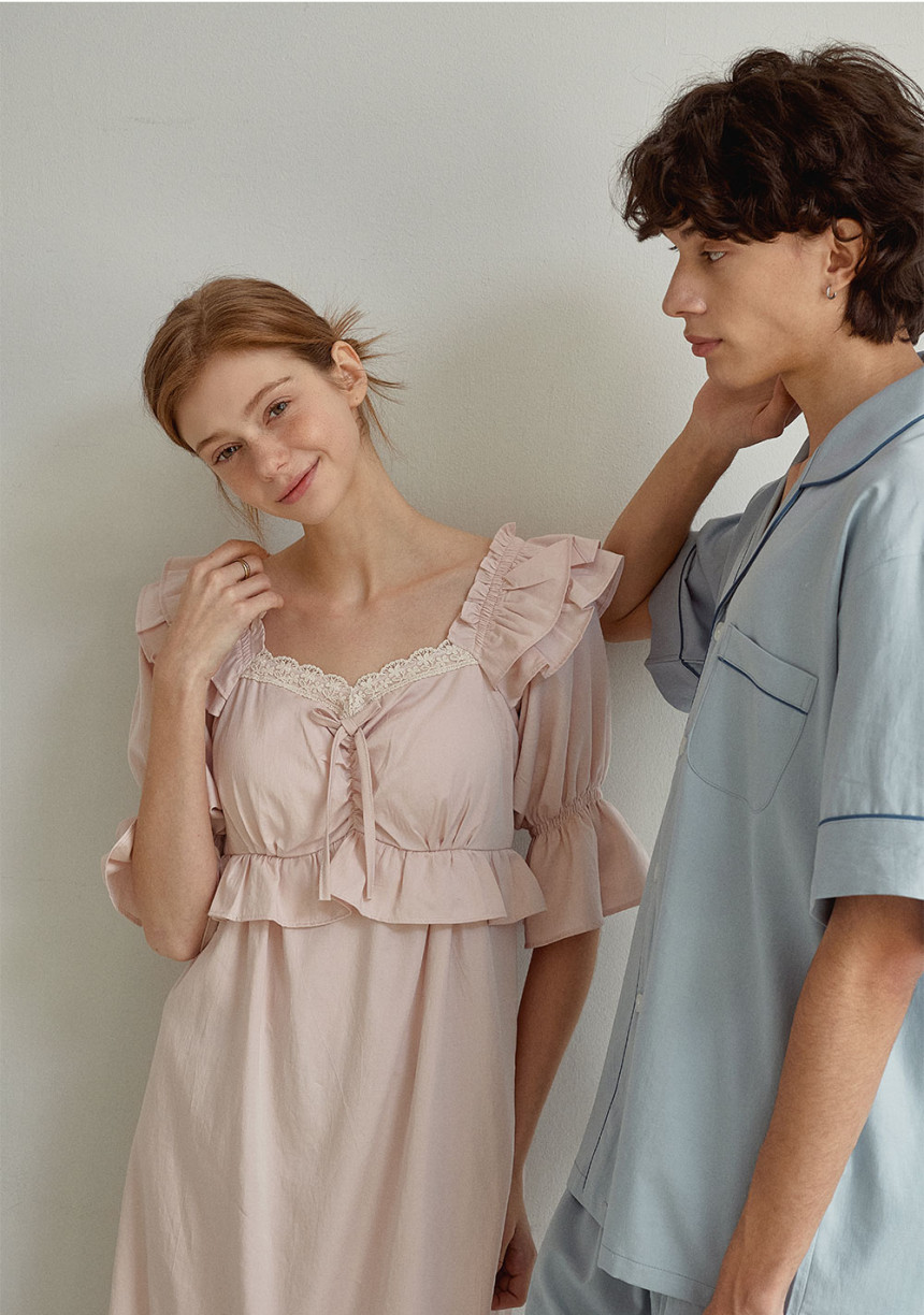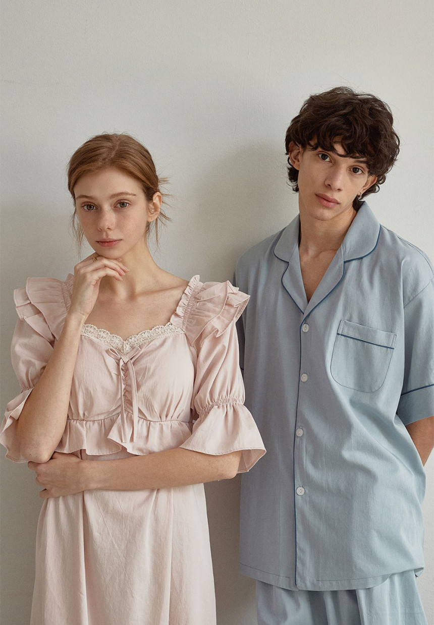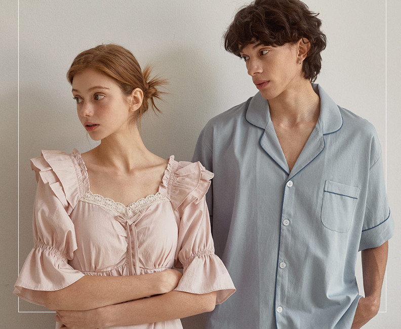 여성 남성 커플 워싱코튼 원피스 투피스 수면 잠옷