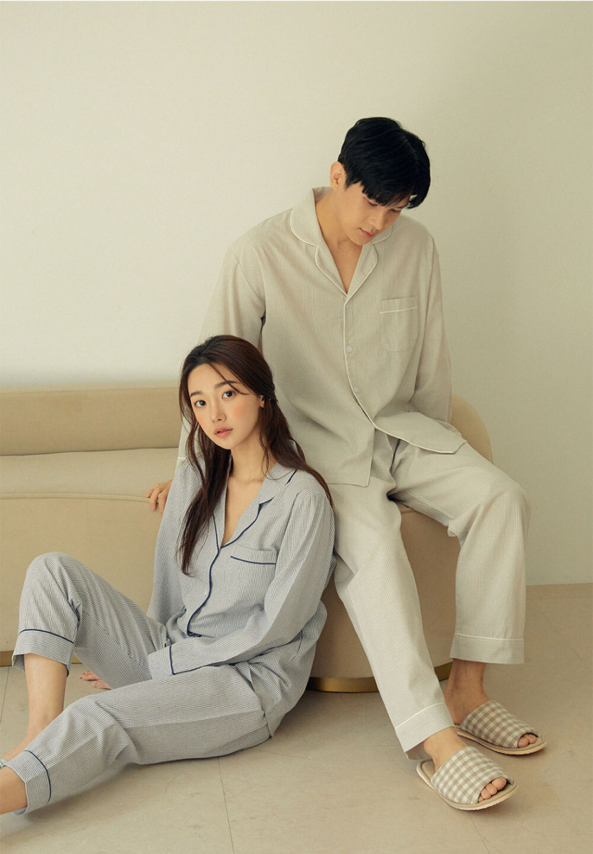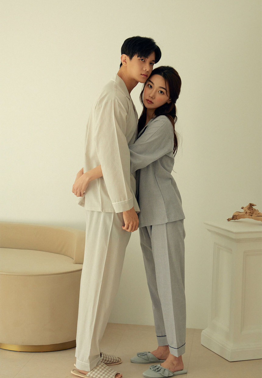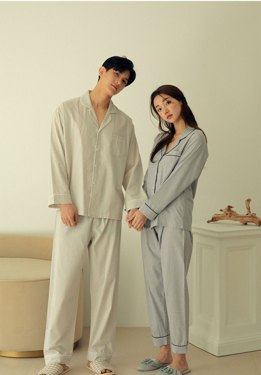 여성 남성 커플 비스킷 투피스 수면 잠옷