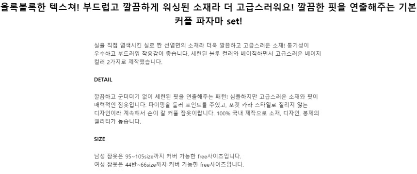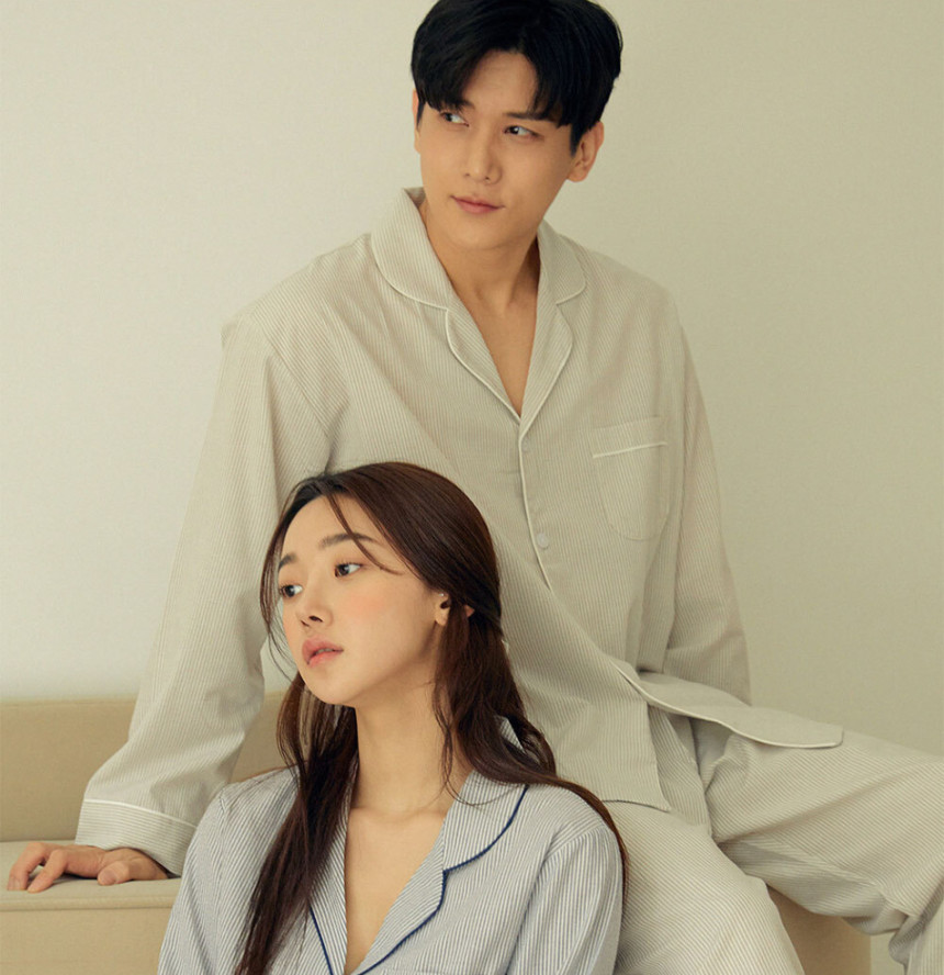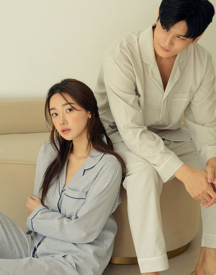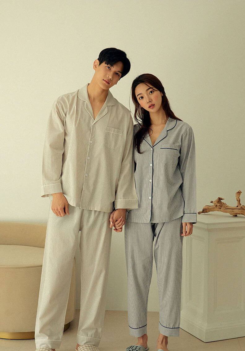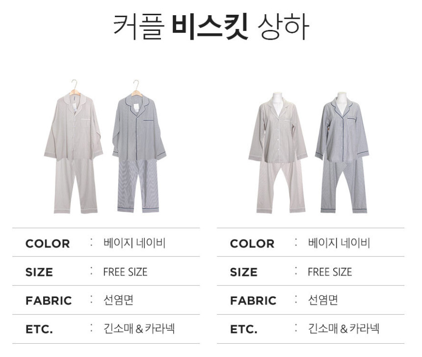 여성 남성 커플 비스킷 투피스 수면 잠옷