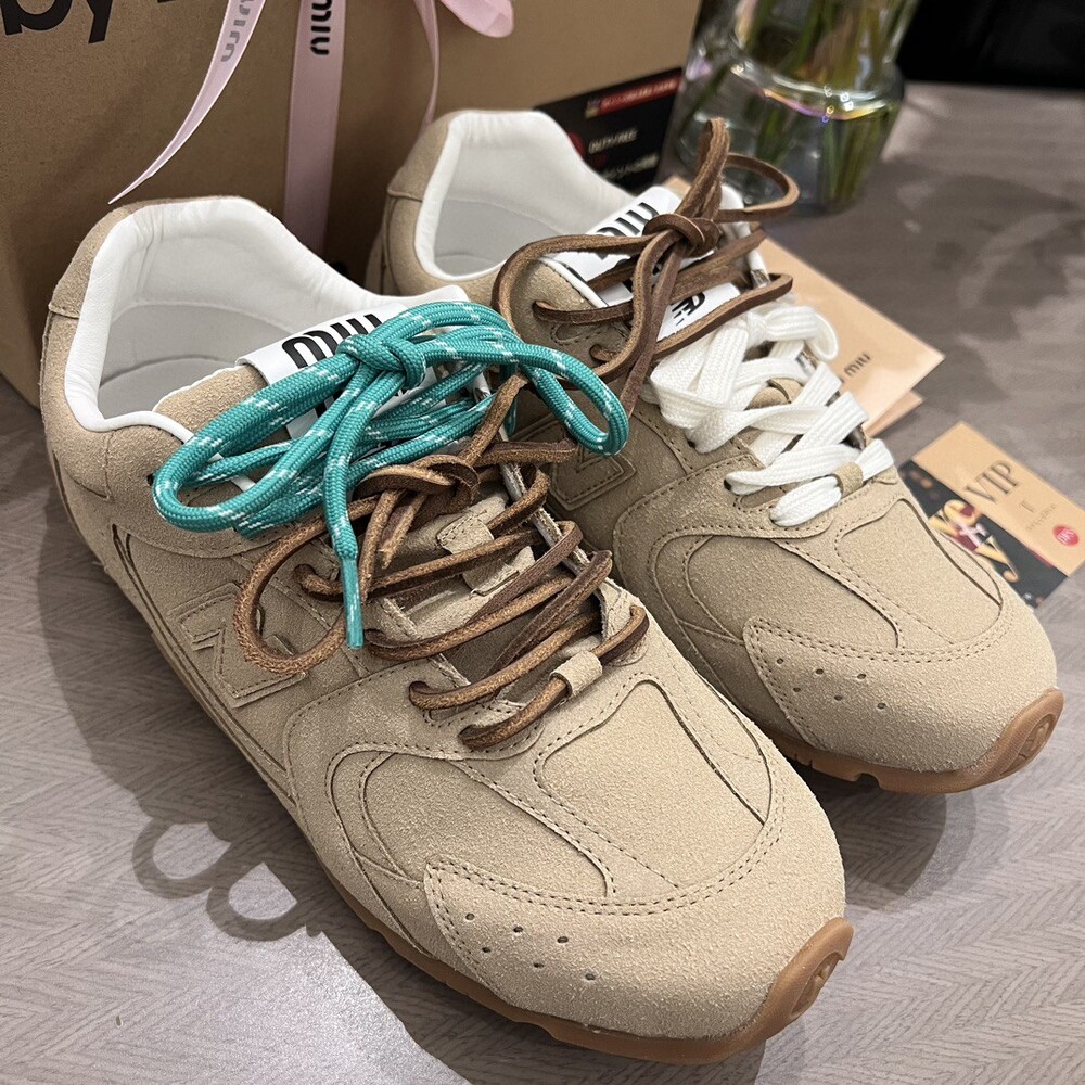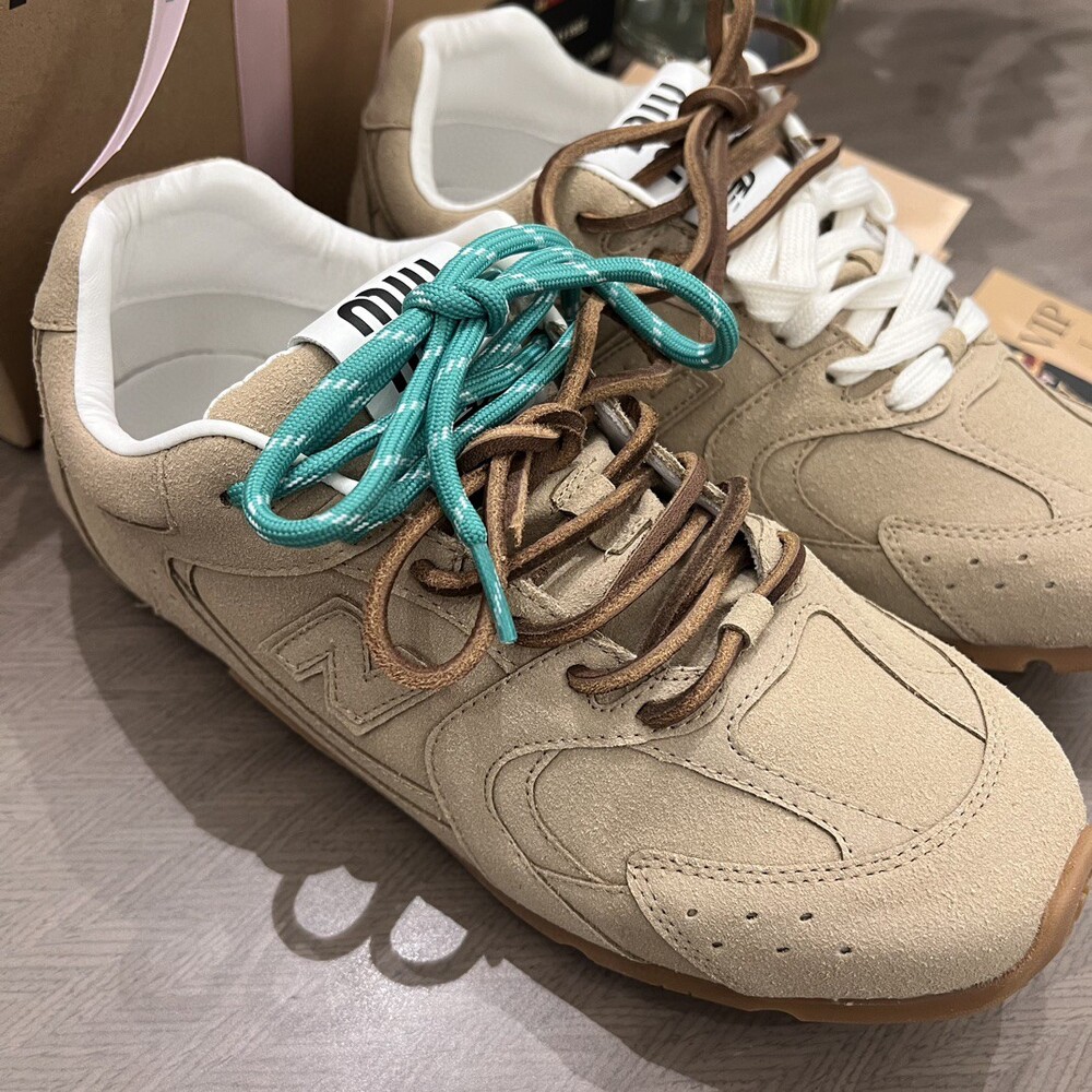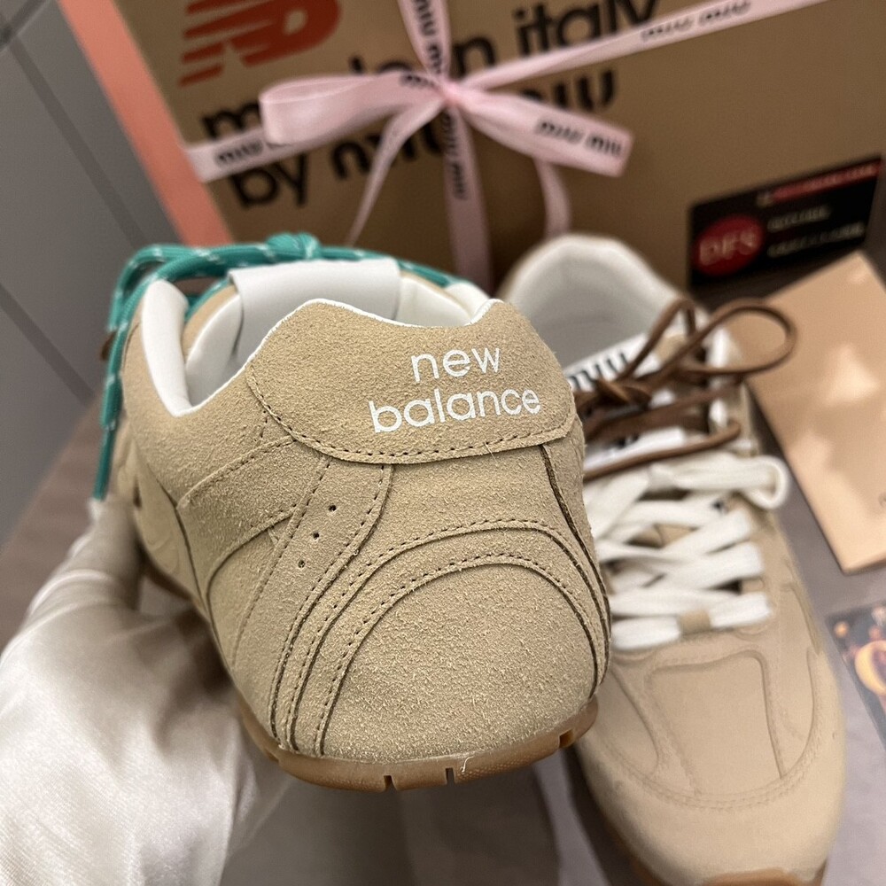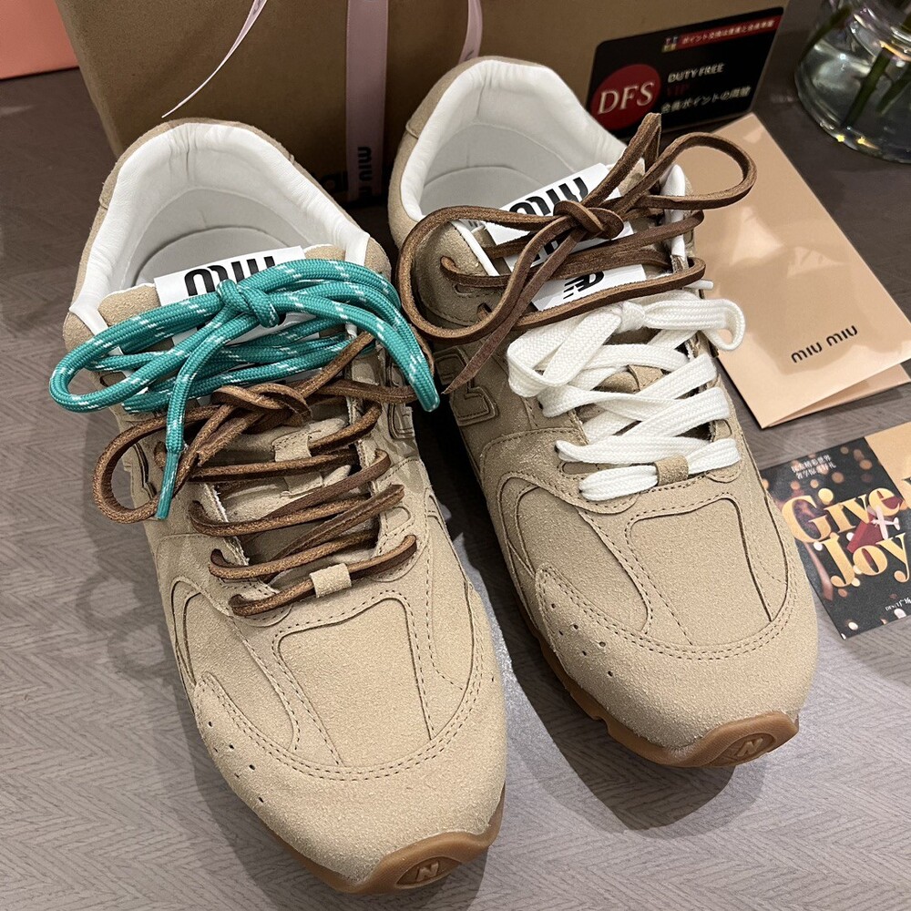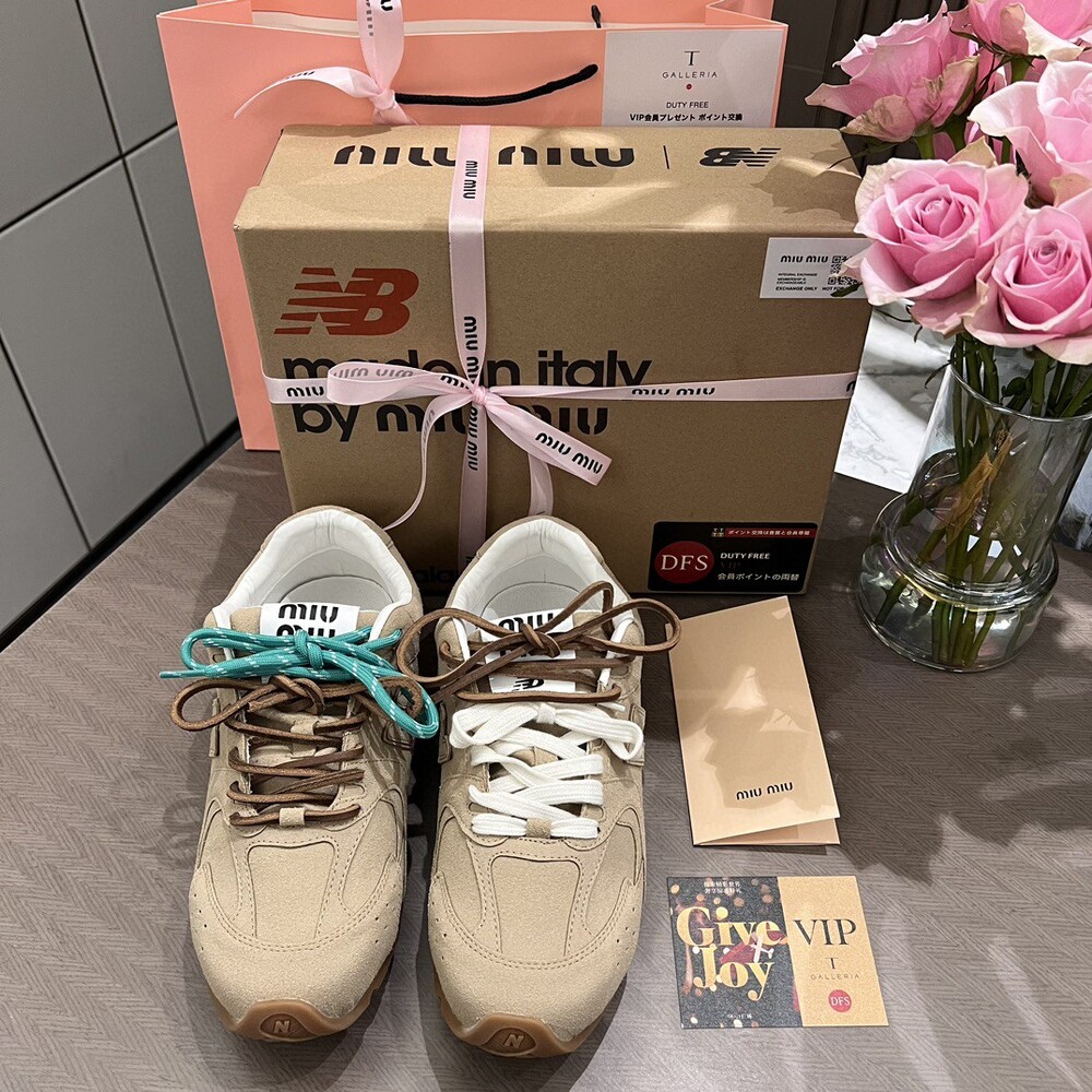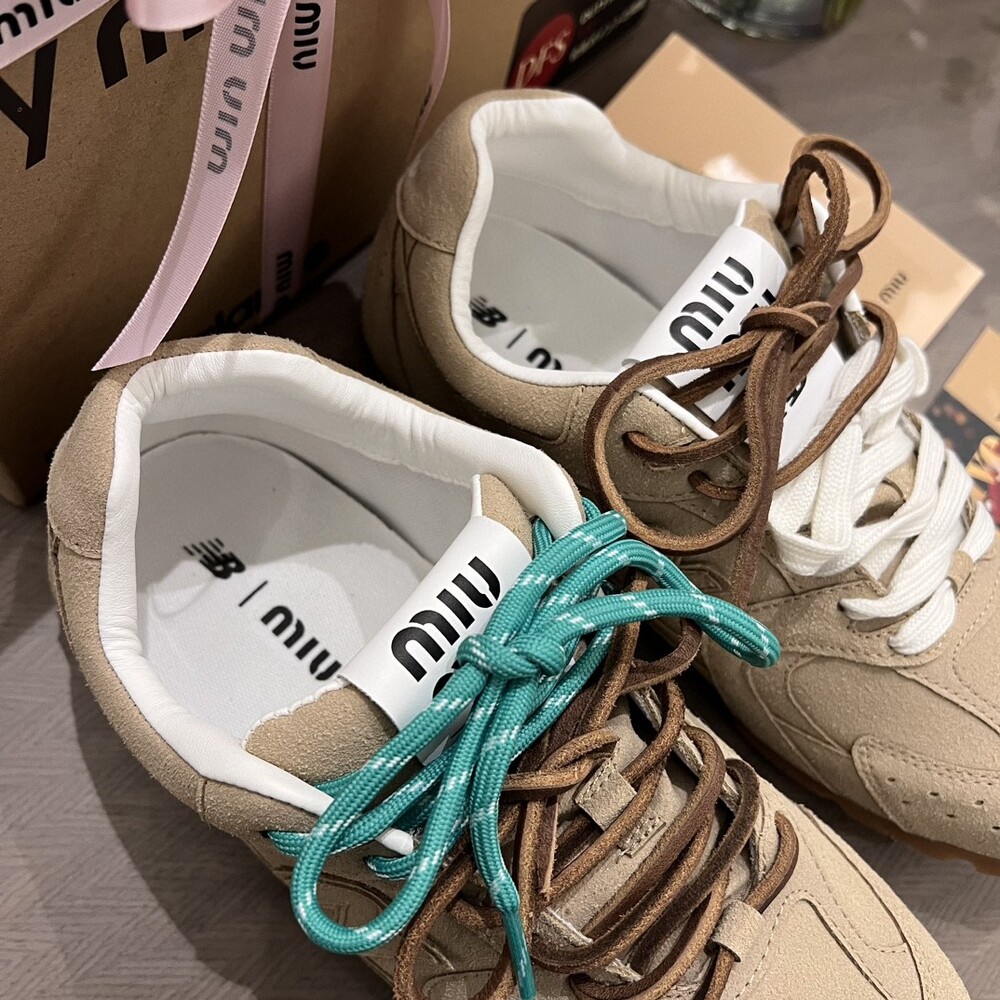 Miumiu x New Balance for men and women Full Package/ Exclusive UNIFORM Even fashion bloggers and fashion week are pushing shoes not only high value Perfectly comfortable! Flat sole design, but the sole is 1.5-2cm thick, walking super soft and not bad for the feet, 20,000 steps a day is no problemWhether it is playing badminton, golf, or matching a small skirt on a high-end occasion, this pair of Miumiu shoes can support the court, which is completely beautifulAnd it also has a pair of shoelaces design, full of women's style, fresh and high-end color matching, no matter how you look at it.