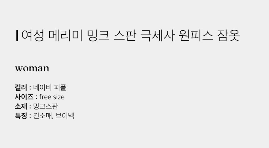 여성 메리미 밍크스판 원피스 투피스 수면 잠옷