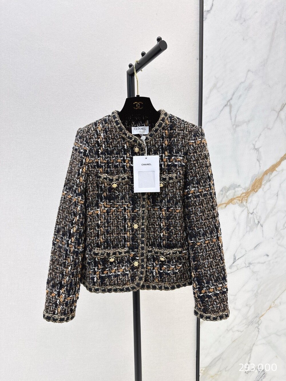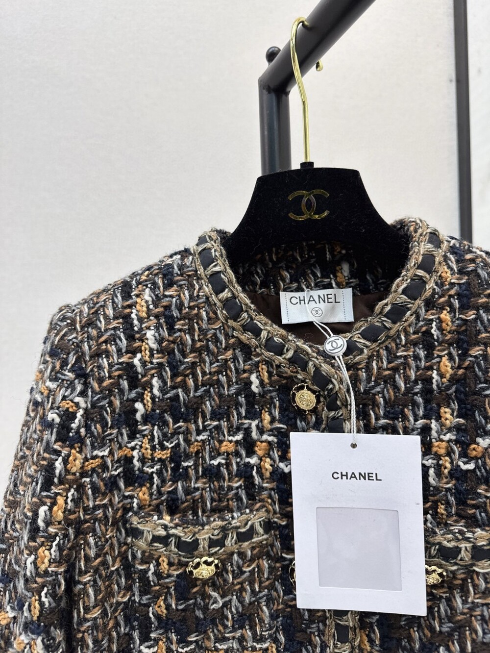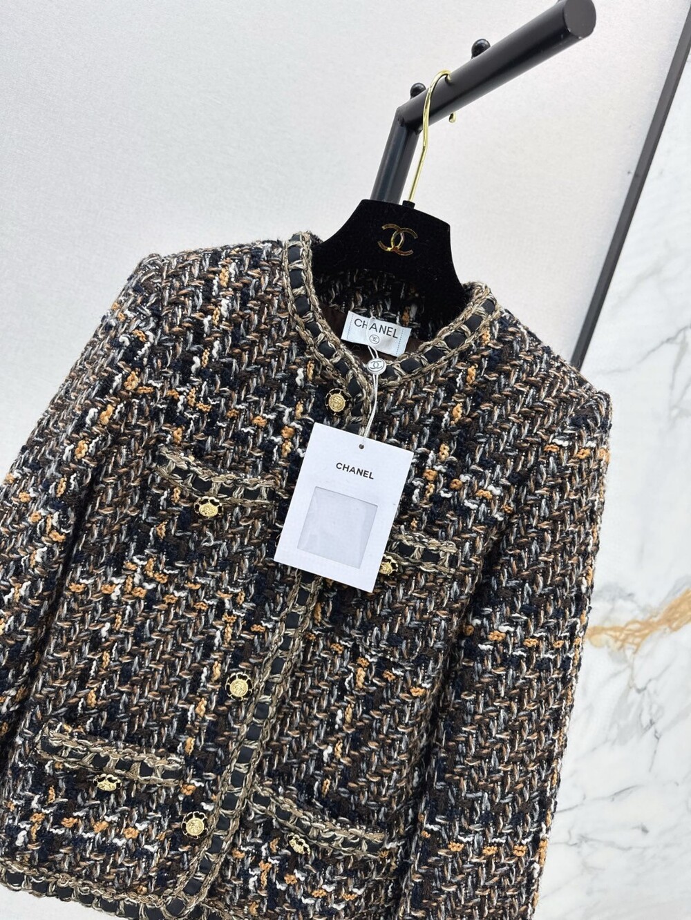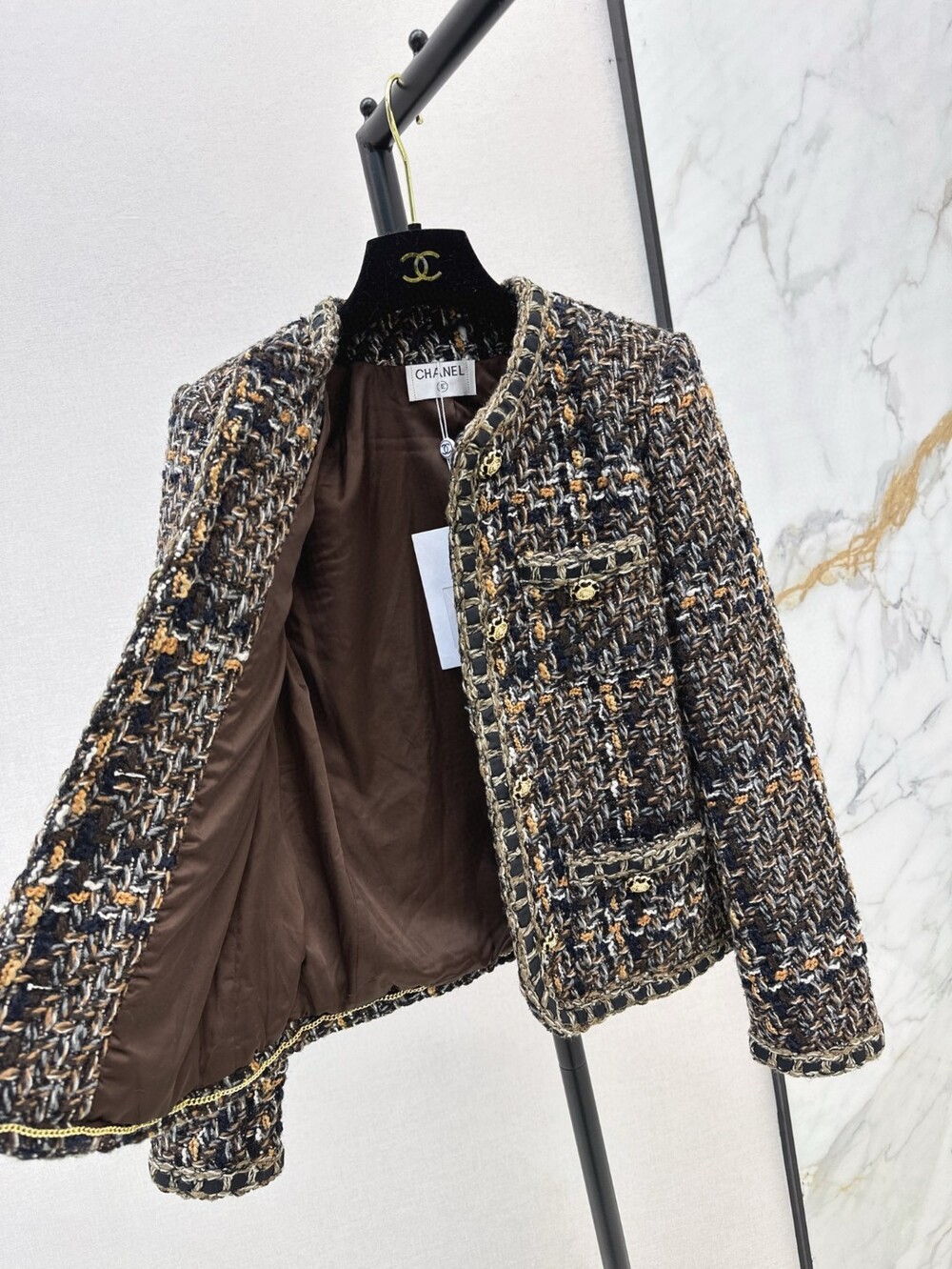 B. CC 골드 브라운 트위드 자켓