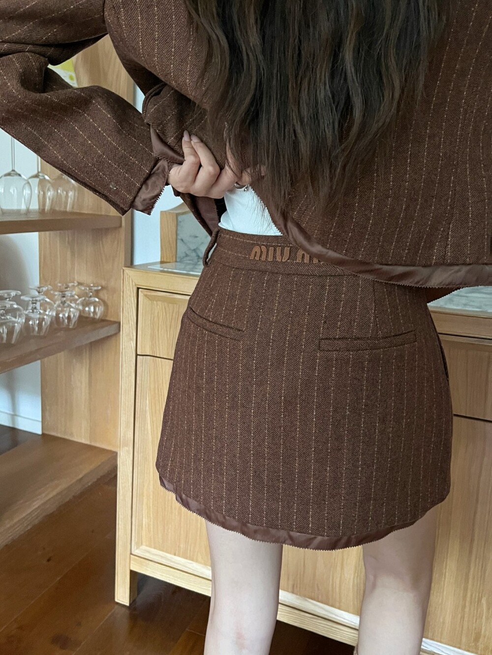 F. 뮤뮤 브라운 스트라이프 셋업