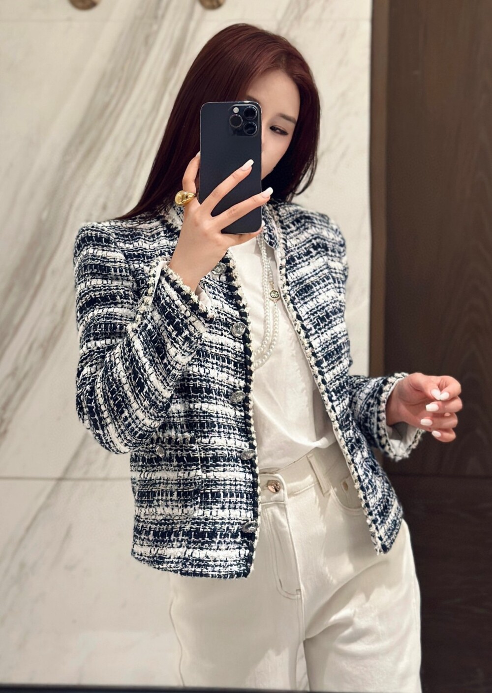 H. CC 트위드 화이트블루 - 자켓