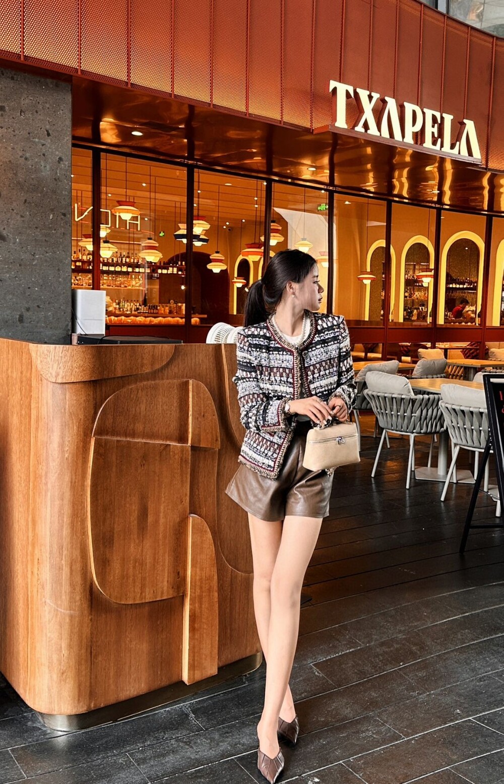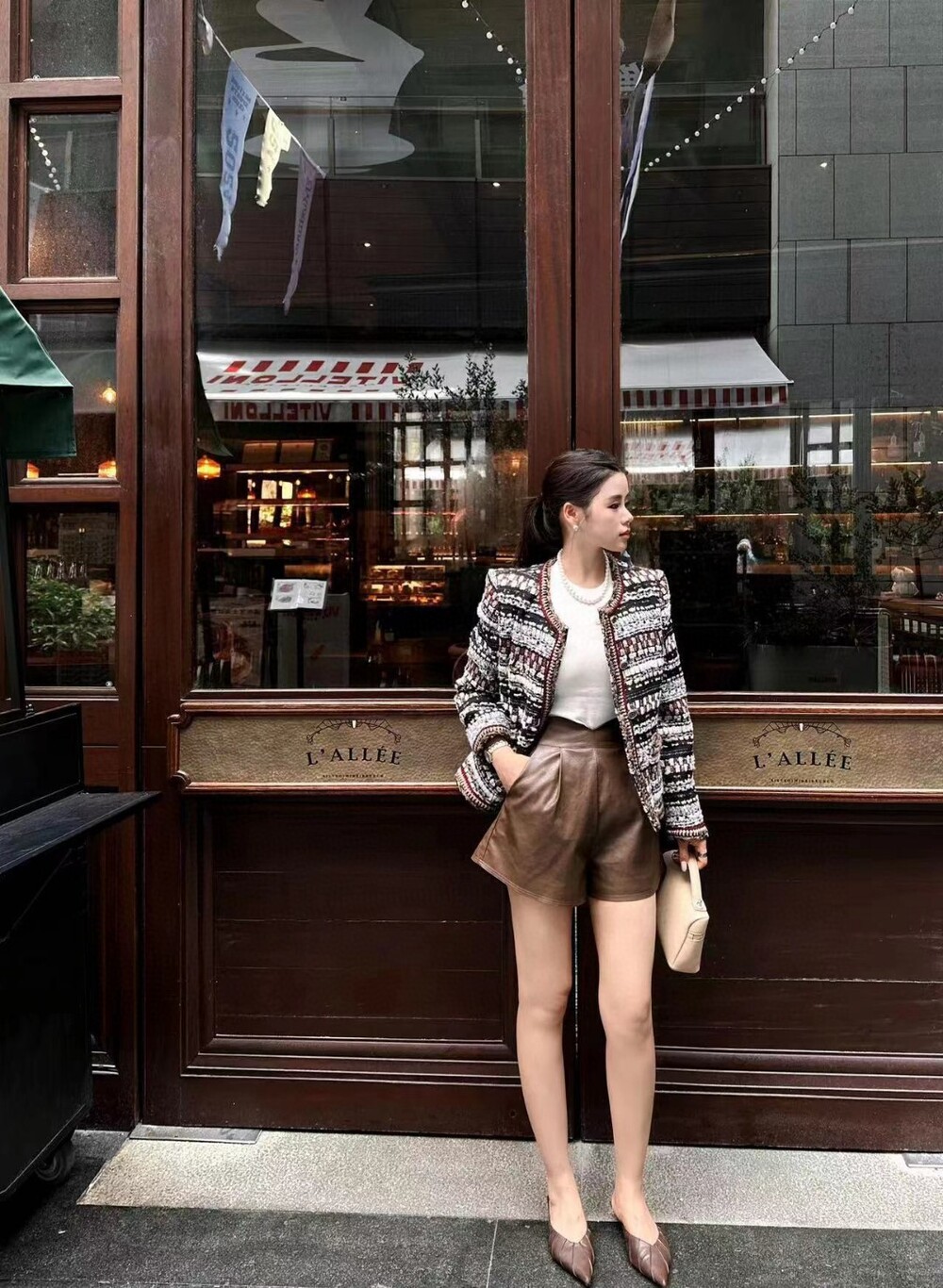 모델분 처럼 브라운 레더숏팬츠에 코디해도 정말 예쁠 거 같아요 ☺