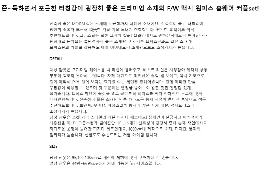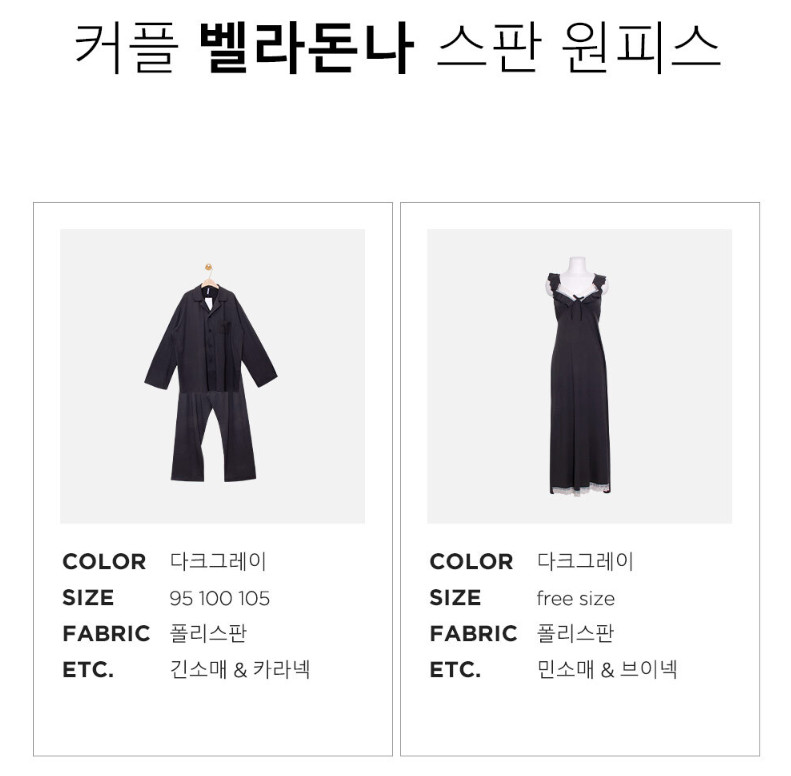 여성 남성 커플 벨라돈나 원피스 투피스 수면 잠옷