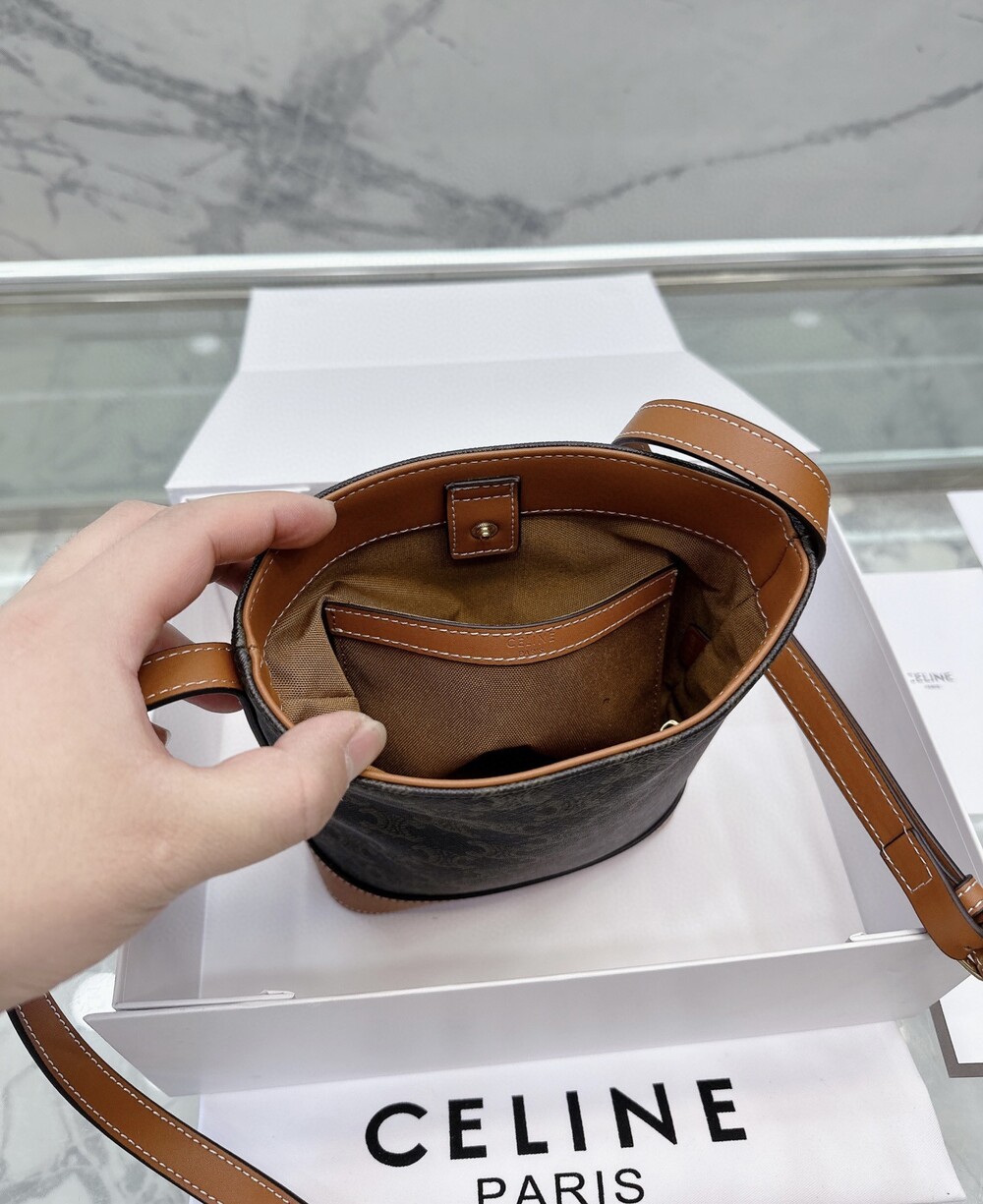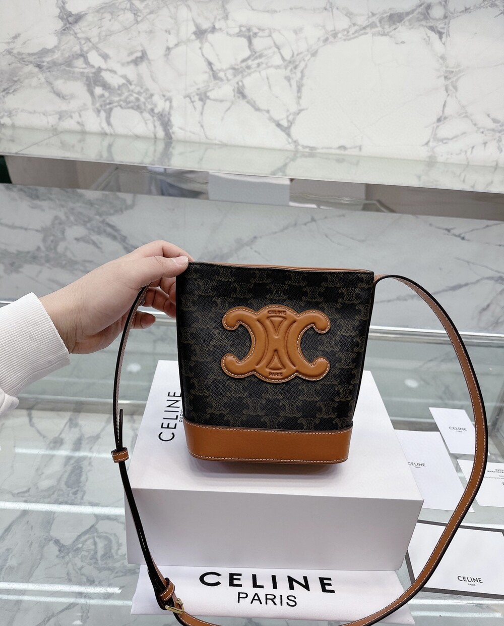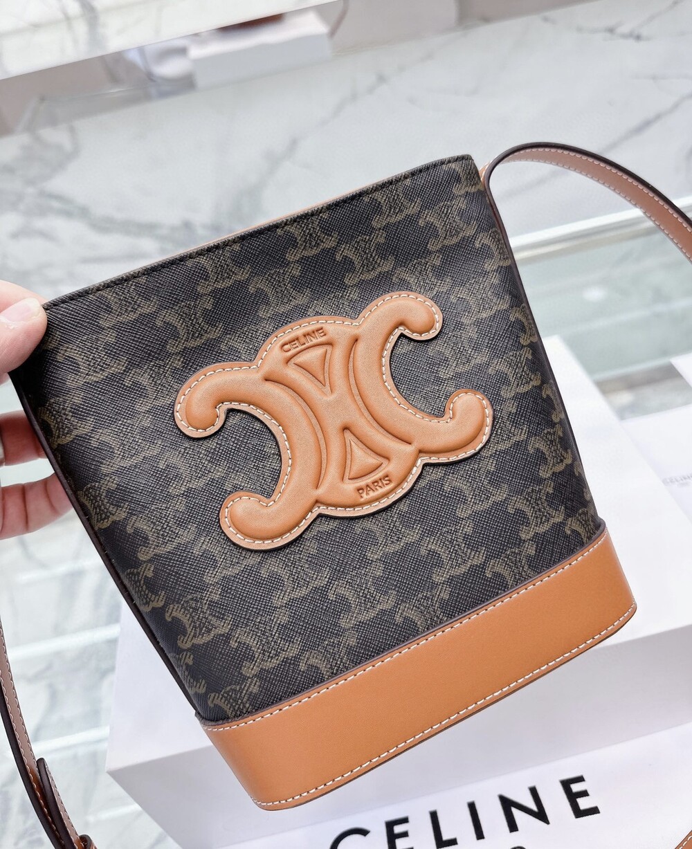 Celine2023's latest bucket bag, a network first - -This is the first bullet in the entire network. Certainly the 202 is fresh out of the oven. This is the only one in the Celine store in Barcelona. So after watching it, quickly "get off". Made of calf leather, it is very light and comfortable to use, and has a large interior space, so it is very suitable for this season. CELINE #celine bucket bag 18 20 folding box packaging 🎁