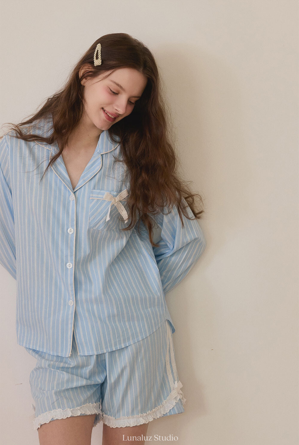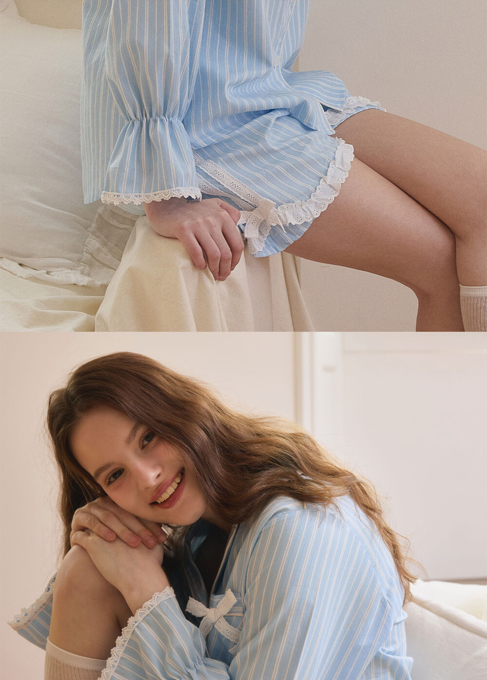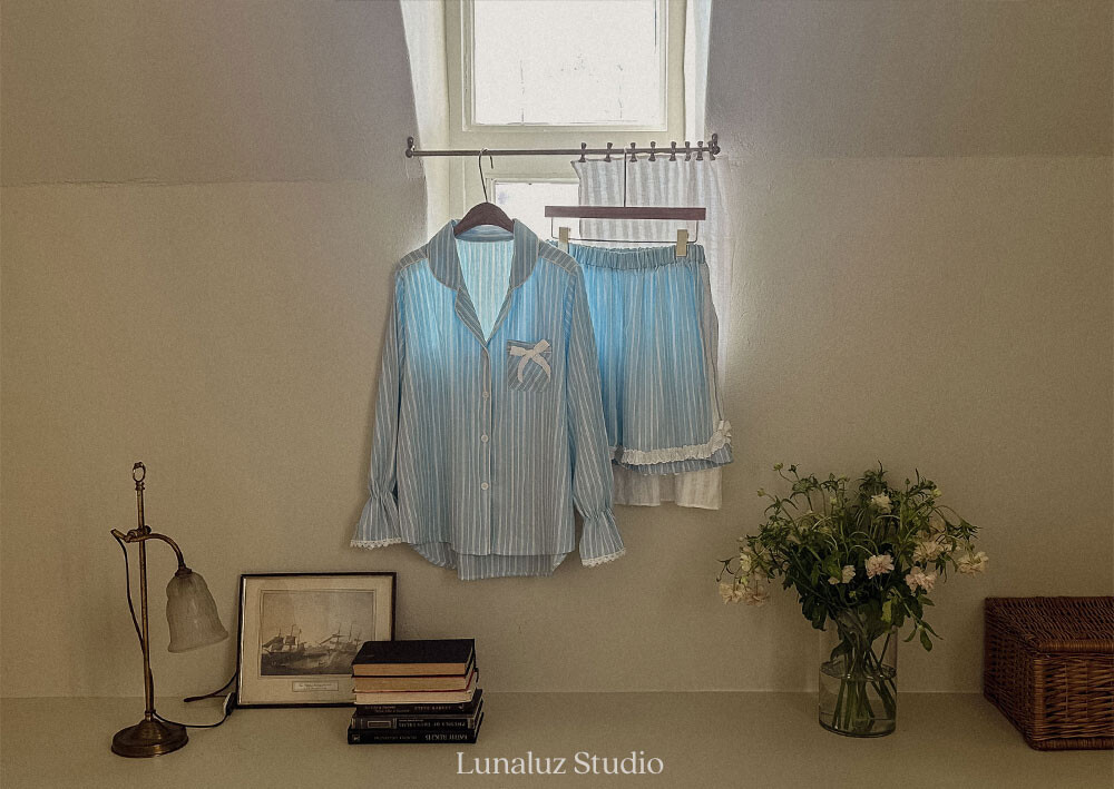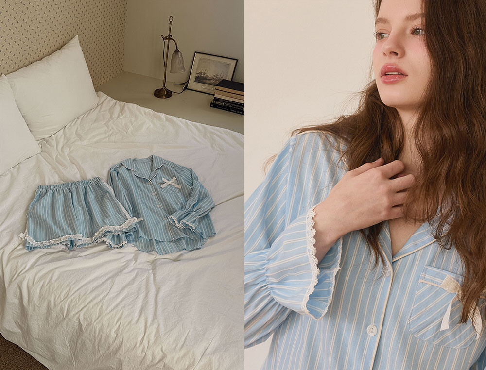 사랑스러우면서 귀여운 무드가 느껴지는 파자마 홈웨어!언발란스 기장으로 여성스러움까지 up!