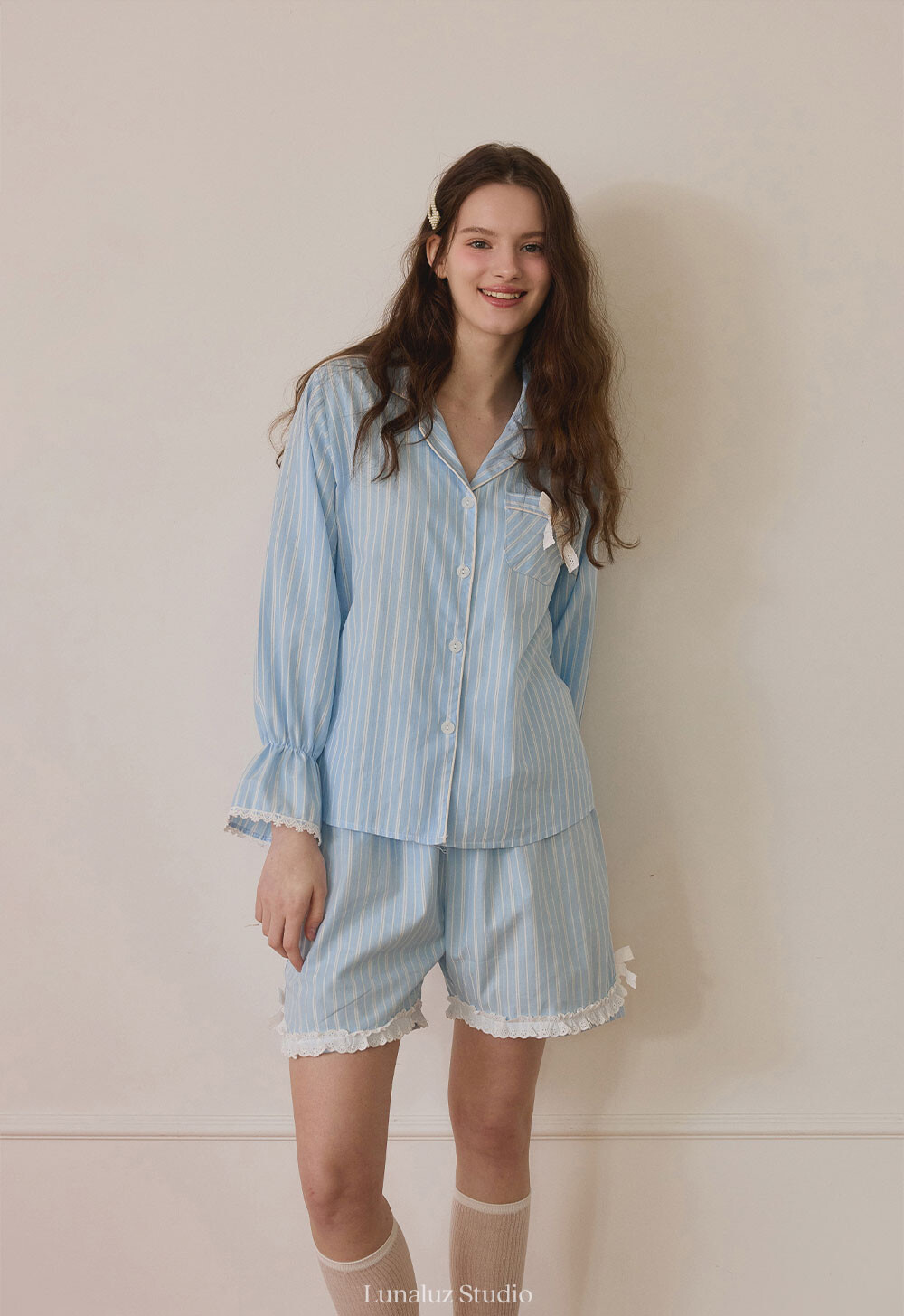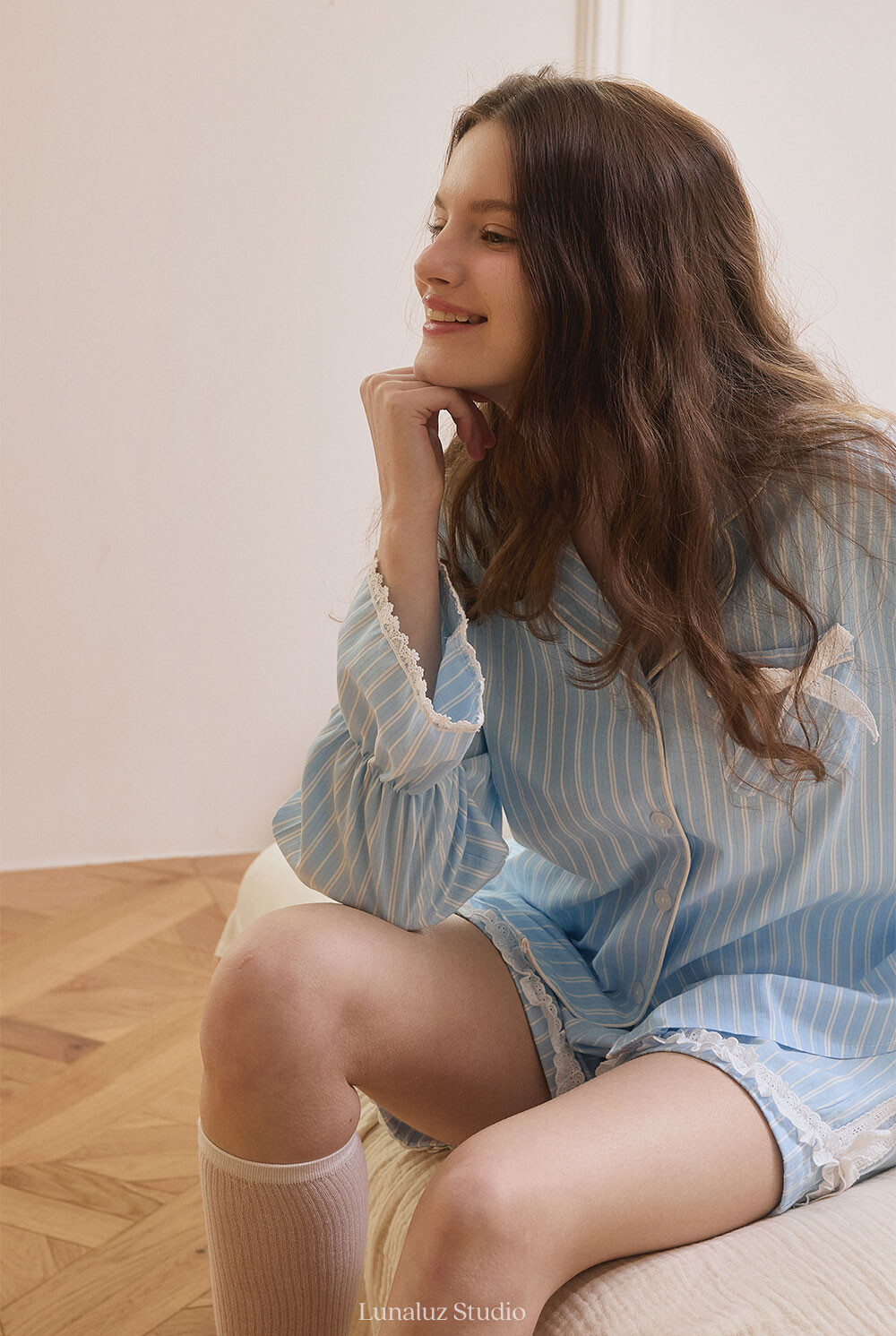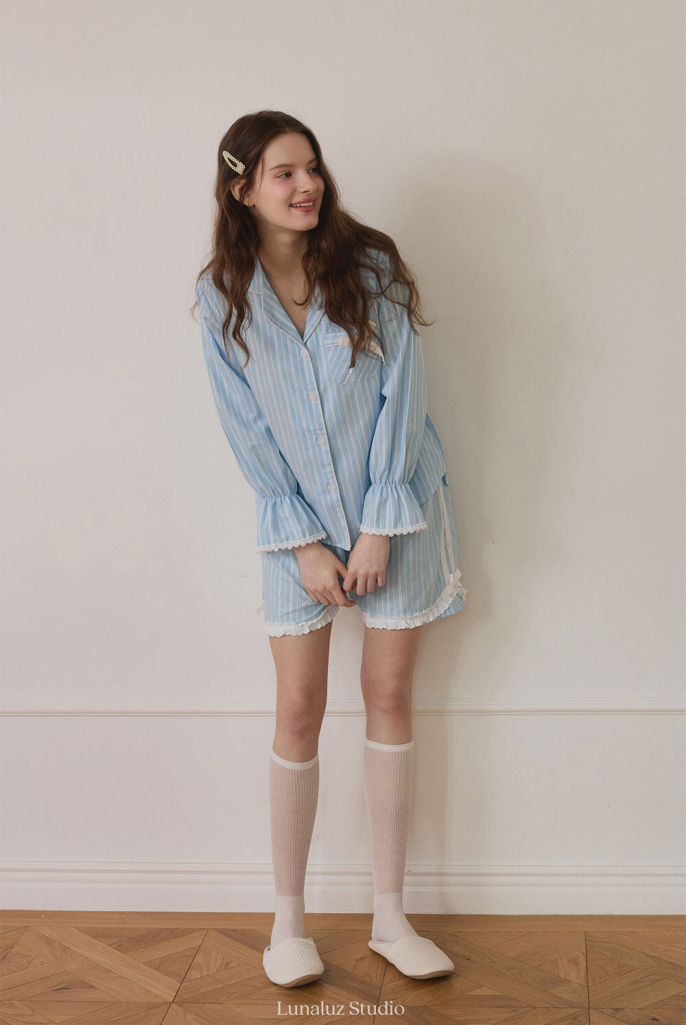 사랑스러우면서 귀여운 무드가 느껴지는 파자마 홈웨어!언발란스 기장으로 여성스러움까지 up!