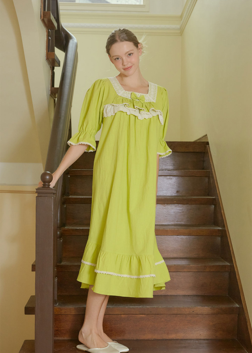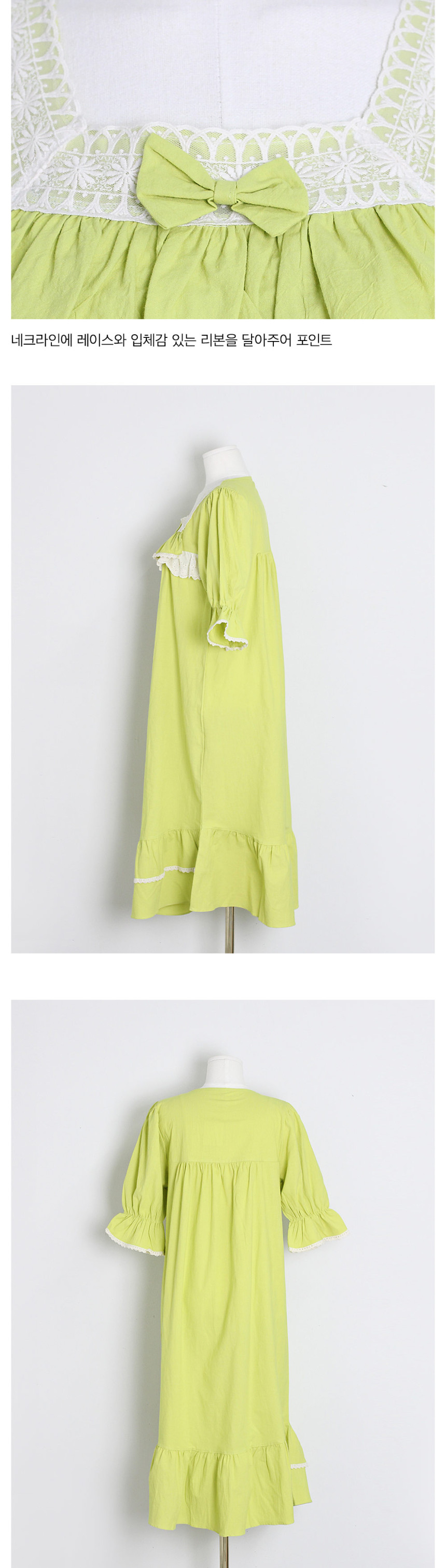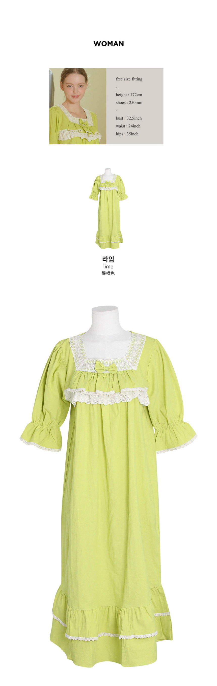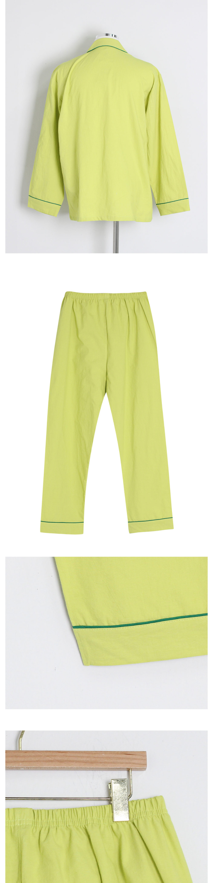 여성 남성 커플 라임코튼 긴소매 원피스 투피스 수면 잠옷