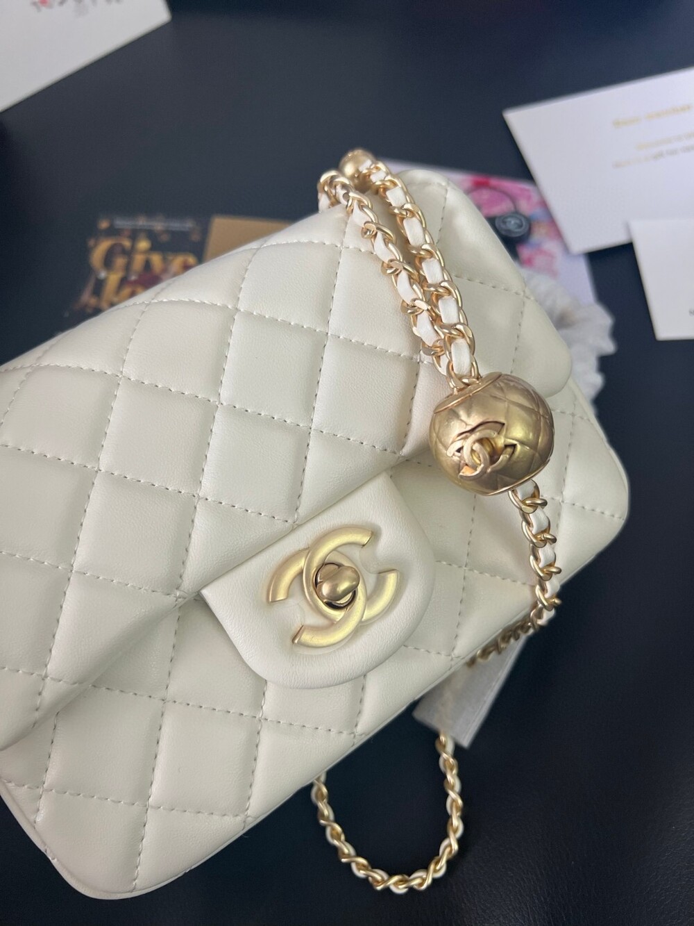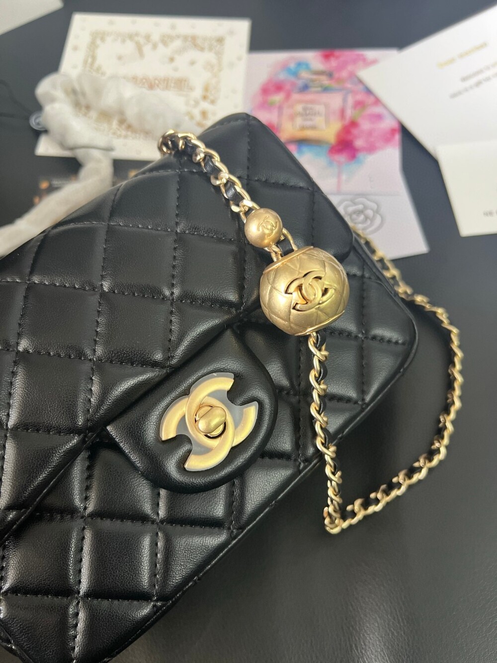 The CHANEL Gold Ball Mini Flap Bag is a must-have for modern-day “Mademoiselles.