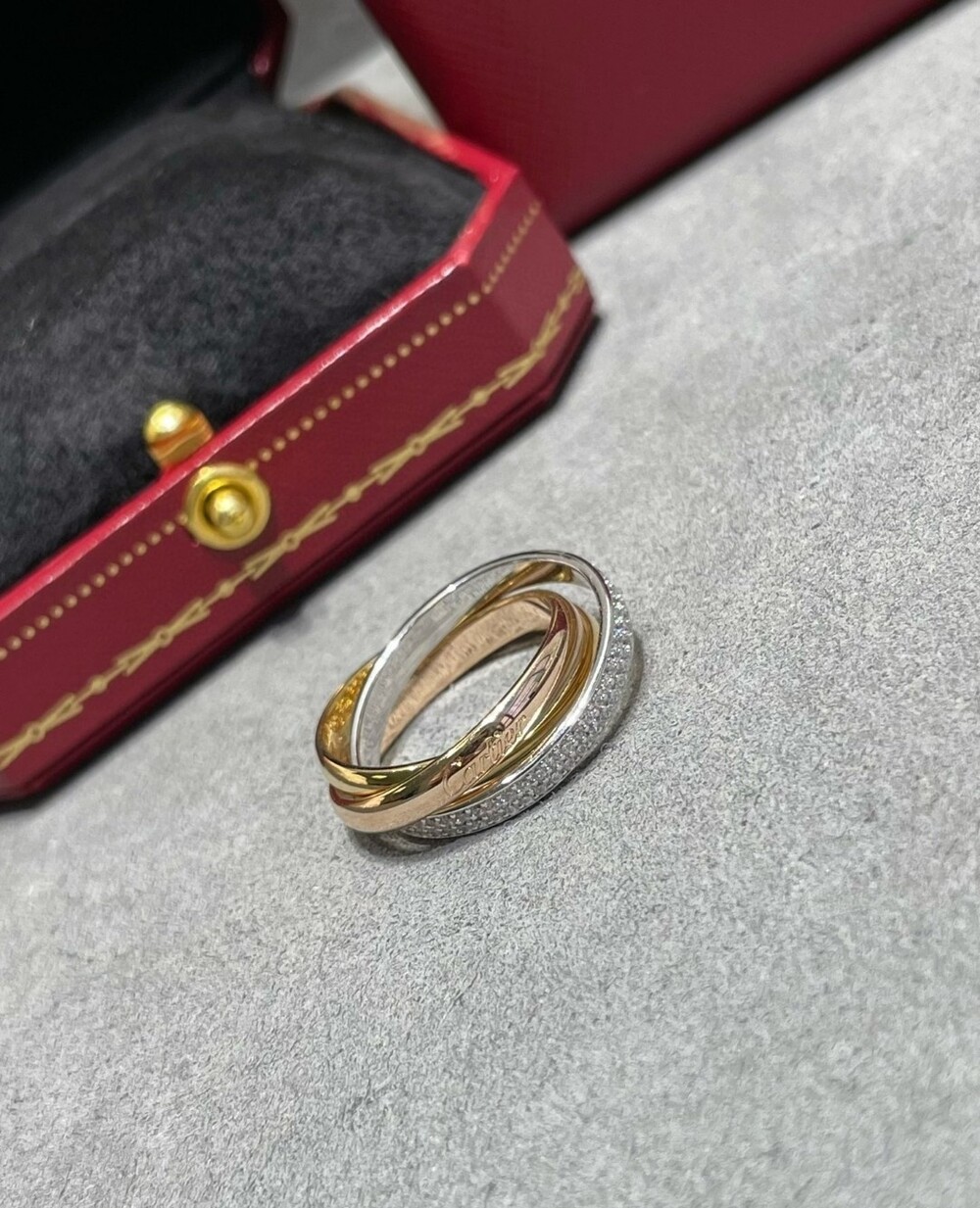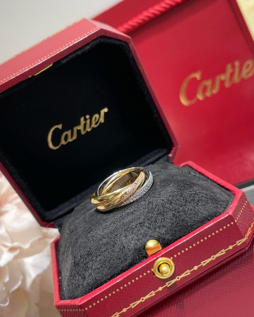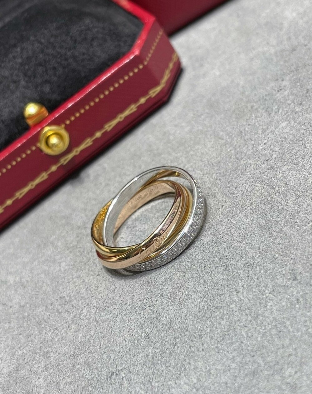 Cartier's three jewel rings ring inlay per person, perfect symmetry aesthetics, complete elegant feeling. Finger-shaped arm, feel good to wear, do not leave the hand, and do not easily get stuck on things molding, polishing, etc! Cartier's three-wheel diamond ring one hand is set with a ring that perfectly expresses the aesthetics of symmetry and elegance. Finger-shaped arm, feel good to wear, do not leave the hand, and do not easily get stuck on things! , molding, polishing, etc