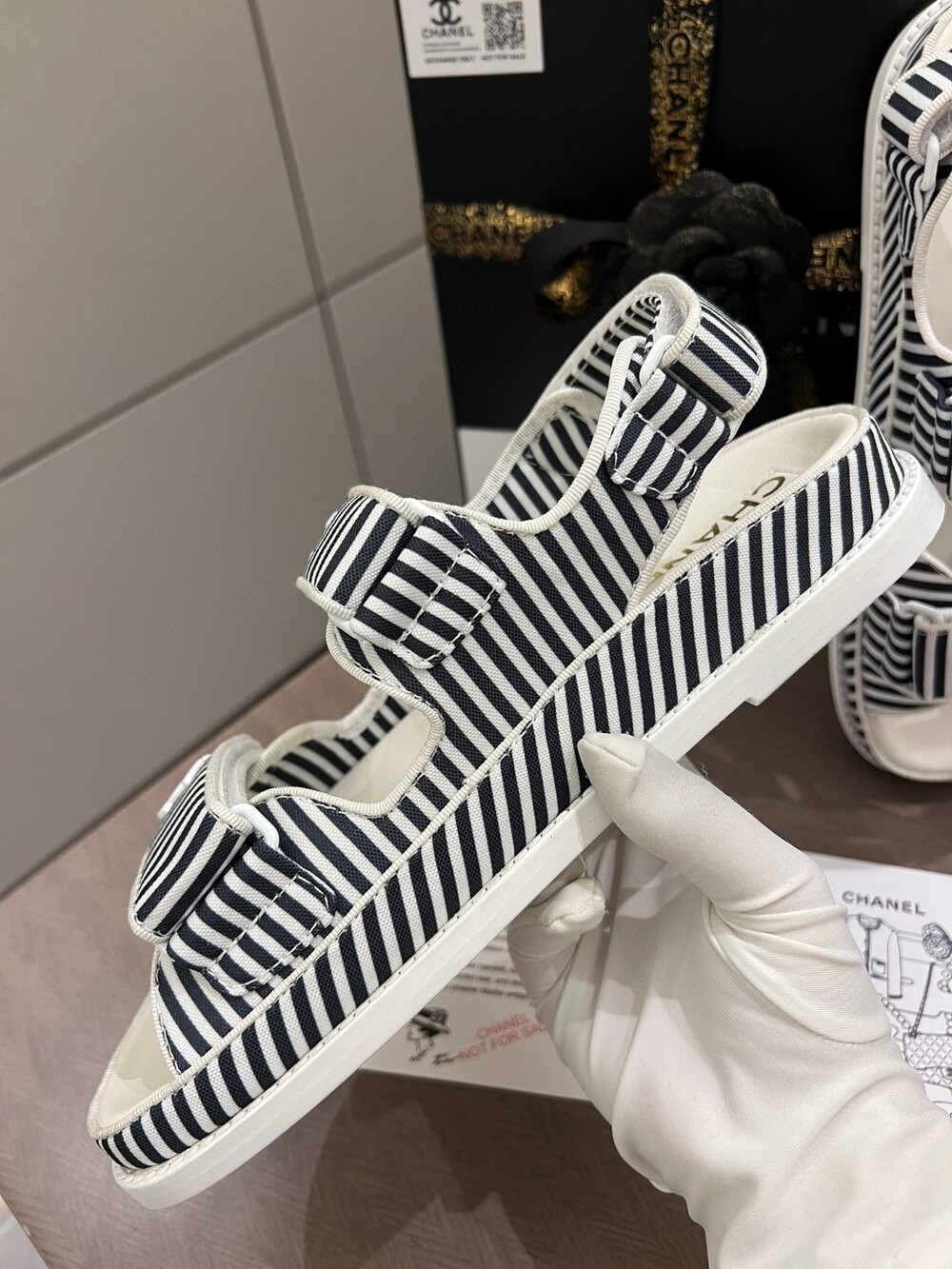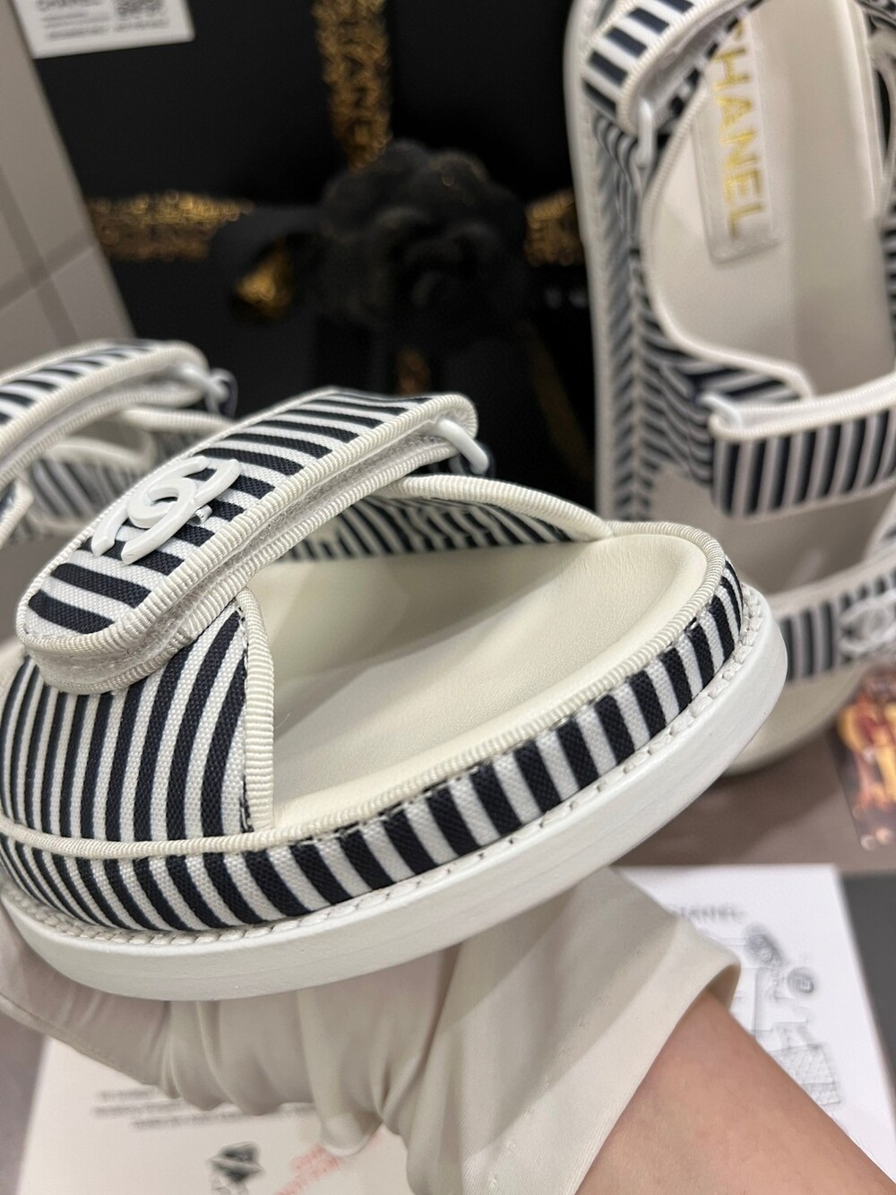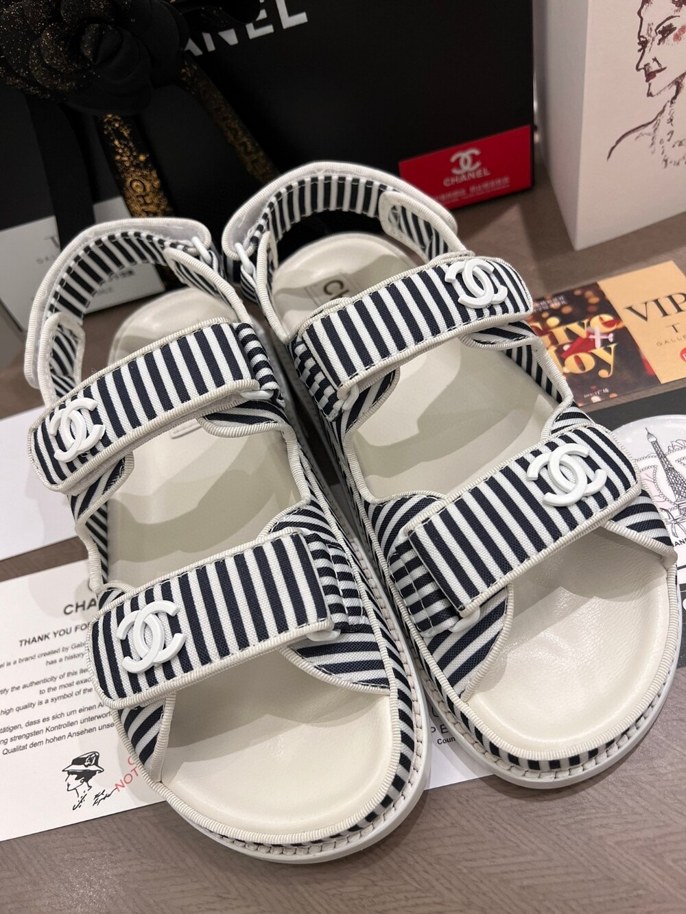 Chanel New Beach Sandals Exclusive Uniform Top-level version Simple all-around artifact Original bar material Original logo buckle Imported sheepskin lining footrest Italian leather background