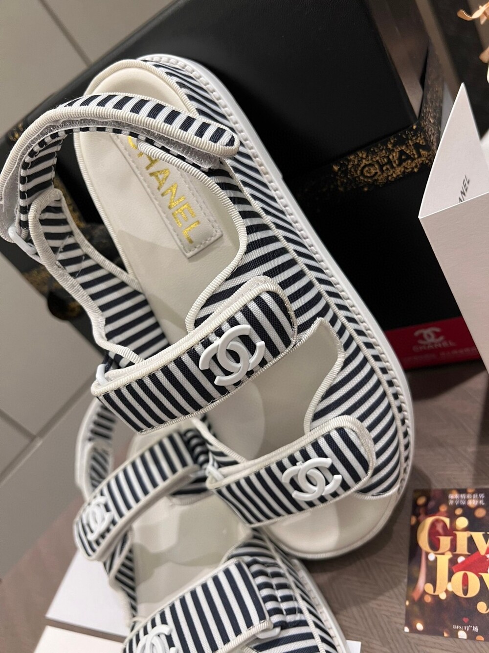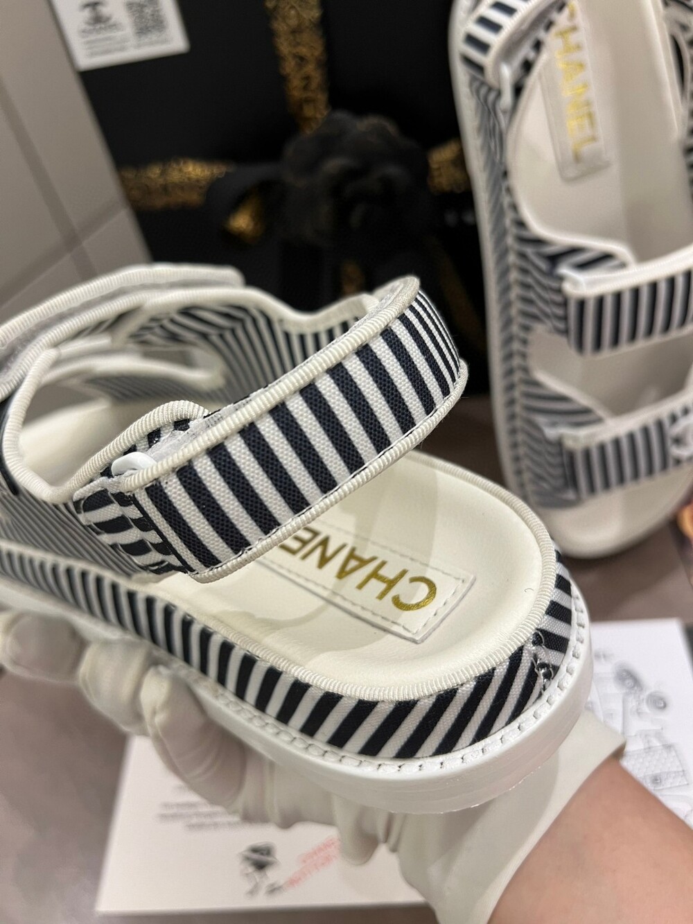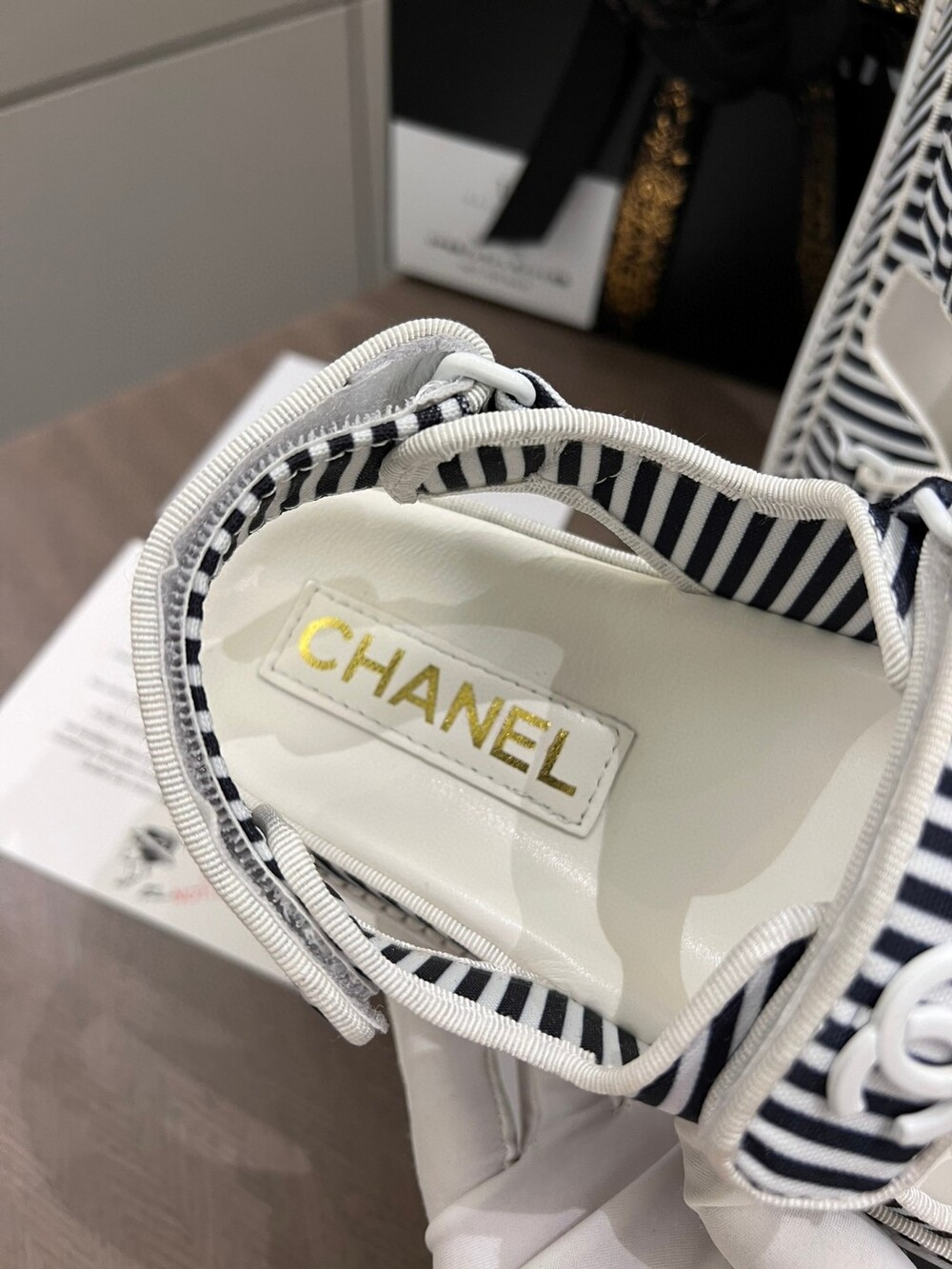 Chanel New Beach Sandals Exclusive Uniform Top-level version Simple all-around artifact Original bar material Original logo buckle Imported sheepskin lining footrest Italian leather background