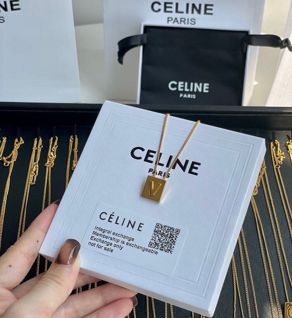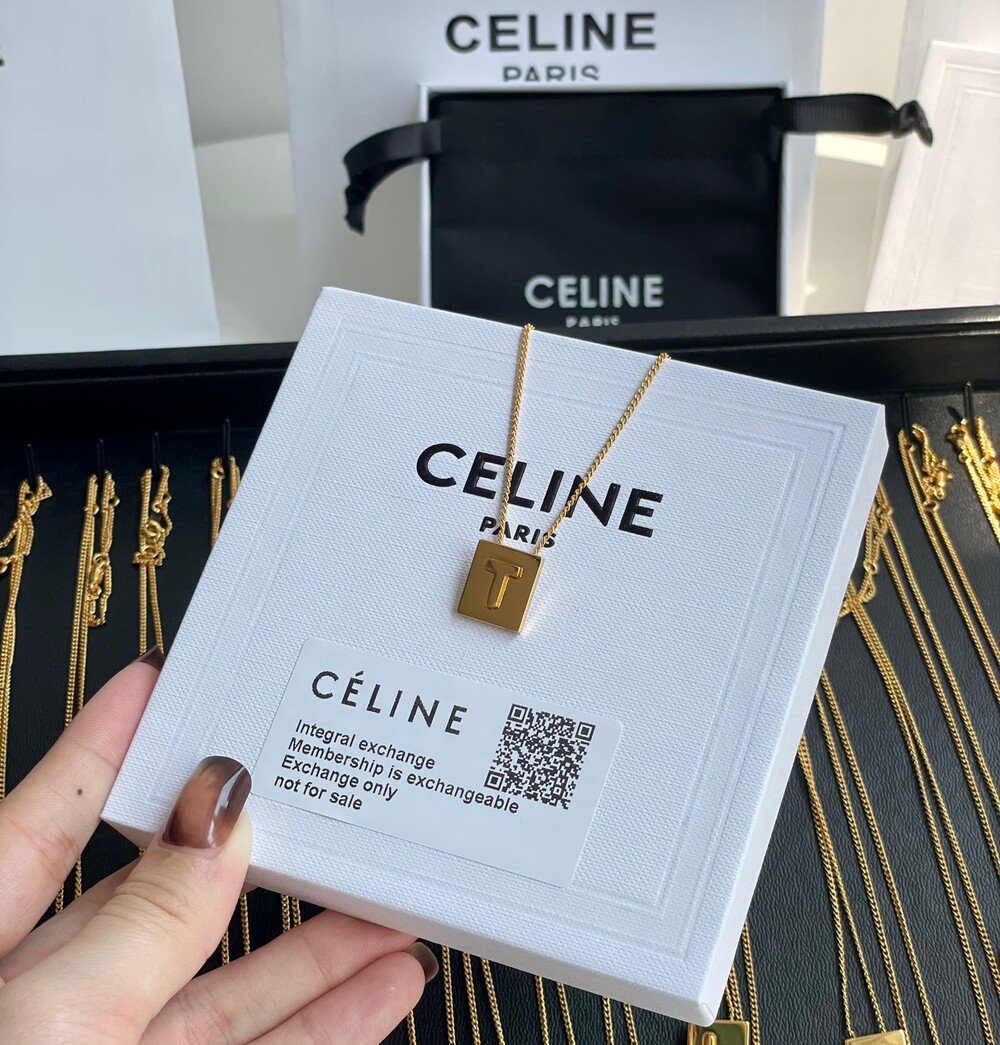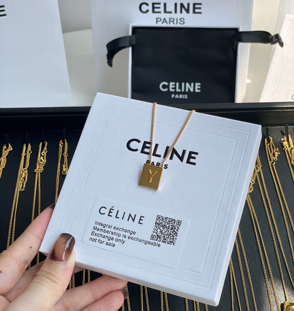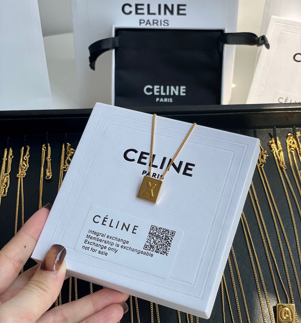 [Points Redeem Membership Gift] Hong Kong Direct Mail CELINE·Sailin Letter Necklace Genuine Synchronous Material 26 Letters Spot# Counter gifts