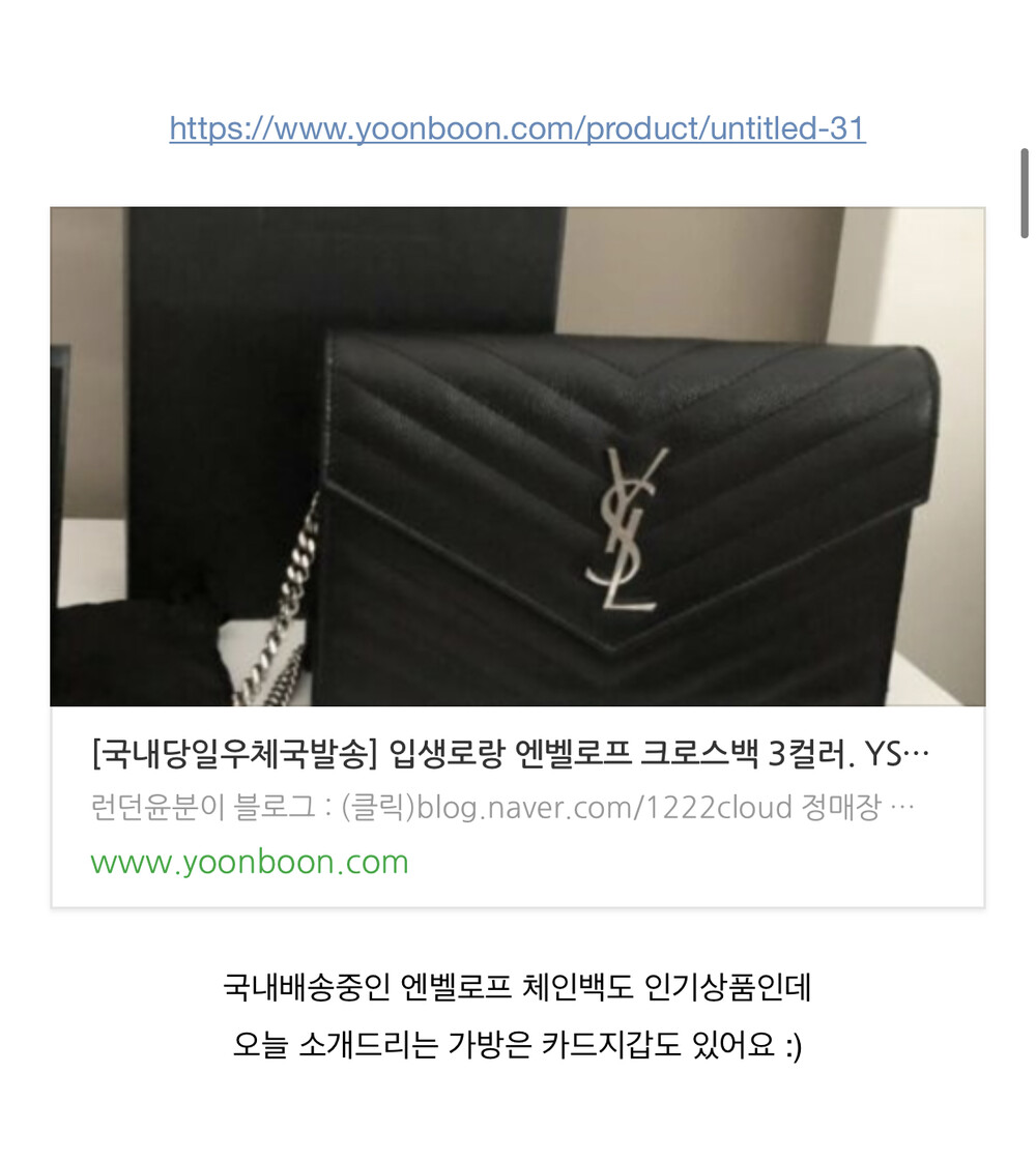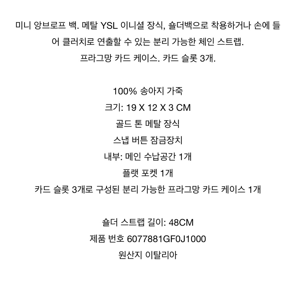 [정매장바잉] 입생로랑 업타운 체인 크로스백 6077881GF0J1000 그랑 드 뿌드르 지갑