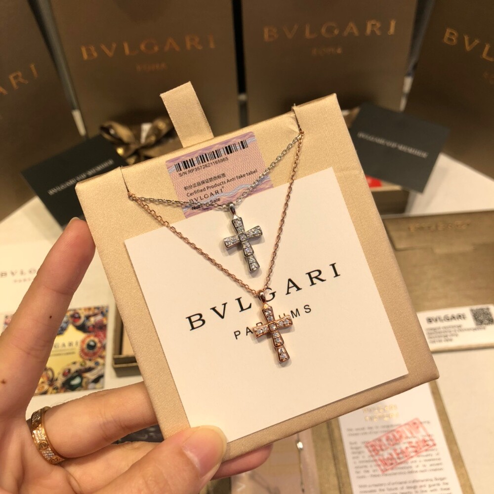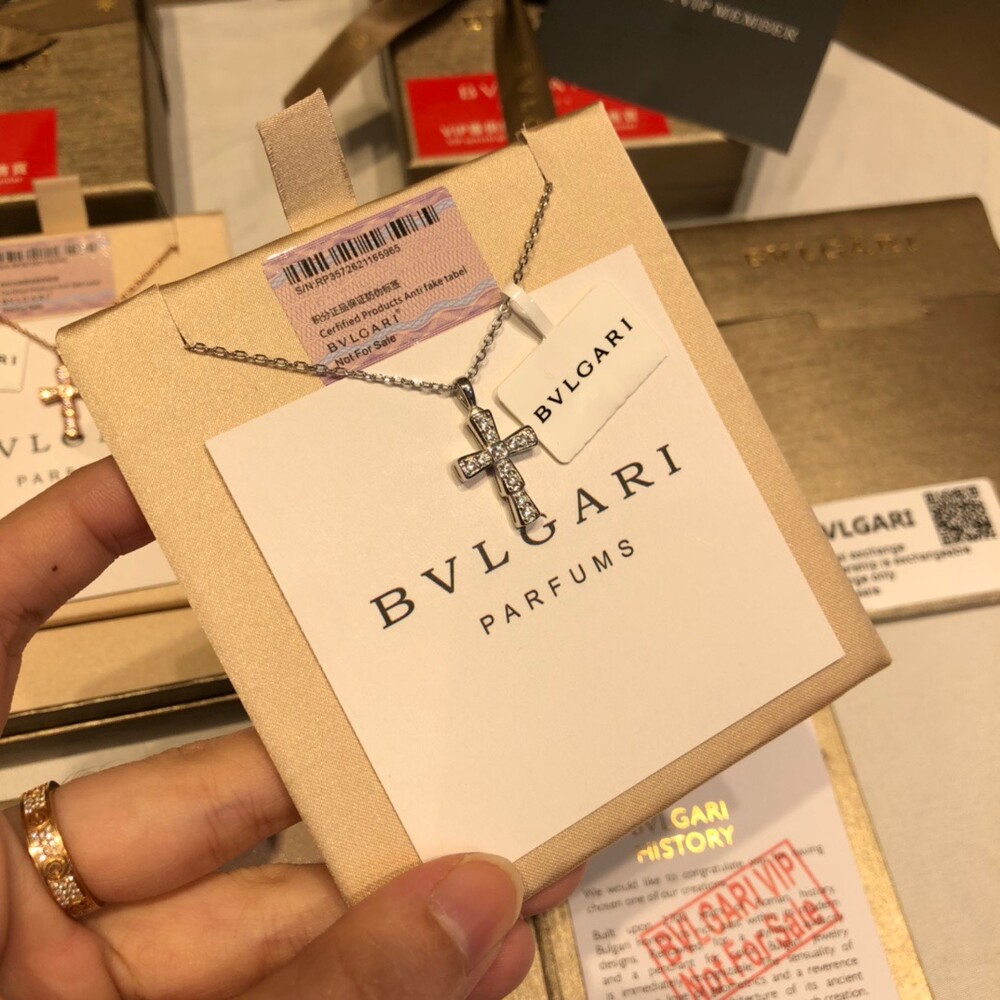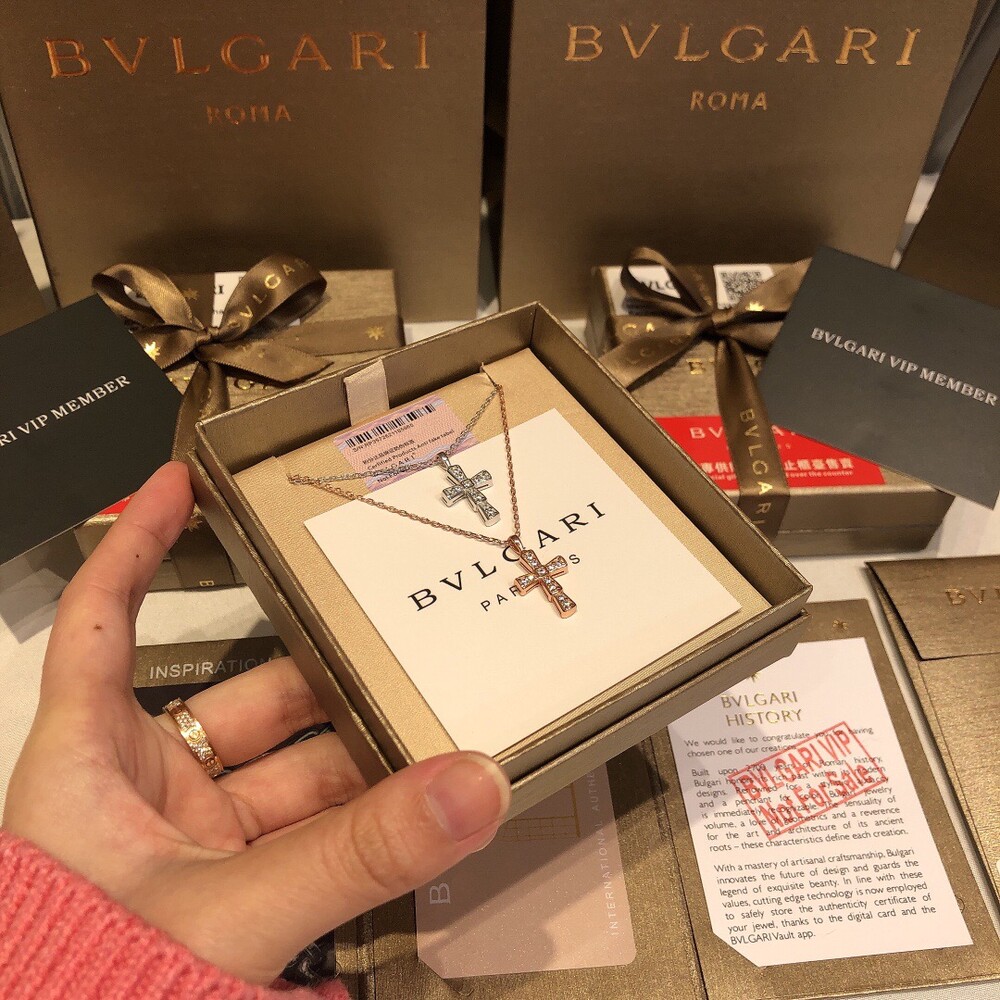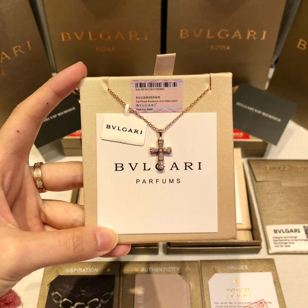 BVLGARI Points Redeem Member Gift Bag [Hong Kong Direct Mail] Bulgari Cross Necklace 18k Real Gold Plated au750 Color Preservation! Platinum Rose Gold# Spot with security code and bronzing ID card gift box packaging complete set