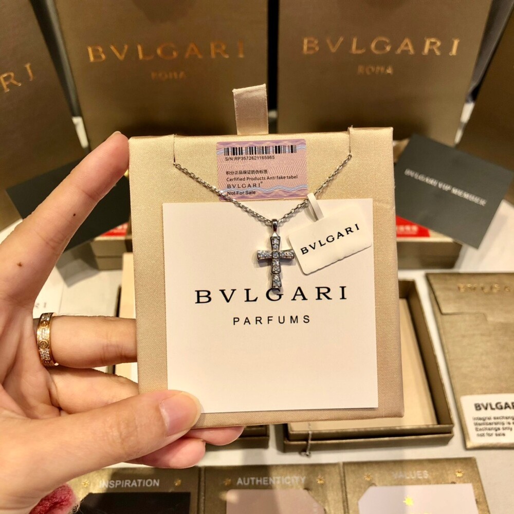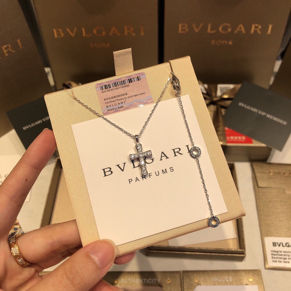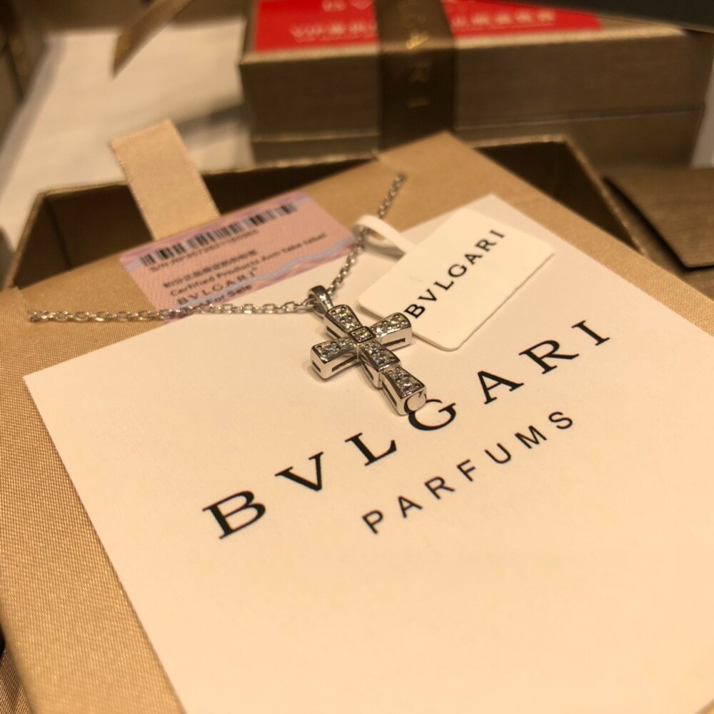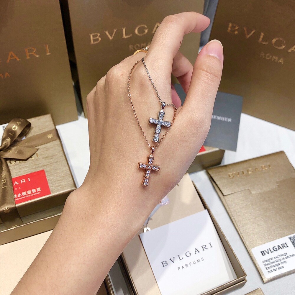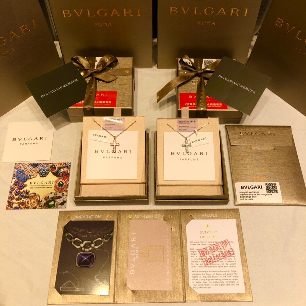 BVLGARI Points Redeem Member Gift Bag [Hong Kong Direct Mail] Bulgari Cross Necklace 18k Real Gold Plated au750 Color Preservation! Platinum Rose Gold# Spot with security code and bronzing ID card gift box packaging complete set