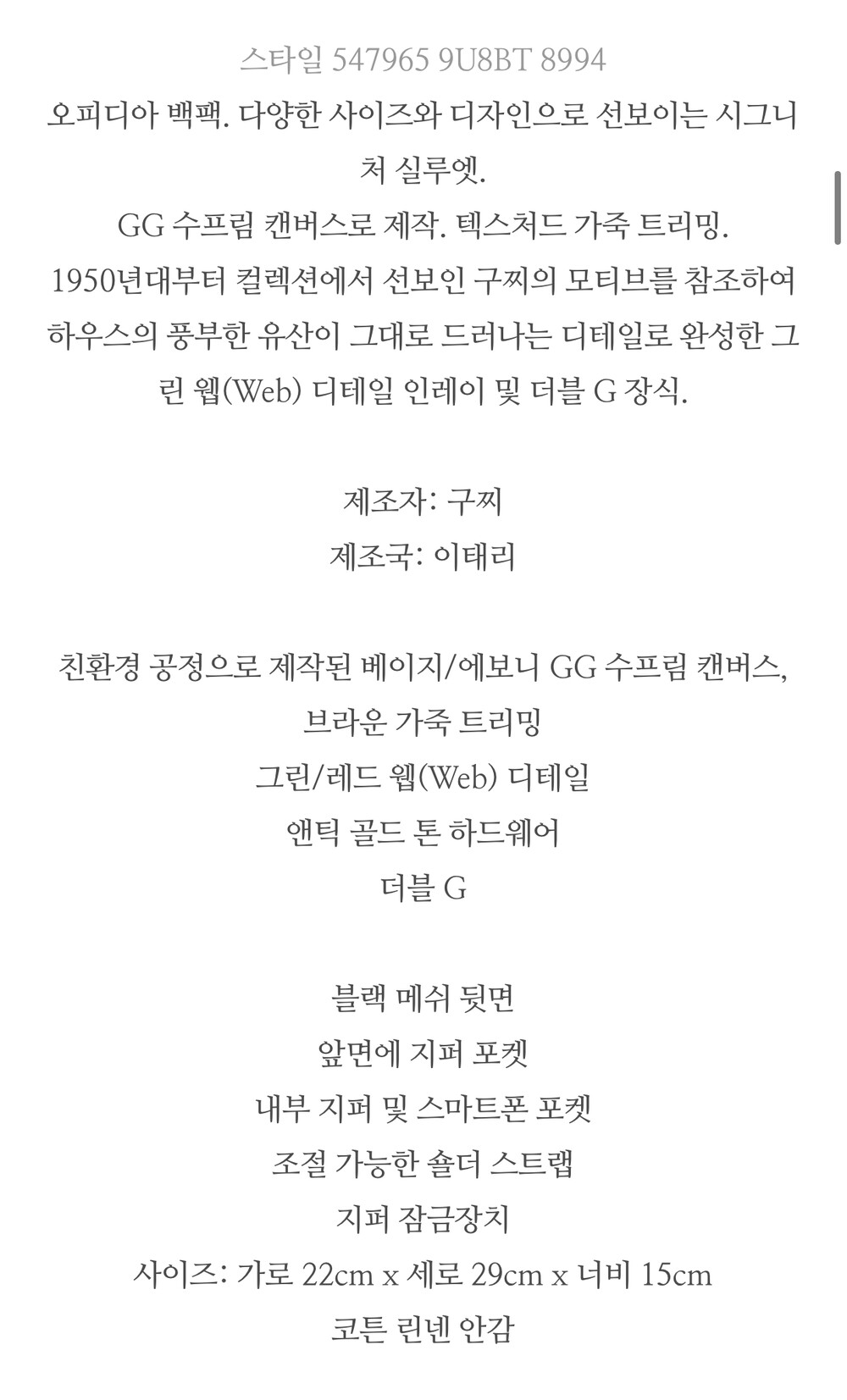 [정매장바잉] 구찌 오피디아 백팩 5479659U8BT8994 GG