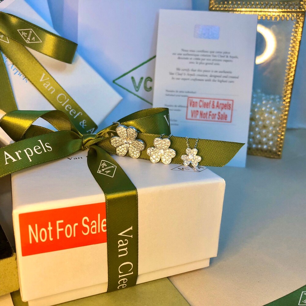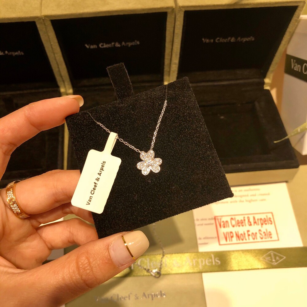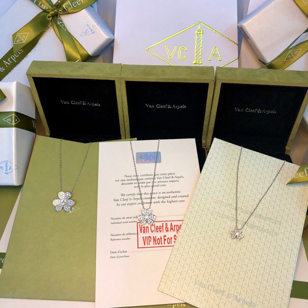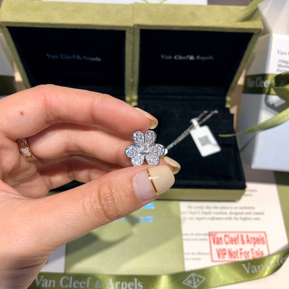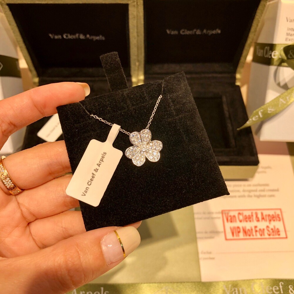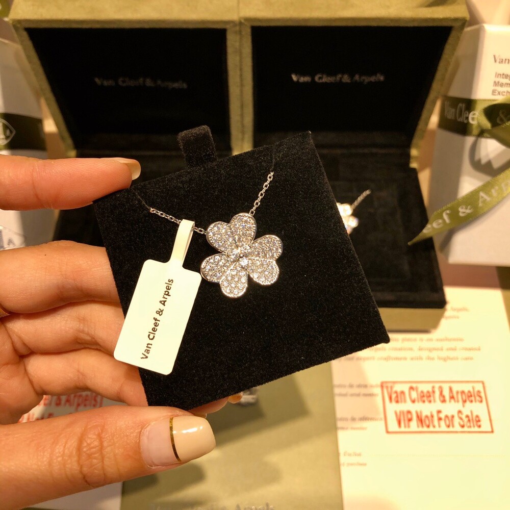 VCA frivole series clover full diamond necklaceHearts & Arrows Diamond White Gold Rose Gold Gold Tricolor A full set of anti-counterfeiting stickers and hot stamping identity card gift boxes!