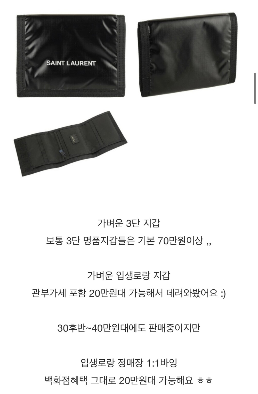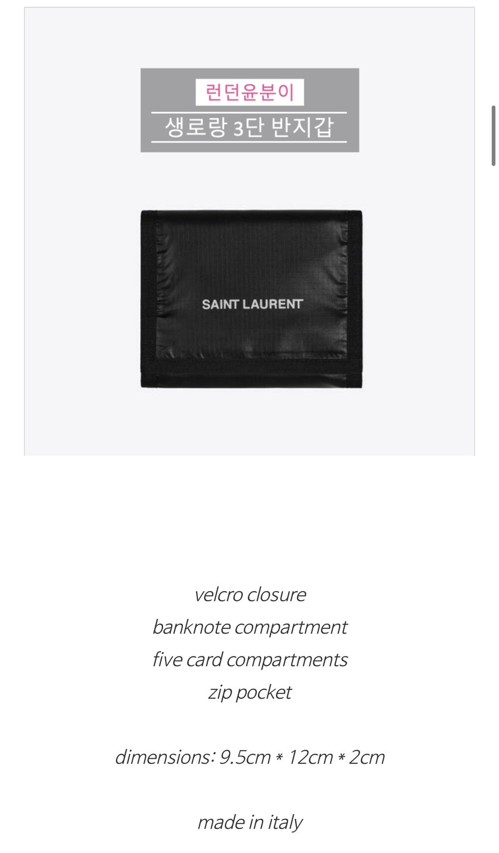 [영국정매장] 20만원대 생로랑 3단 반지갑 588189HO23Z1054 입생로랑 남성 중지갑