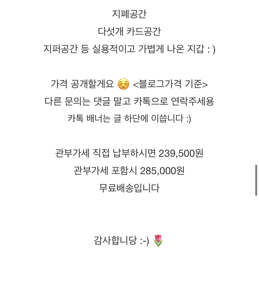 블로그(무통장)관부가세 직접납부 (품절)