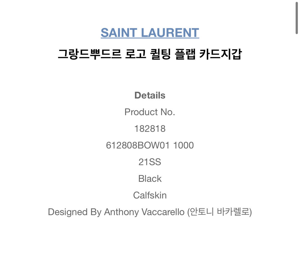 [영국정매장] 21ss 입생로랑 모노그램 플랩 카드지갑 612808BOW01 반지갑