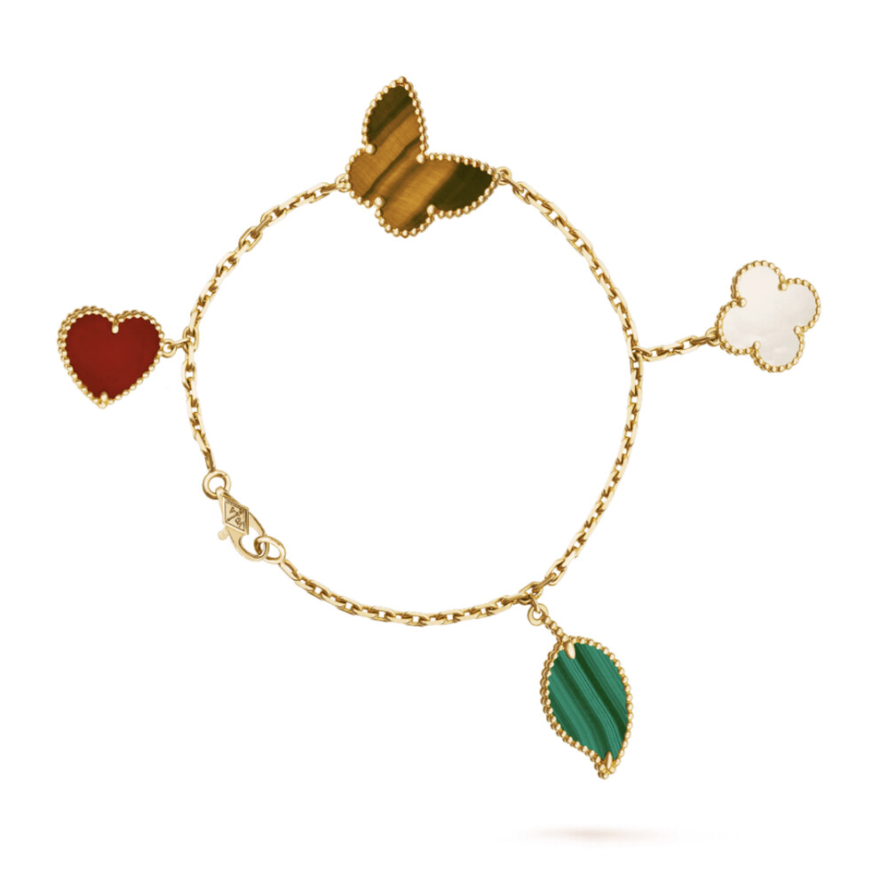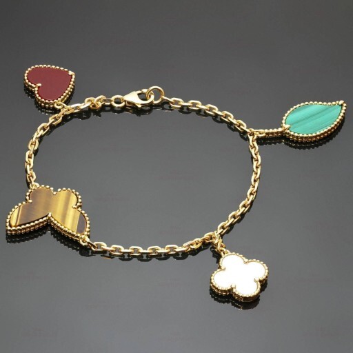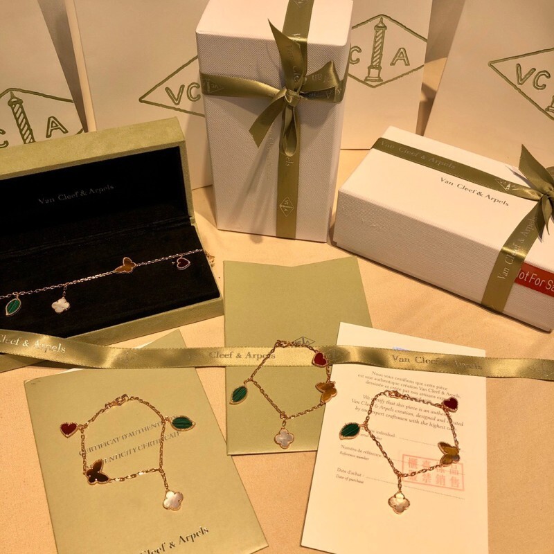 【VCA Overseas VIP Member Privilege】🍀 Overseas VIP Member Gift VCA Squandering Lucky Bracelet Selection of natural white fritillary, carnelian, yellow tiger's eye, malachiteEach pattern has a special meaningA super perfect four-flower braceletEvery girl’s dreamColor: gold color/natural shell agate stoneFull set of gift box packaging