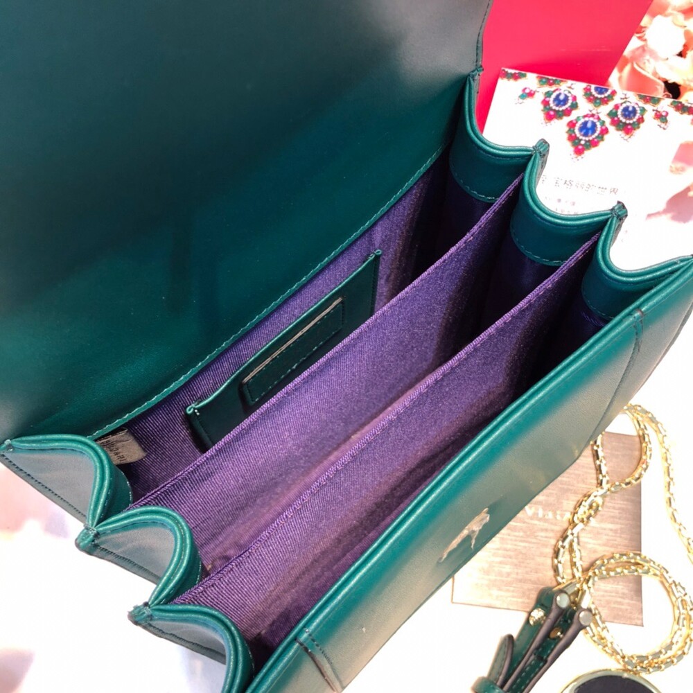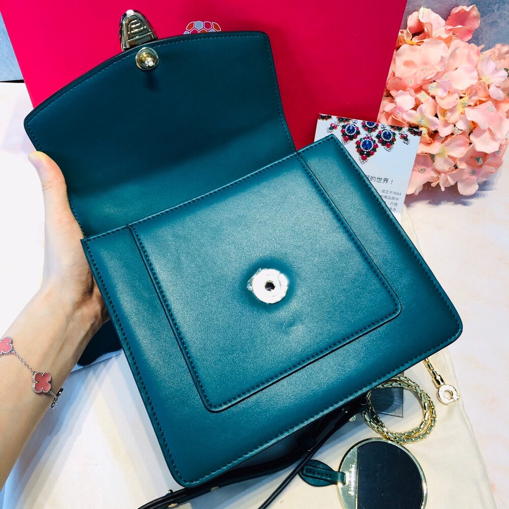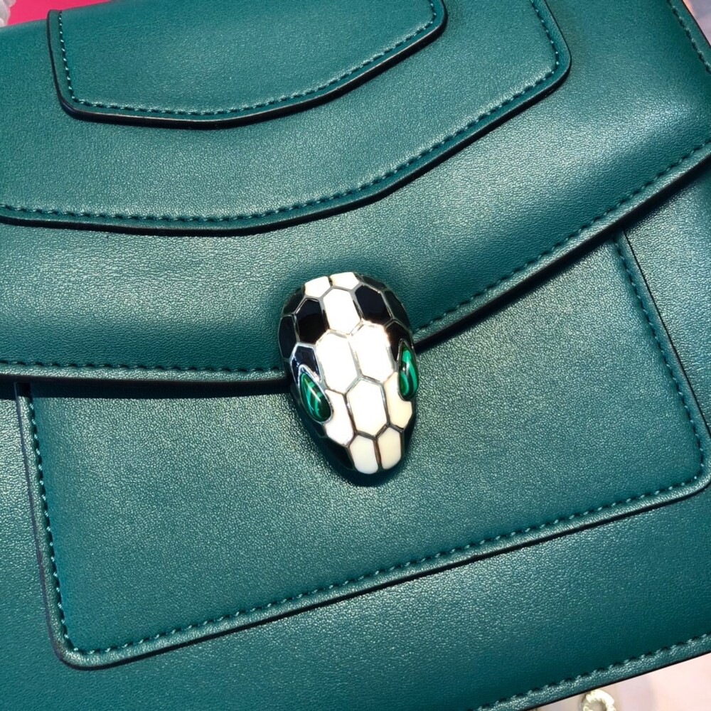 【Points Exchange】 Old style! Bulgari Christmas Gift Dark Green Snakehead Organ Chain Bag,