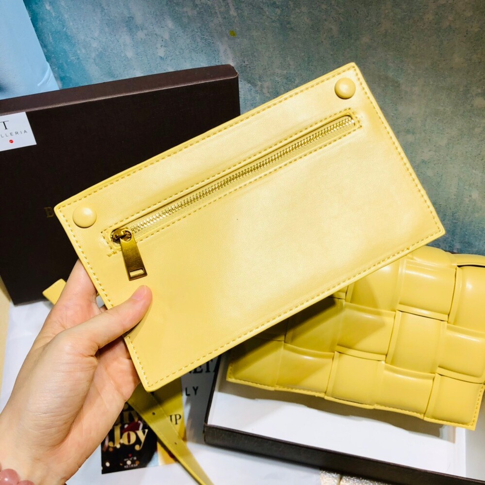 [Bottega veneta dfs galleria] Bv woven pillow bag, leather 100% nappa leather, yellow, size: 22x15