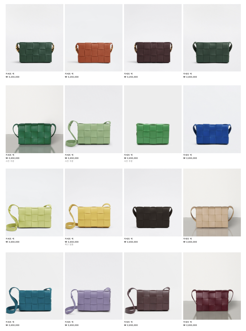 카세트백은 오히려 쨍한 컬러가 대표컬러, 인기컬러에요