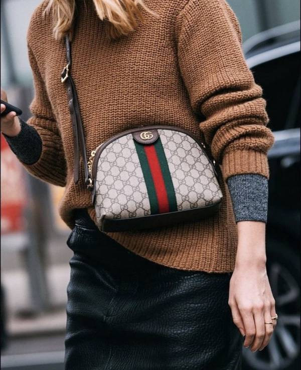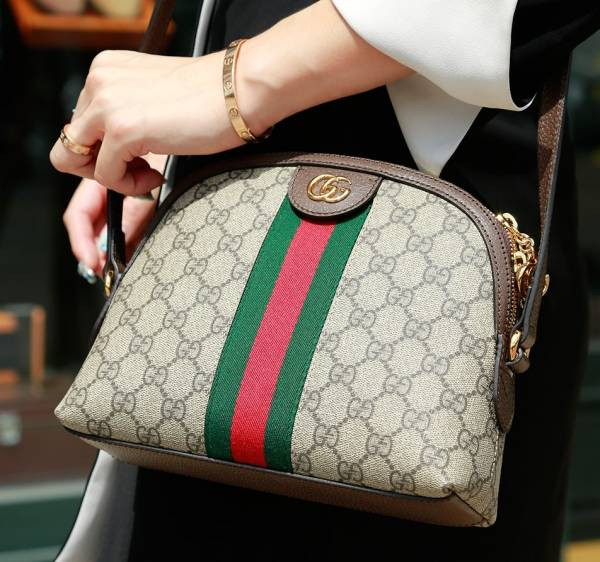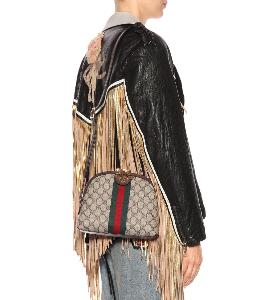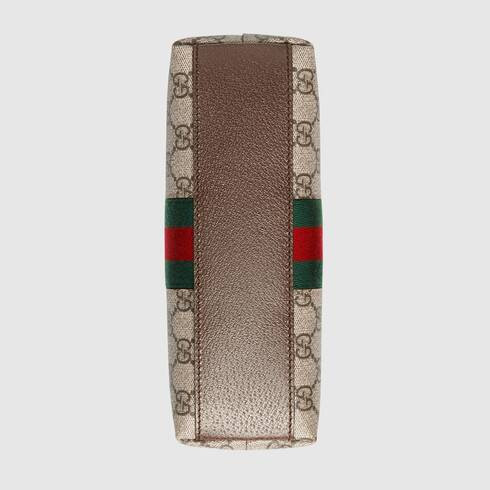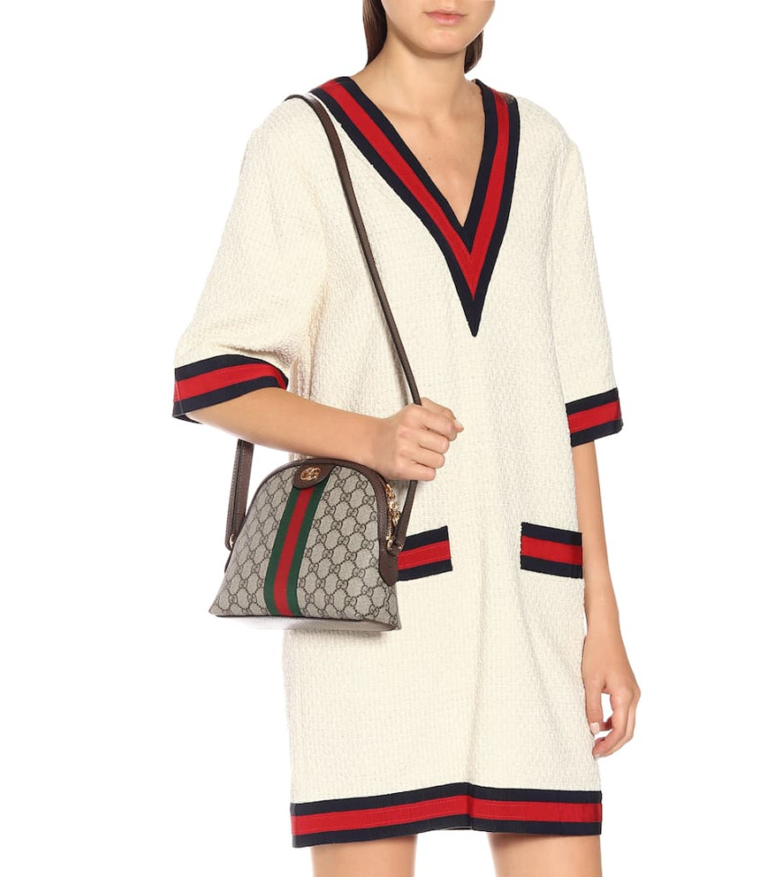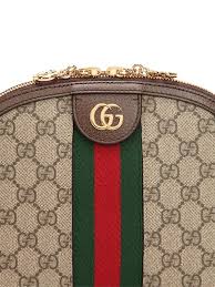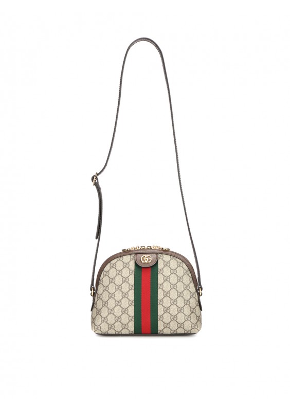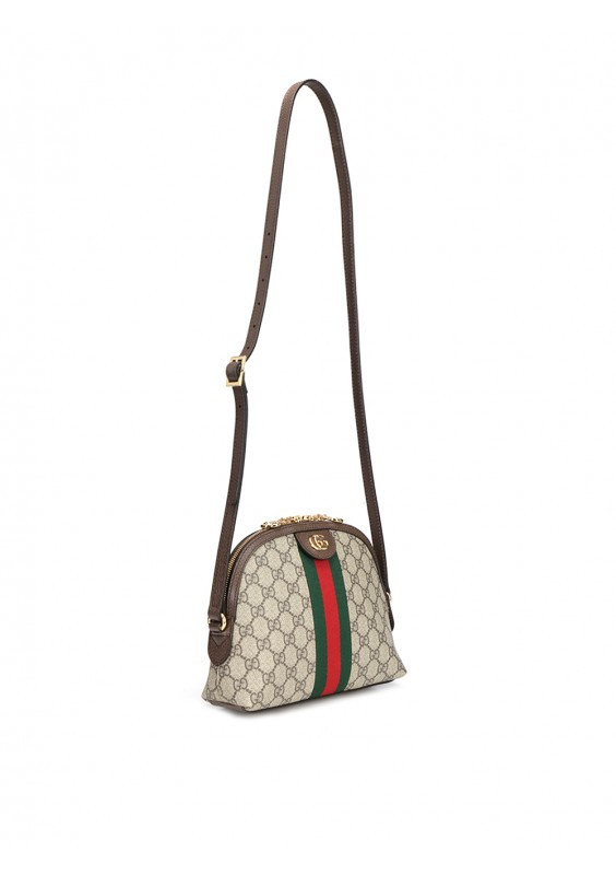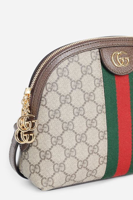 빈티지 스타일을 연상시키는 돔 모양 숄더 백. Web 스트라이프 디테일 인레이의 GG 수프림 캔버스로 제작. 가죽 탭 디테일 상단과 지퍼 풀을 장식한 아카이브에서 차용한 더블 G.