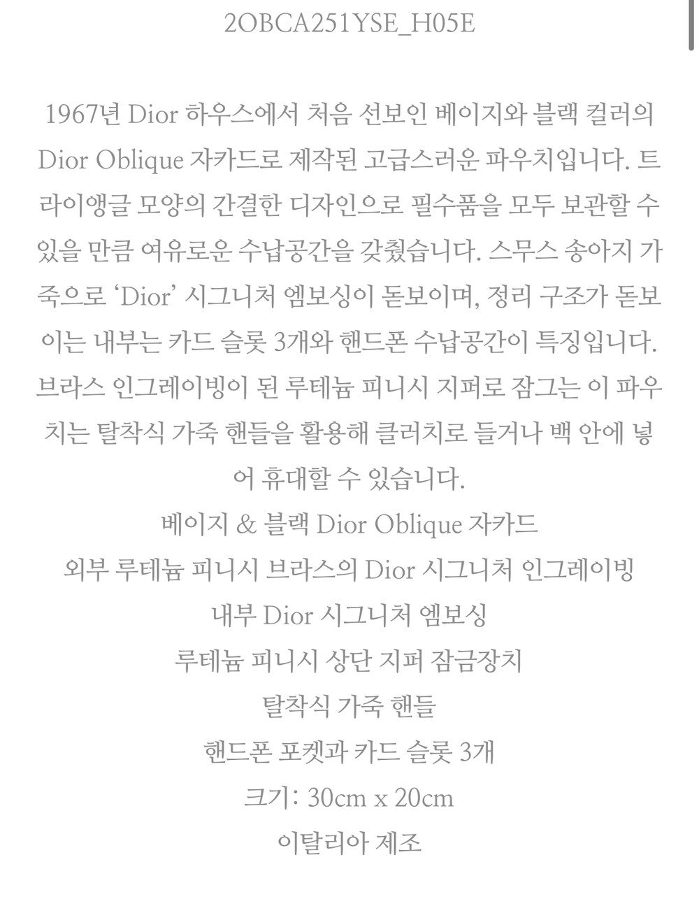 [정매장바잉] 디올 오블리크 클러치 2OBCA251YSE_H05E 남녀공용 자카드 파우치